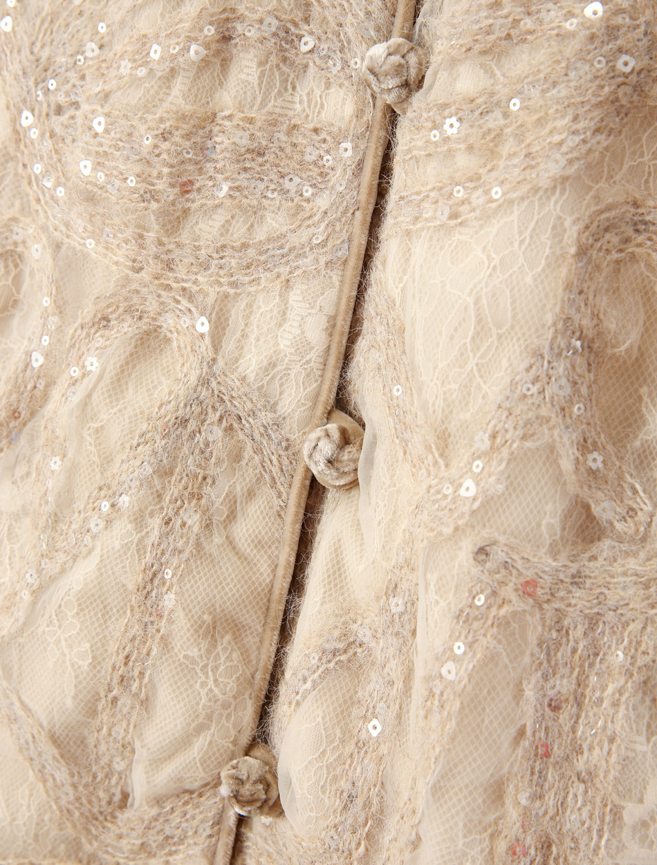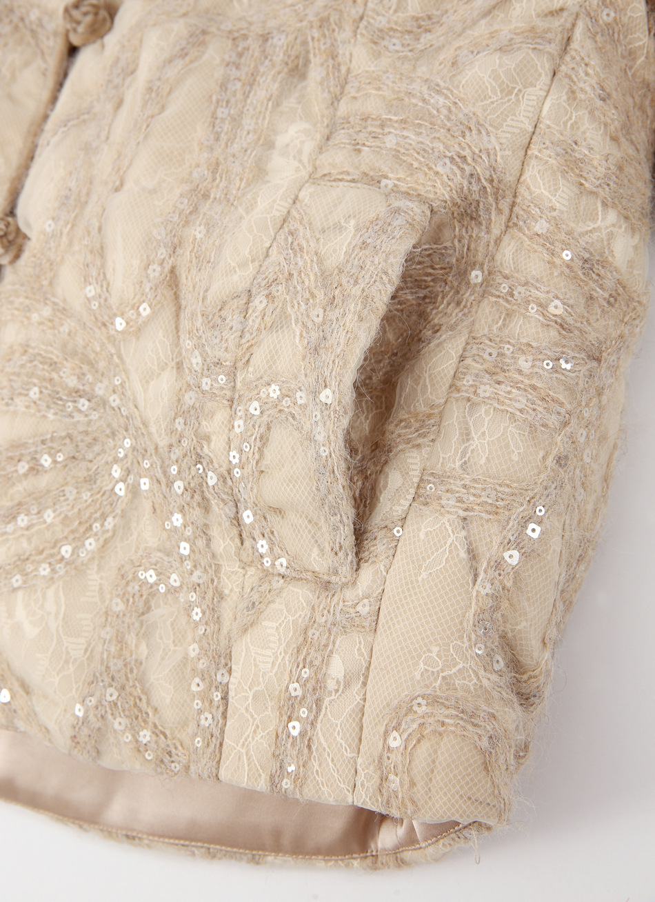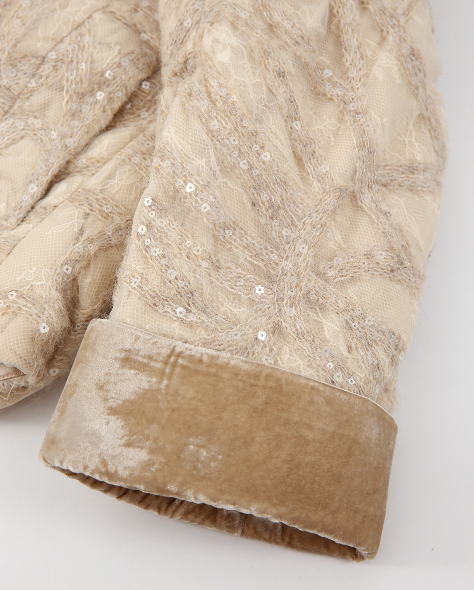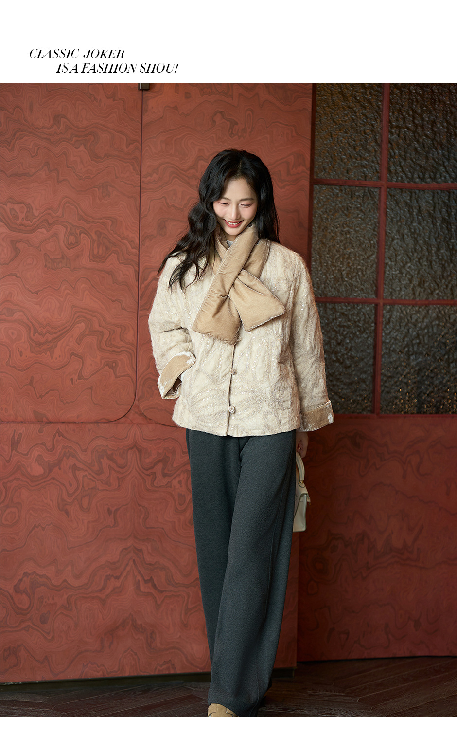 丁摩 桑蚕丝亮片白鹅绒外套女冬送围巾丝绒拼接保暖时尚短款5ZF-76070