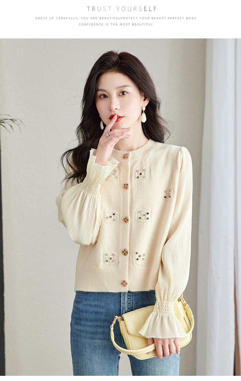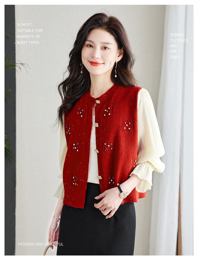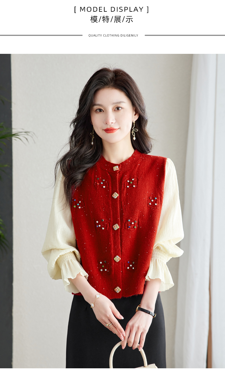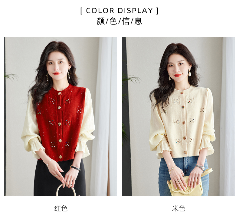 拼接假两件,小香风针织外套HR-MLLJ6690-2