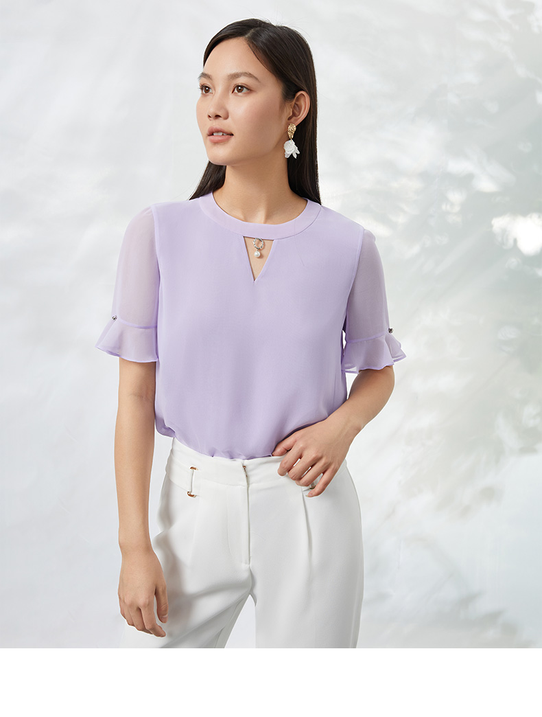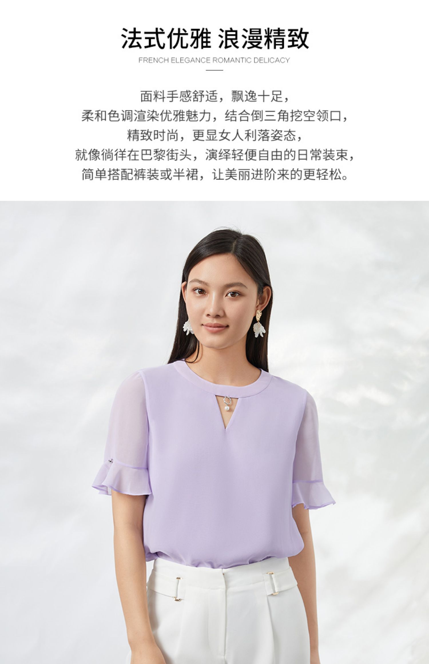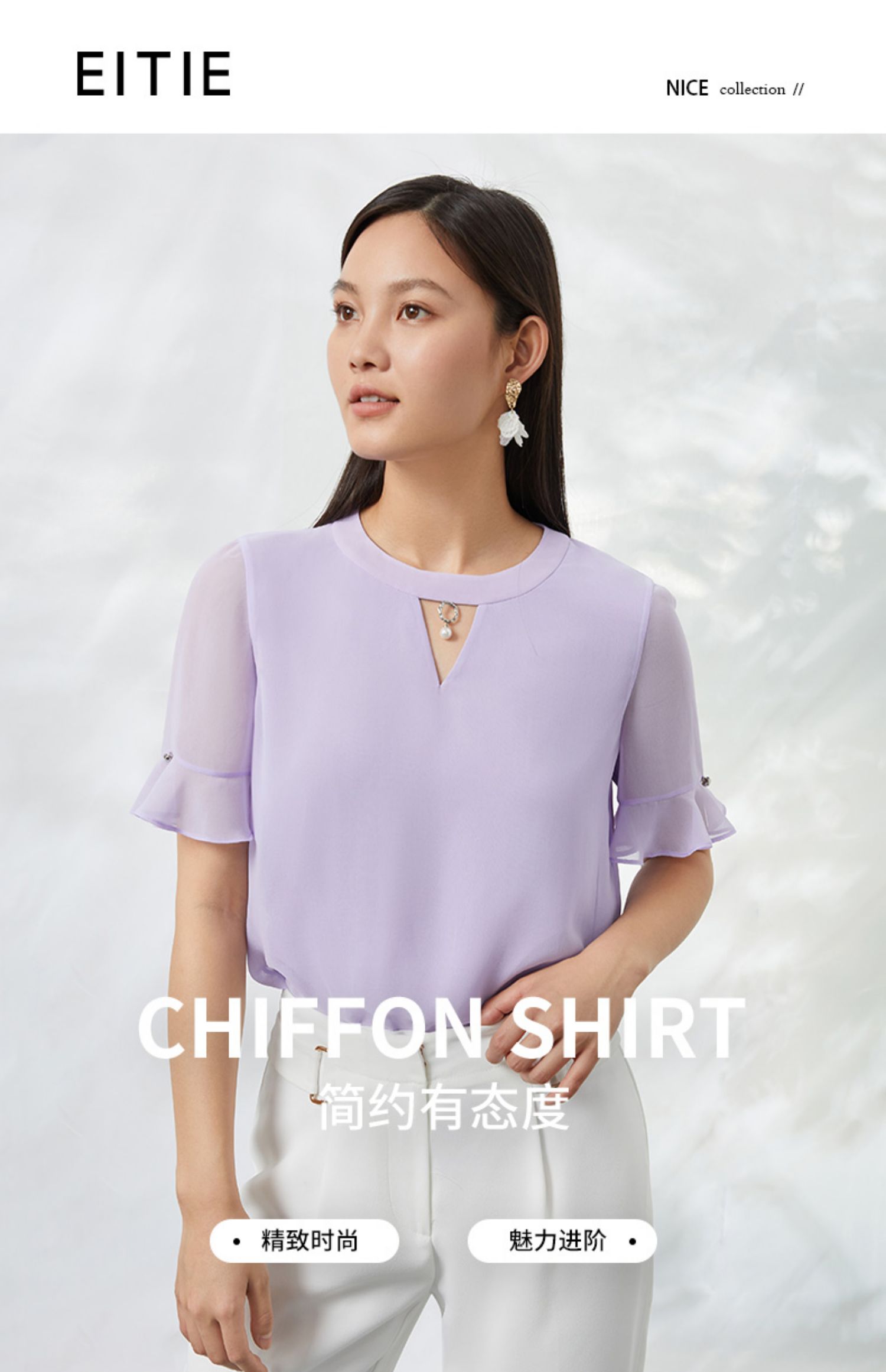 EITIE爱特爱夏新款时尚通勤气质百搭温柔紫色直筒衫上衣B2213924