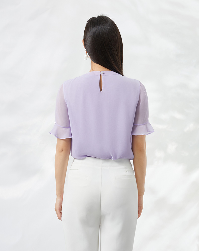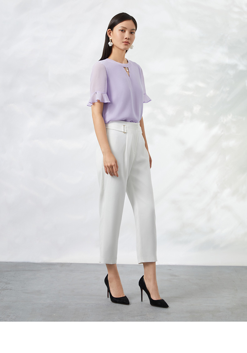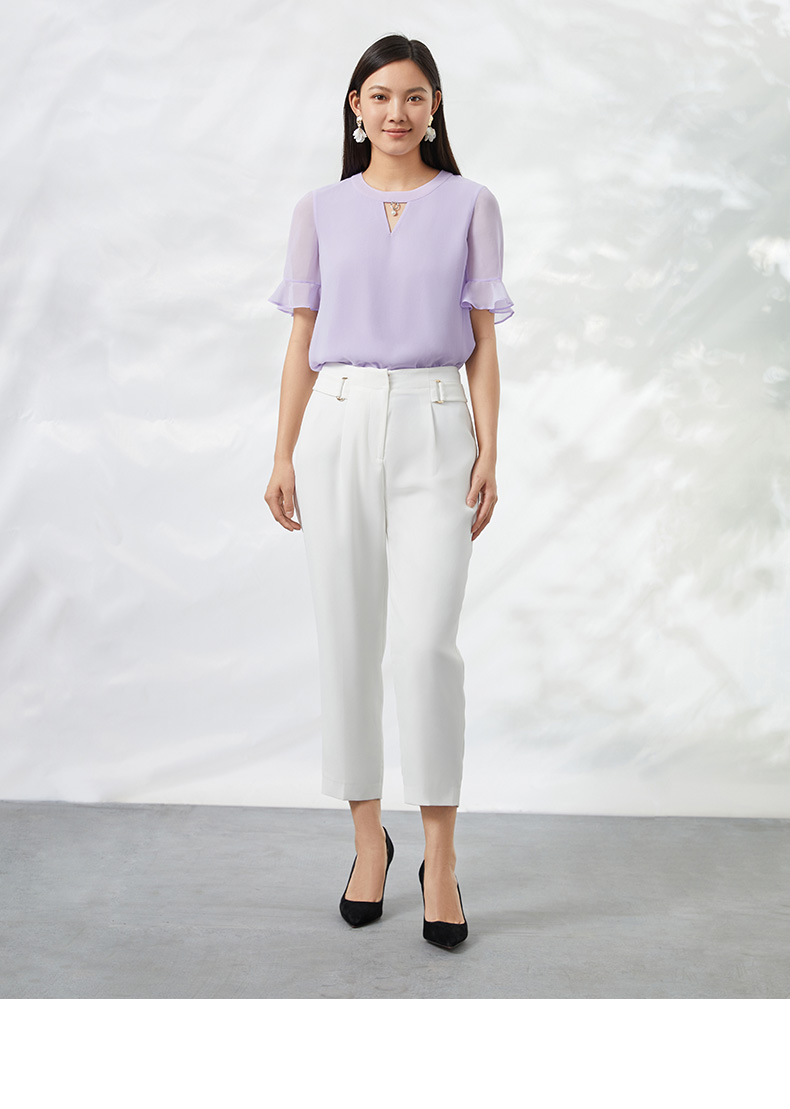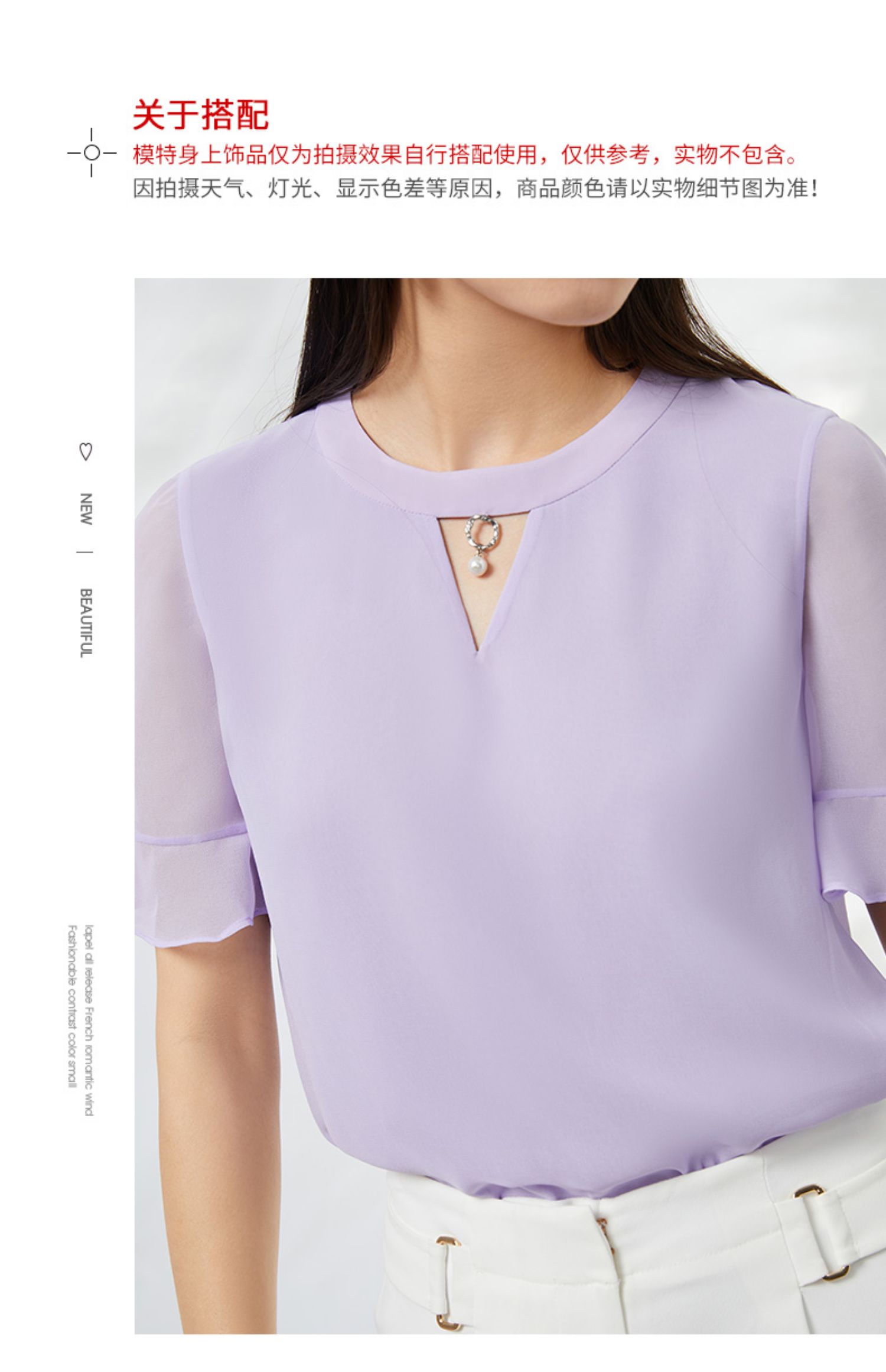 EITIE爱特爱夏新款时尚通勤气质百搭温柔紫色直筒衫上衣B2213924