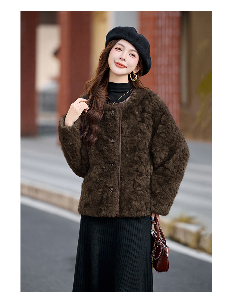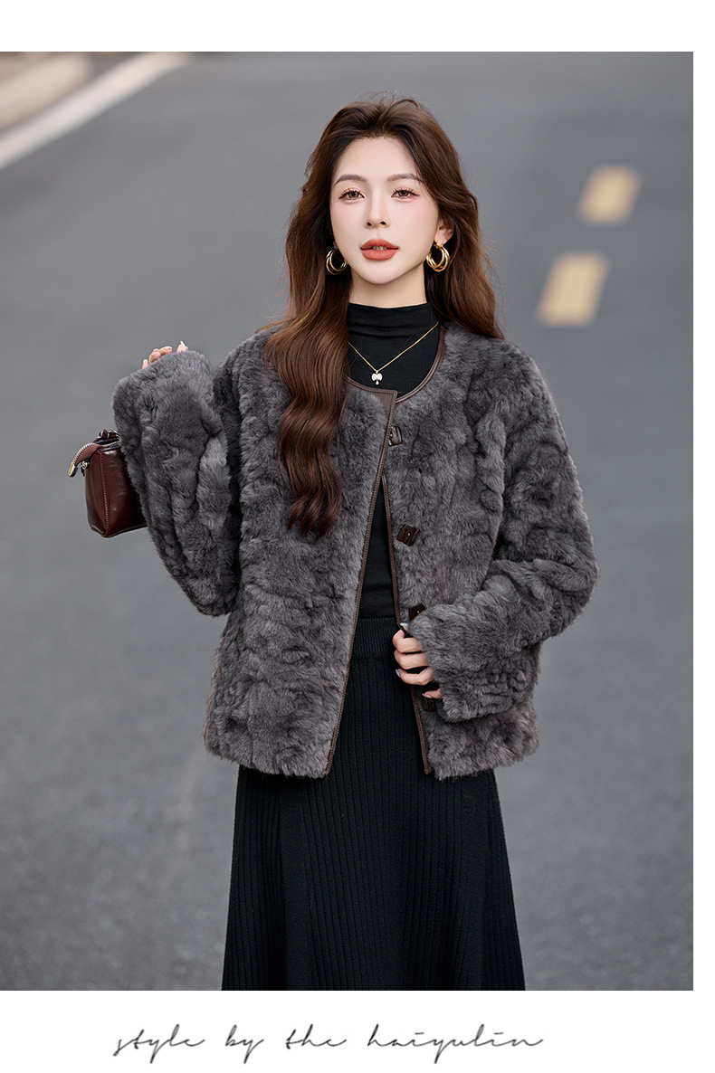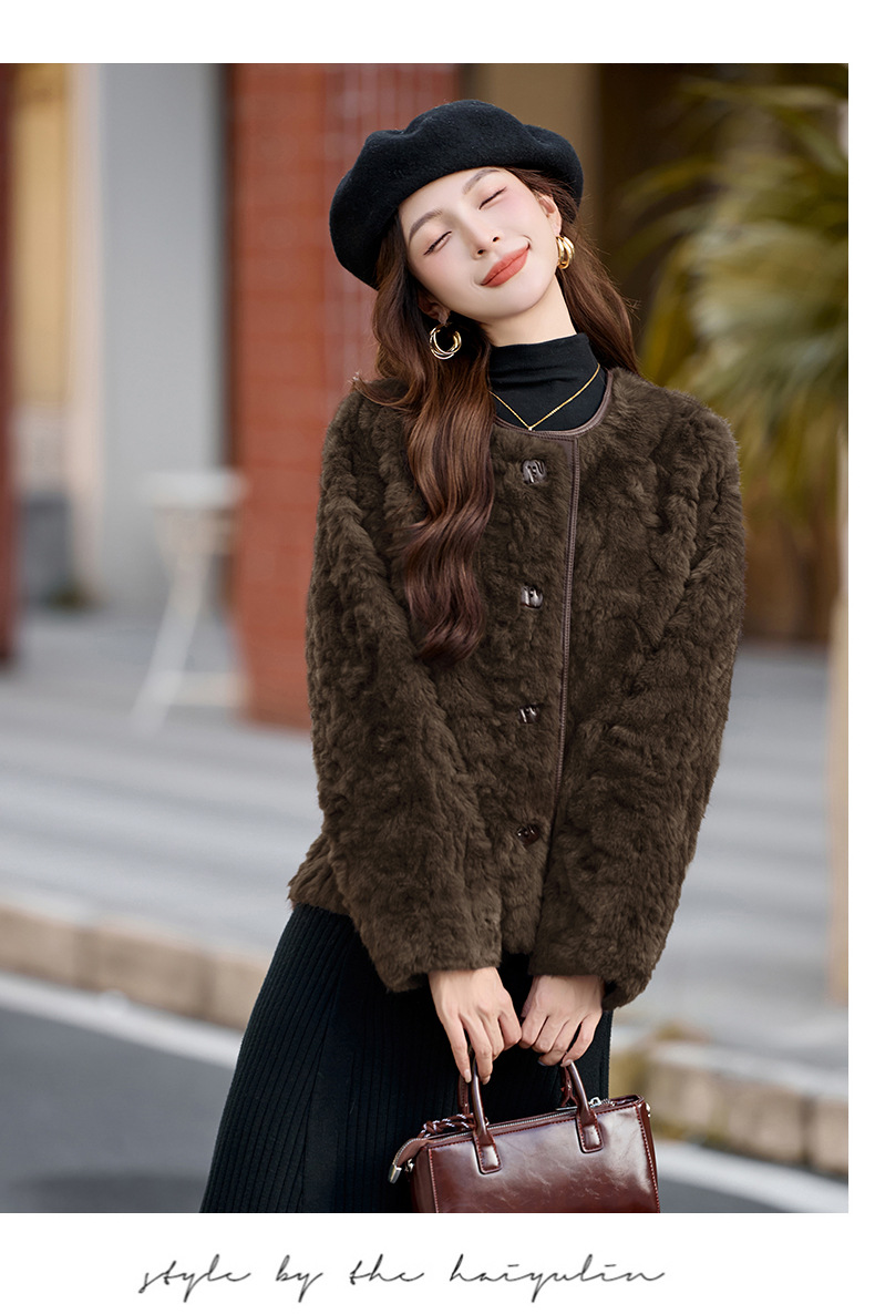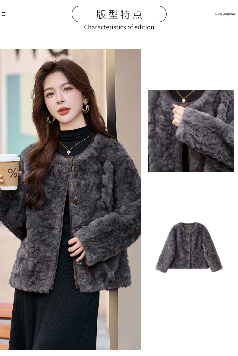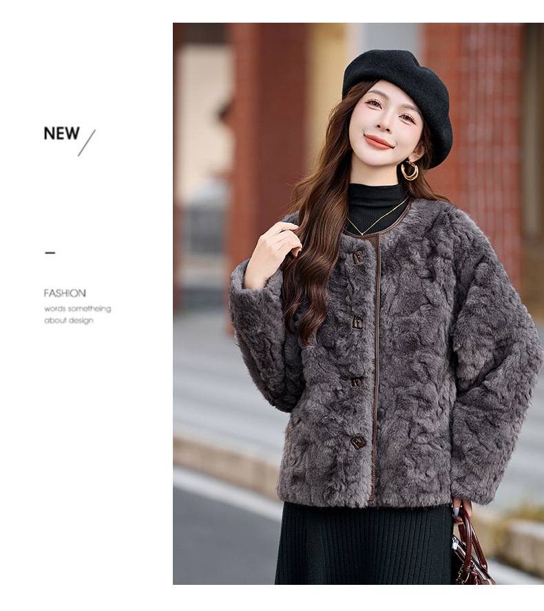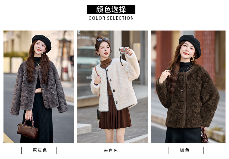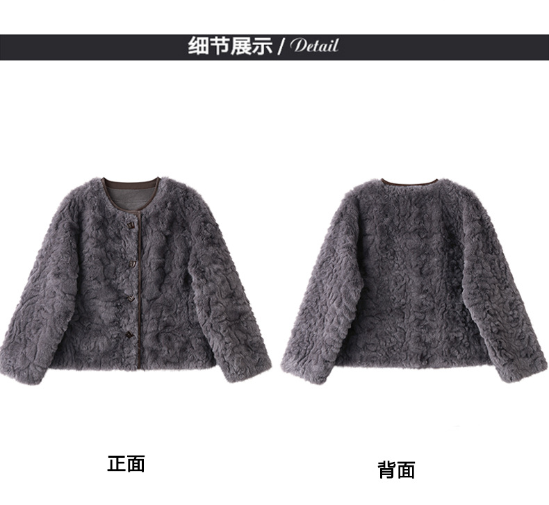 皮毛一体外套加厚保暖短款,仿羊羔毛环保皮草毛绒上衣HR-QIXFS25-5507