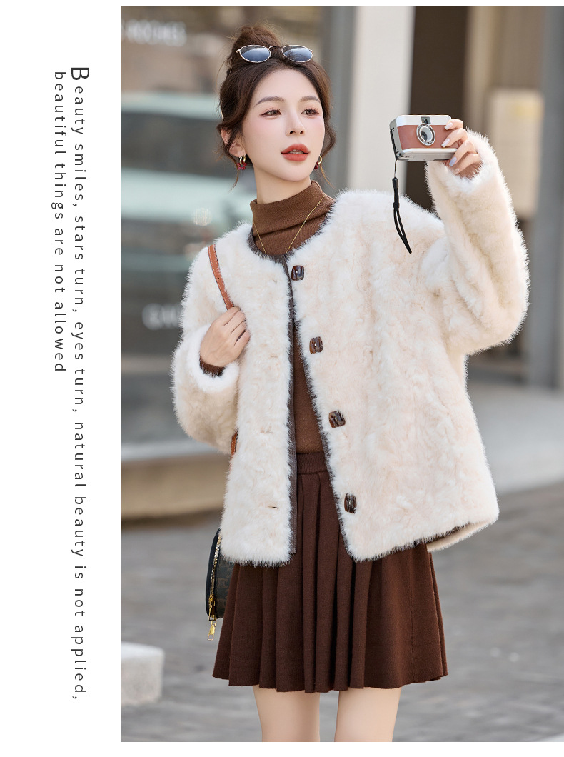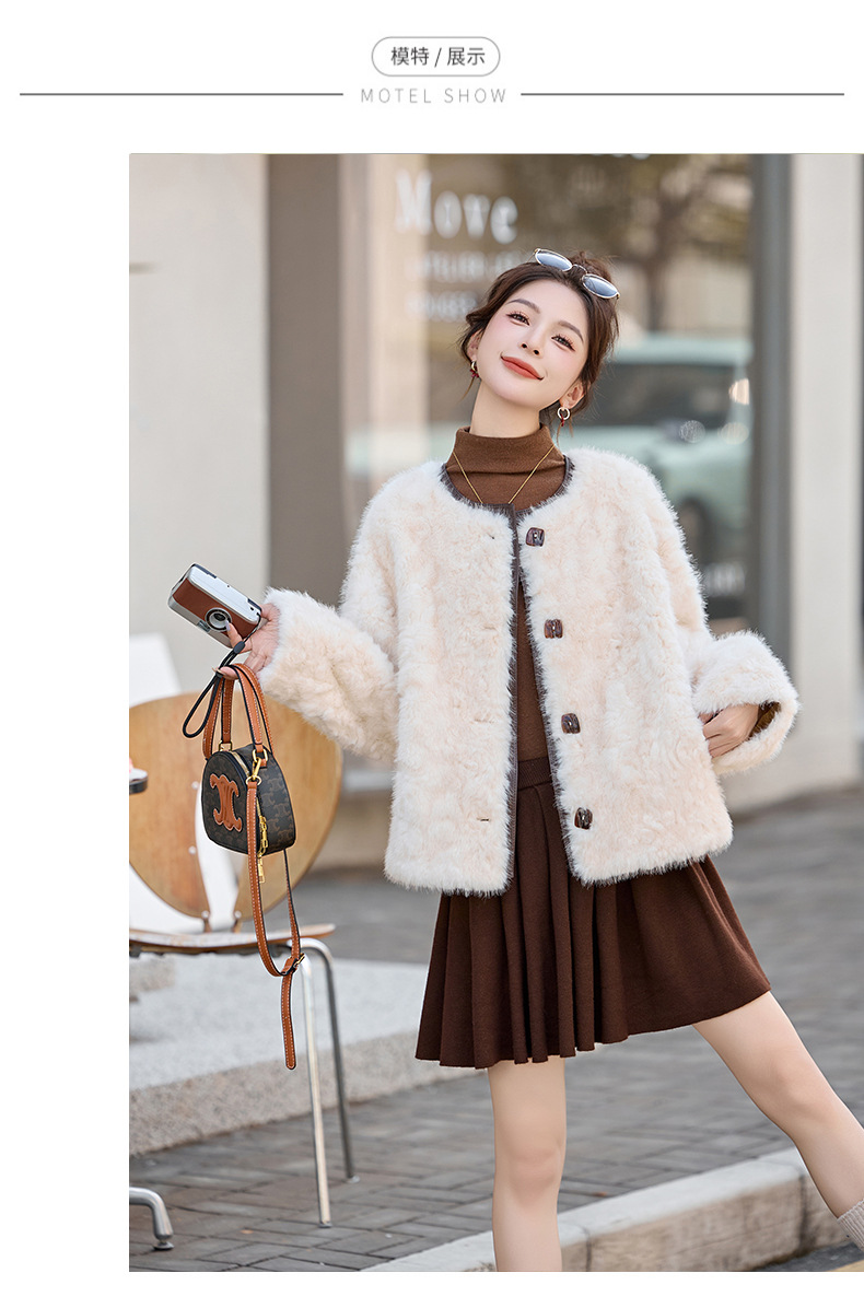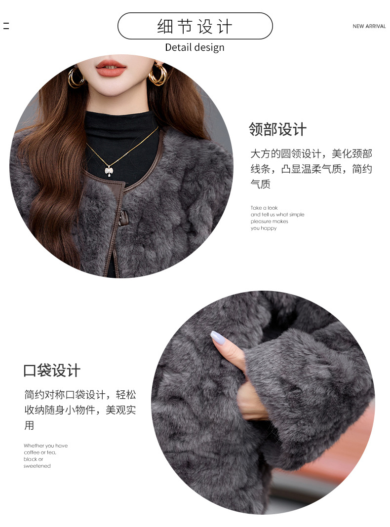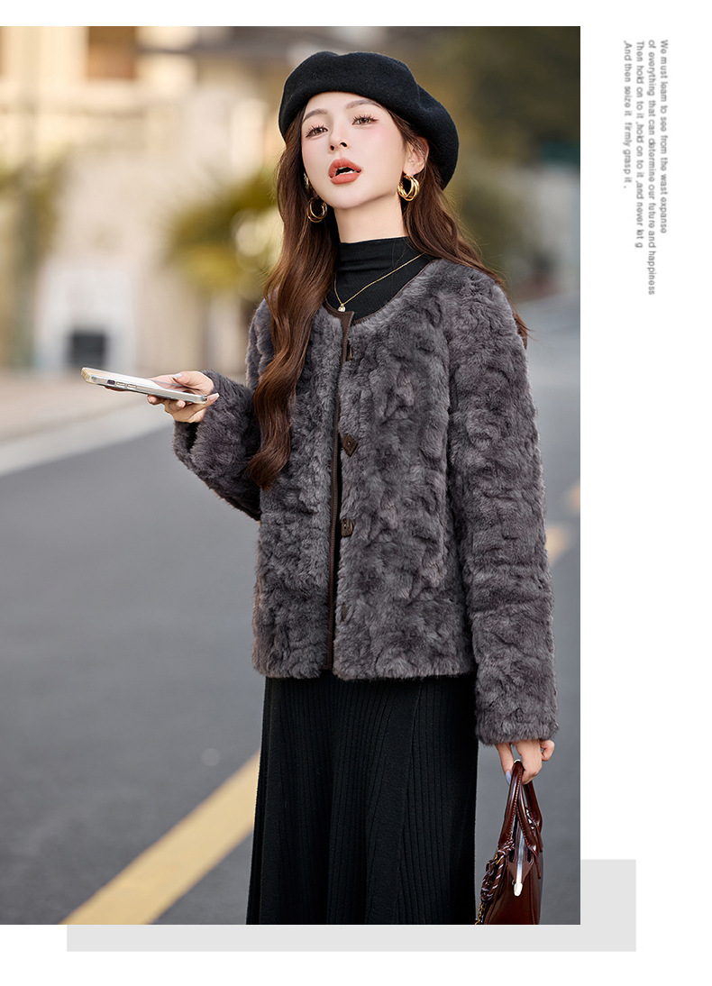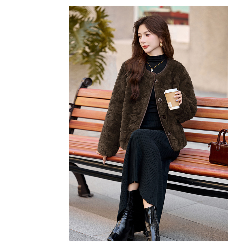 皮毛一体外套加厚保暖短款,仿羊羔毛环保皮草毛绒上衣HR-QIXFS25-5507
