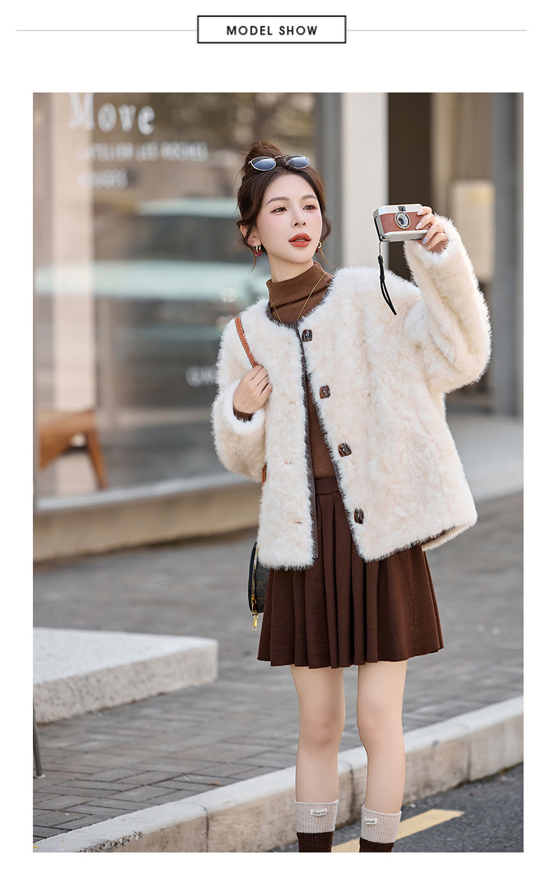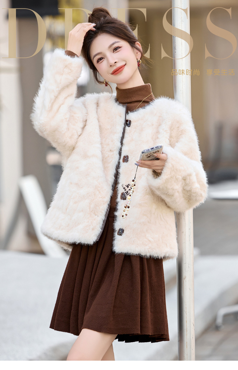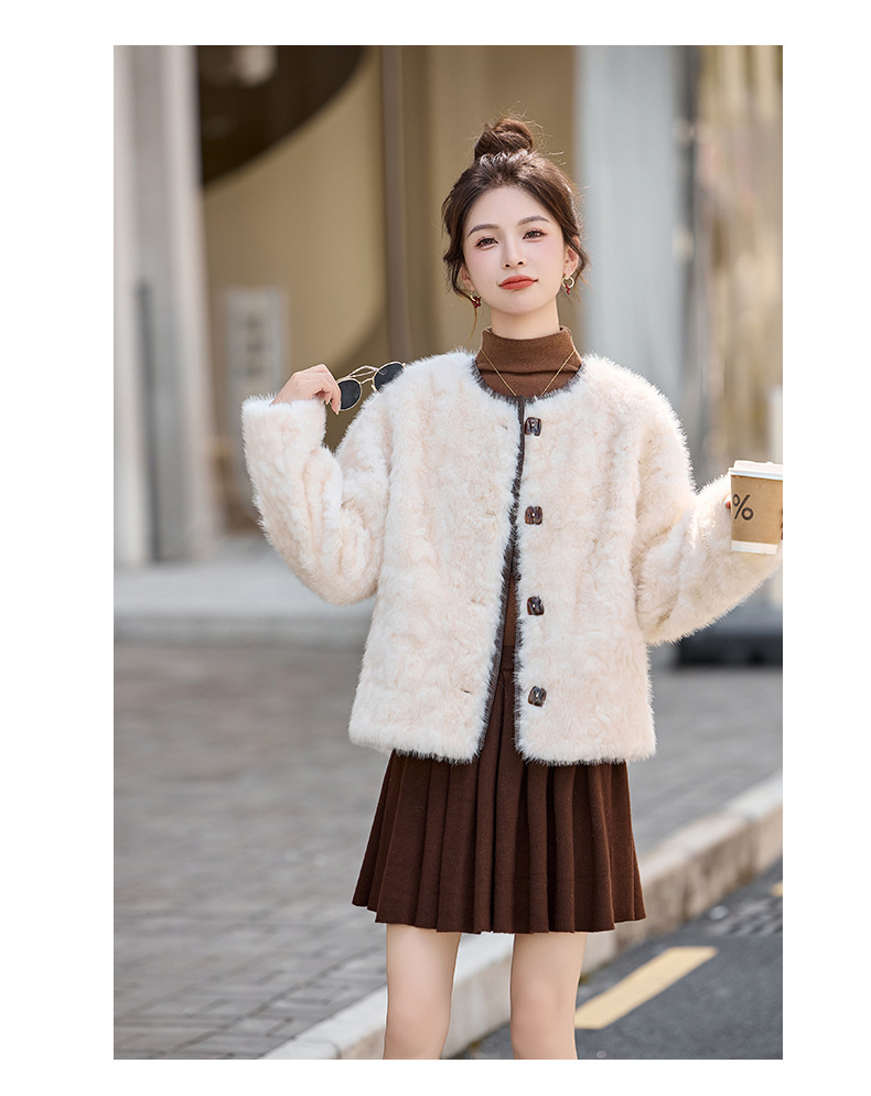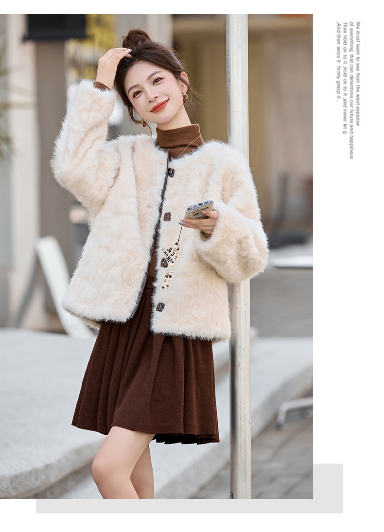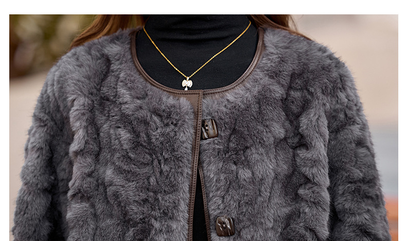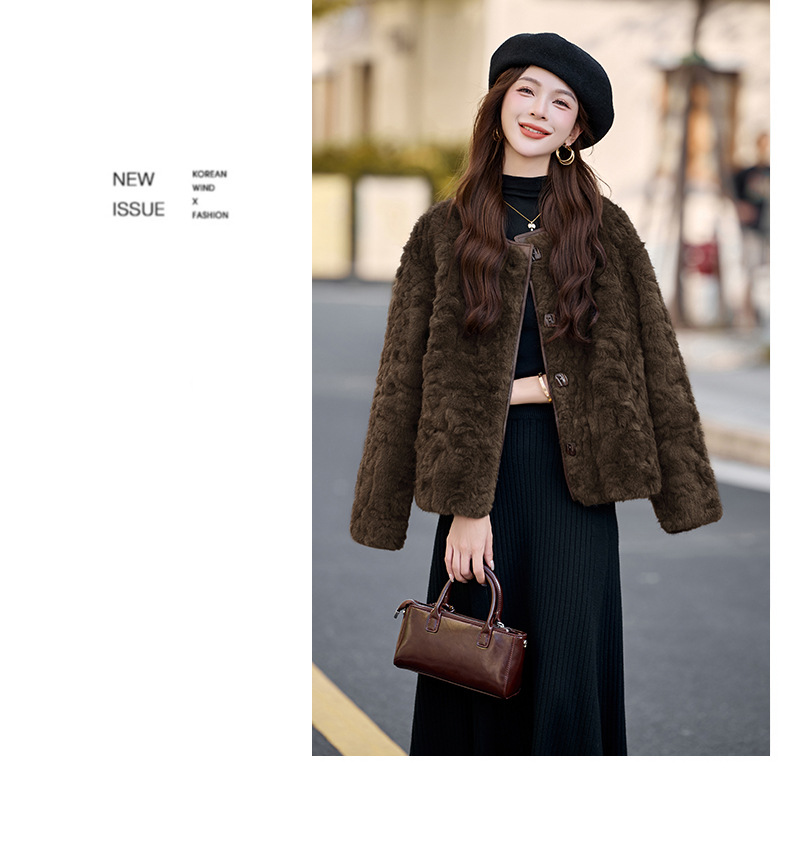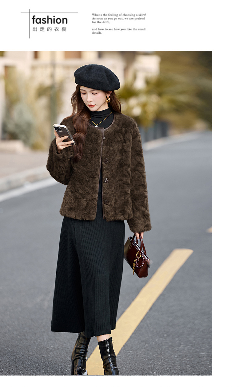 皮毛一体外套加厚保暖短款,仿羊羔毛环保皮草毛绒上衣HR-QIXFS25-5507
