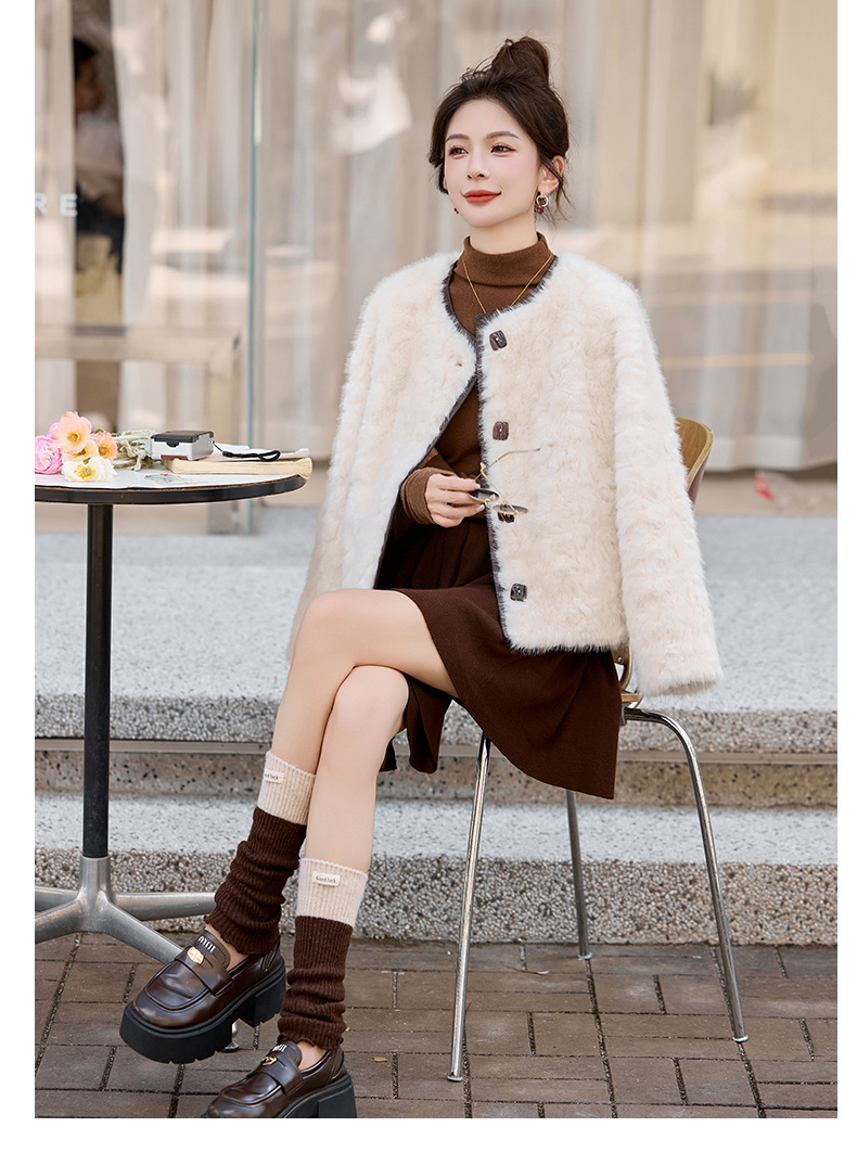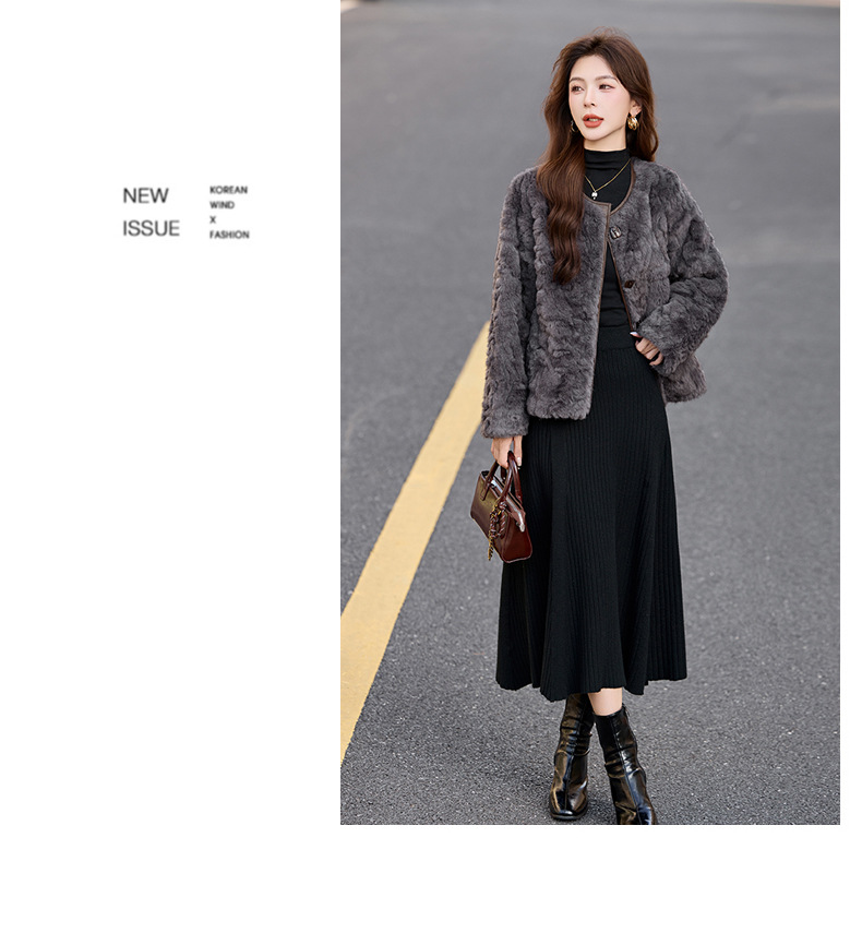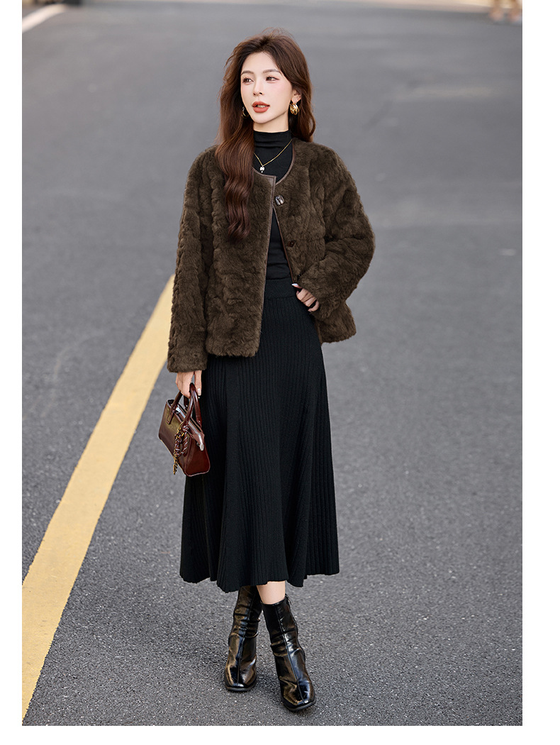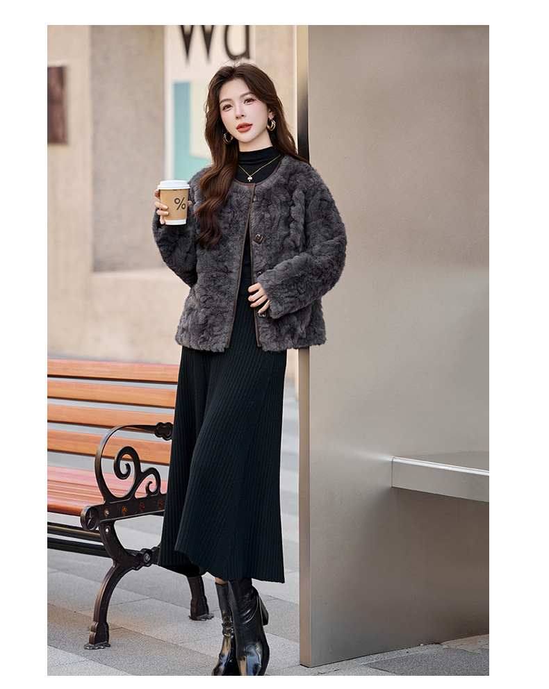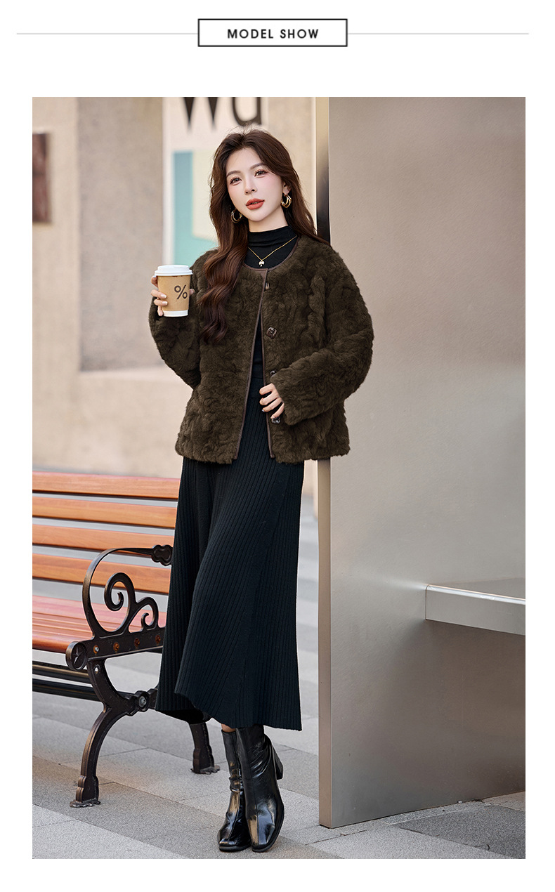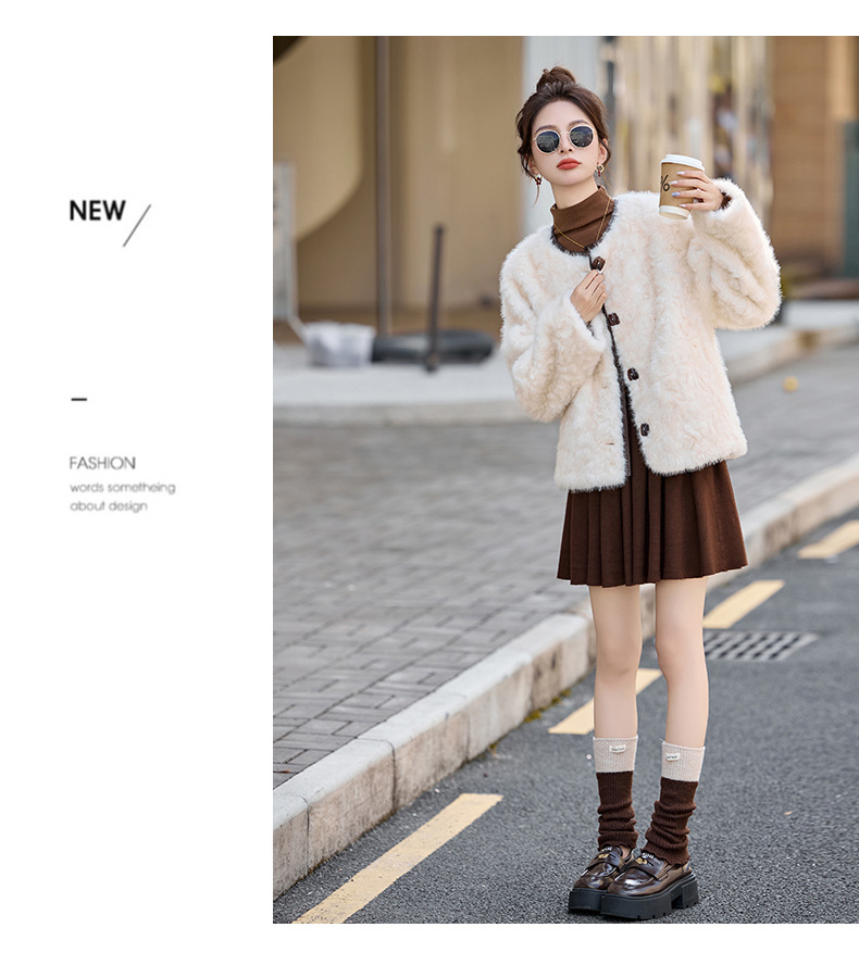 皮毛一体外套加厚保暖短款,仿羊羔毛环保皮草毛绒上衣HR-QIXFS25-5507