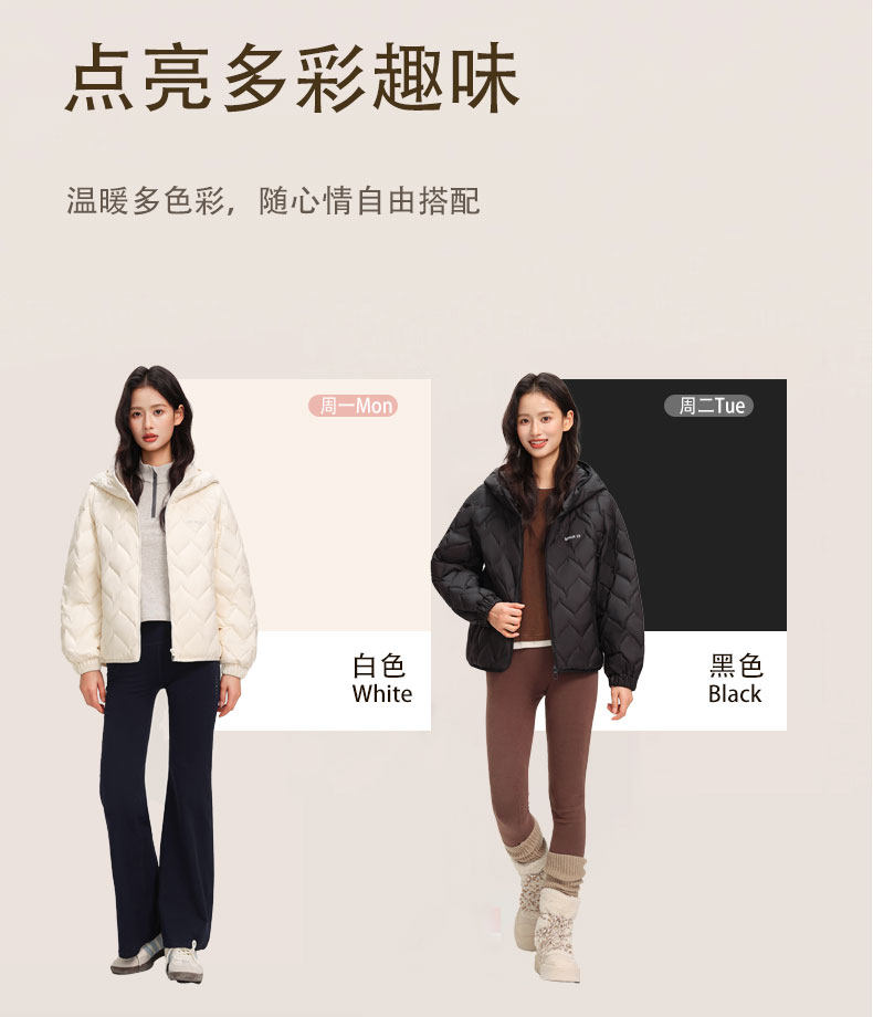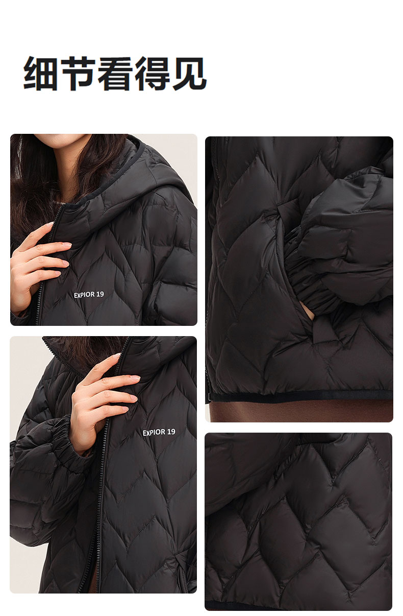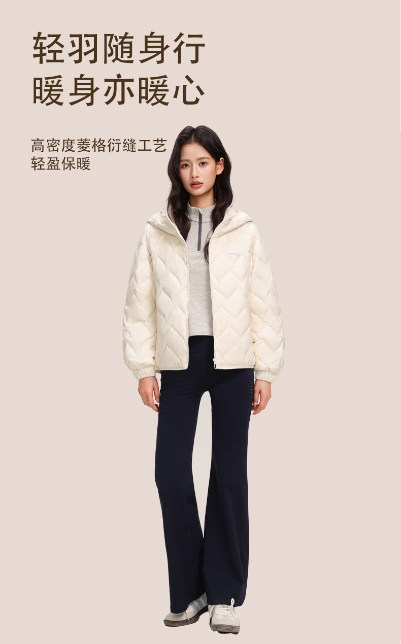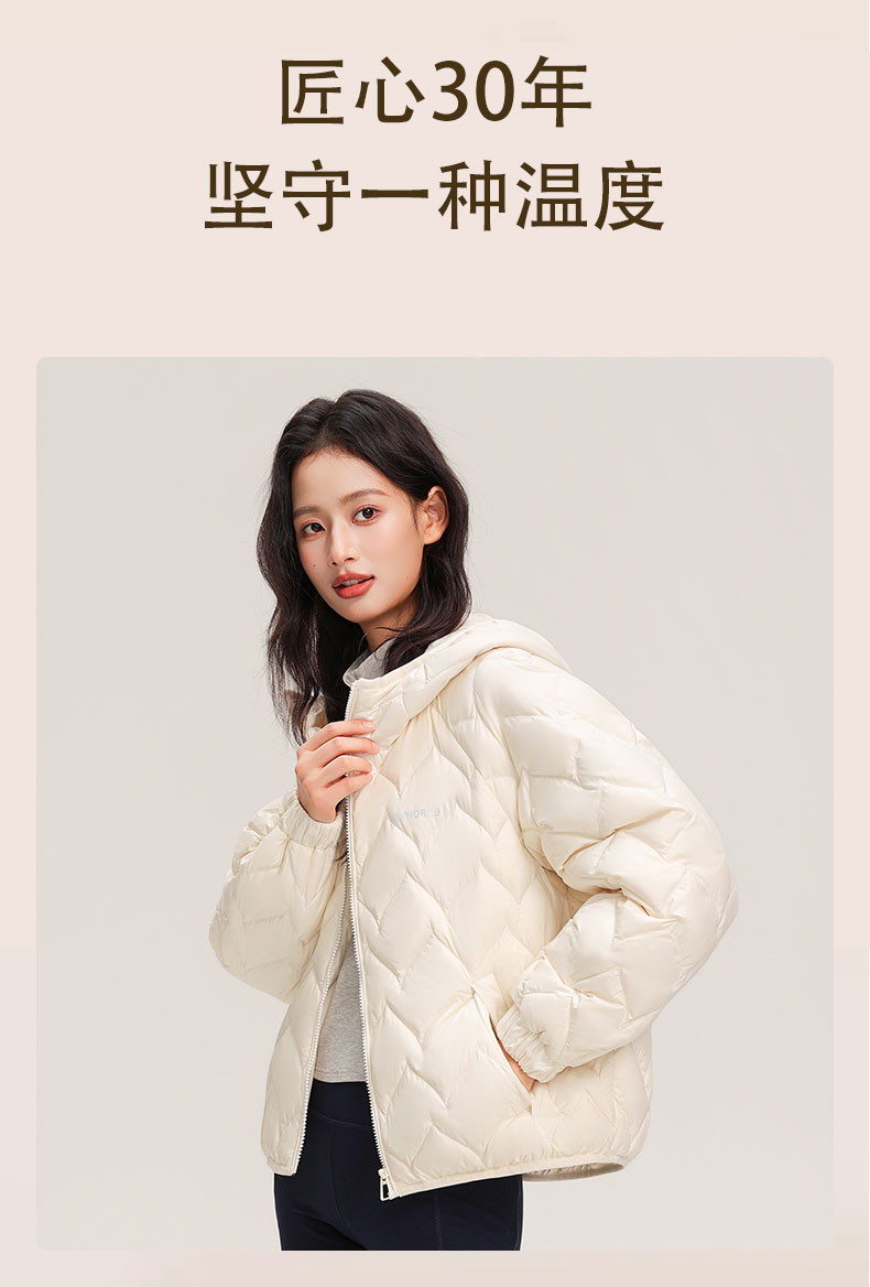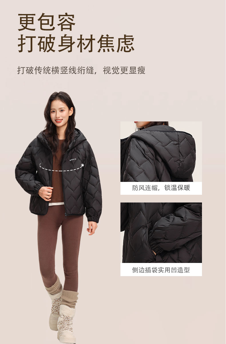 ✅90% 白鸭绒 + 超轻设计,高密度防风,5-10℃搭薄毛衣即可,秋冬叠穿无负担,保暖不厚重✅创新菱形绗缝 + 3D 充绒,防堆积不变形,微光泽面料显高级,视觉显瘦不臃肿✅短款显腿长,落肩袖藏肉适配多身形,连帽抽绳防风,小个子穿显高 5cm✅隐形插袋 + 内里暗袋 + 顺拉链,抗皱易打理,可搭街头 / 通勤 / 甜美风,一衣多穿