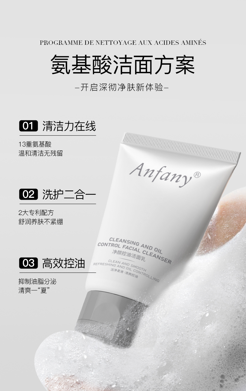 【Anfany净颜控油洁面乳】多重氨基酸温和清洁 改善出油暗沉油痘肌 清爽舒适无残留 舒润养肤不紧绷 清爽一整个夏天 100g/支
