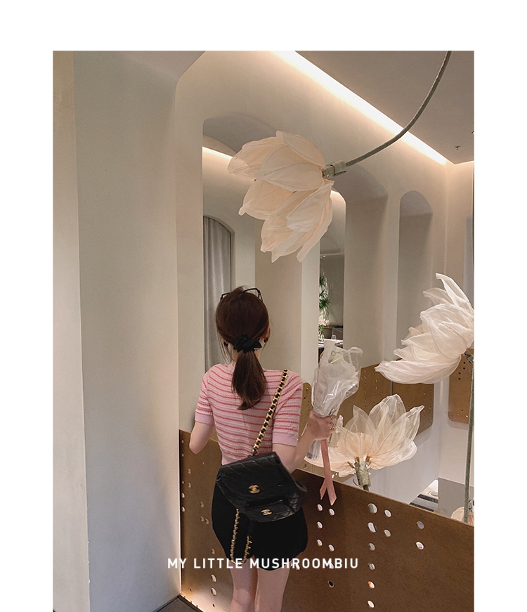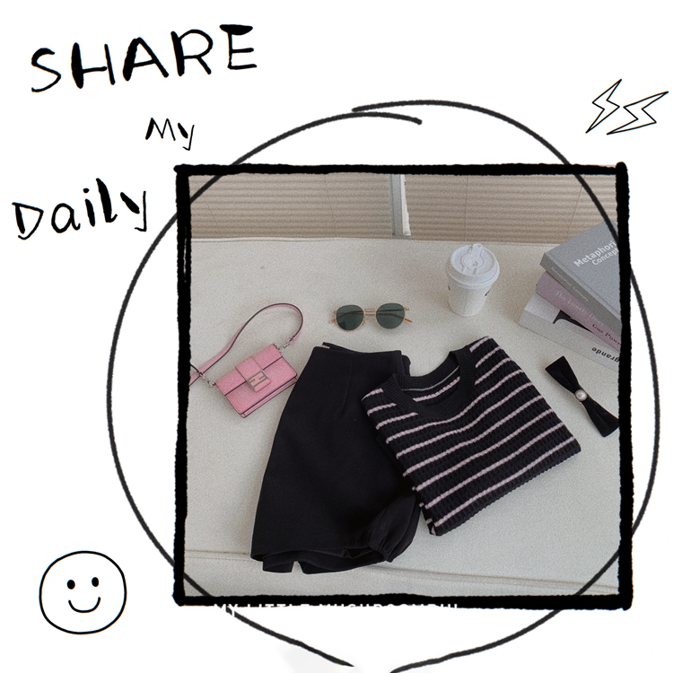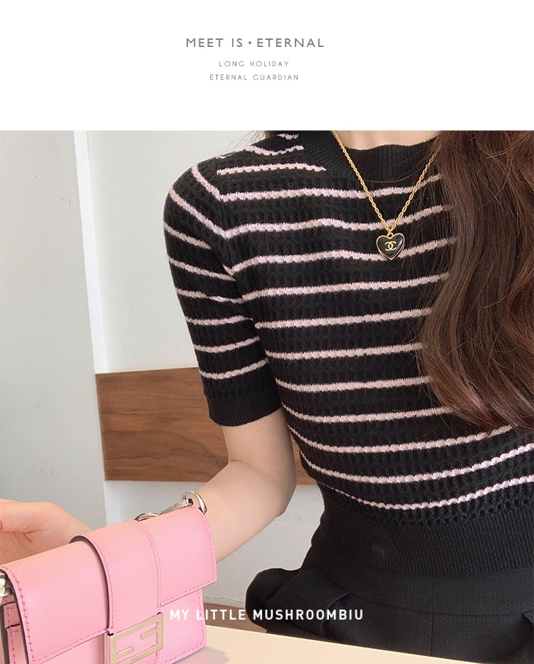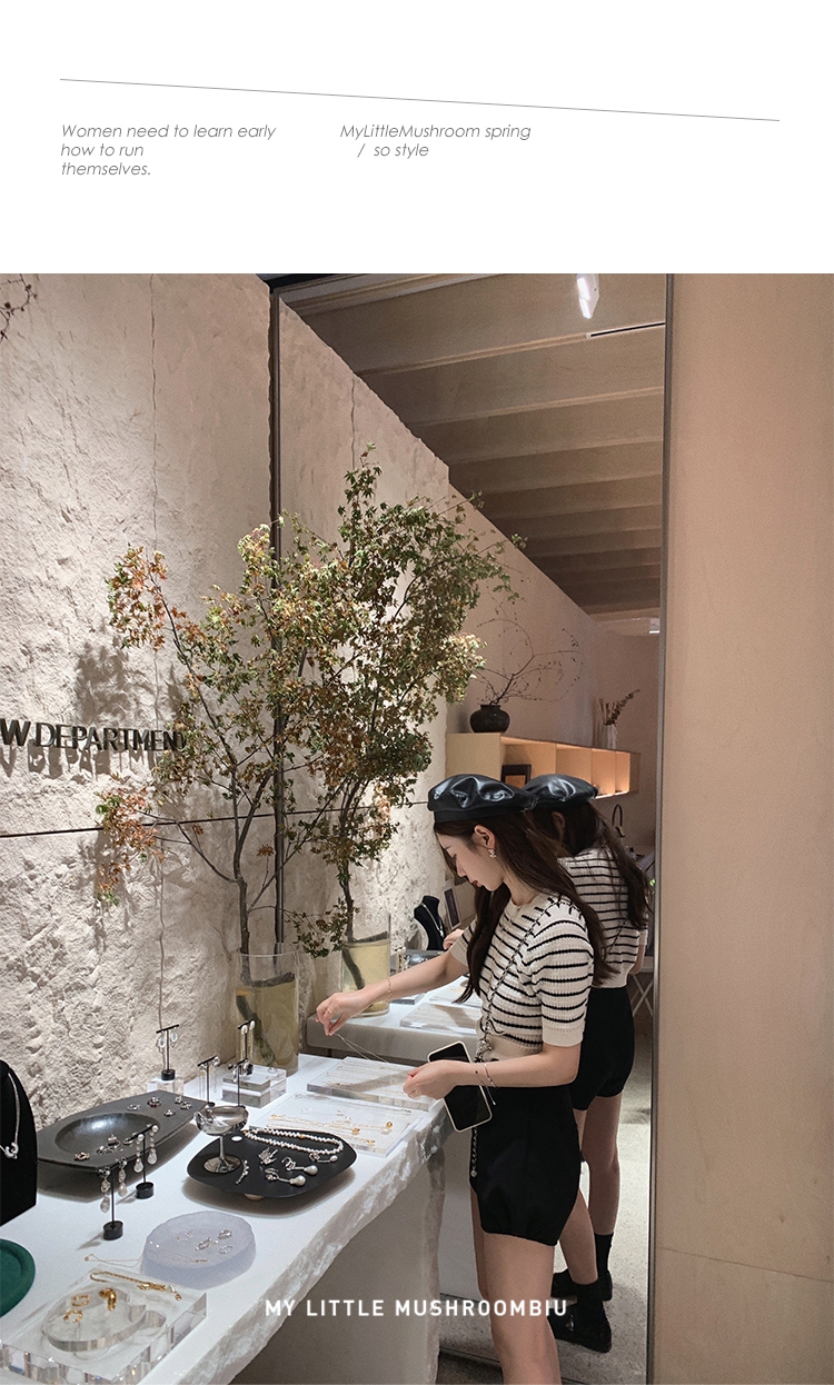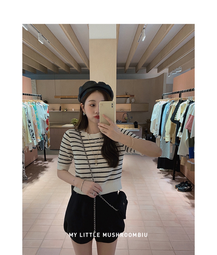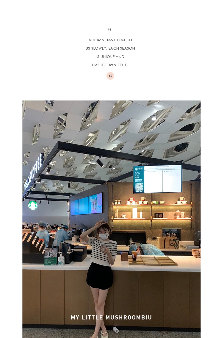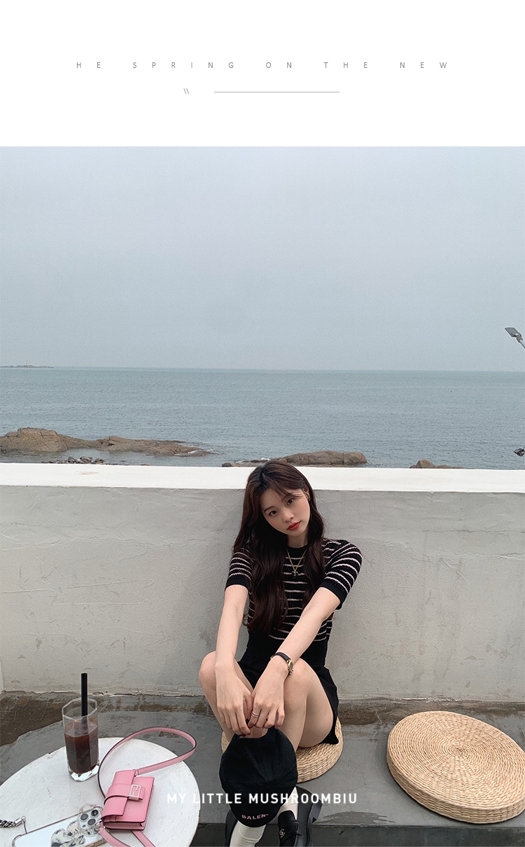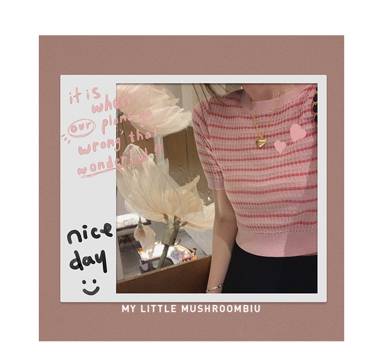 南瓜短裤 金蘑菇菇【日出告白】法式条纹短袖针织上衣+南瓜短裤甜美休闲