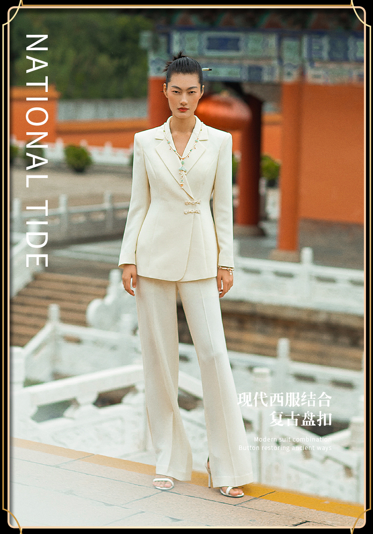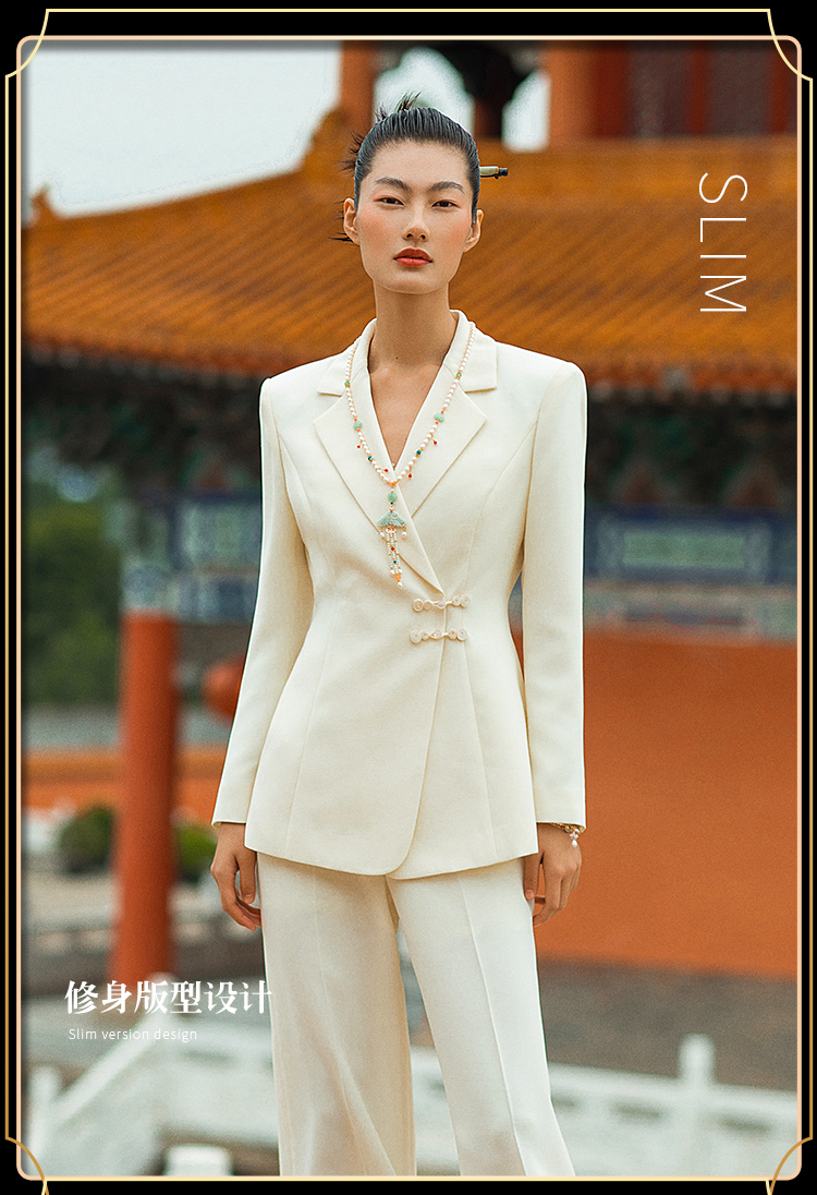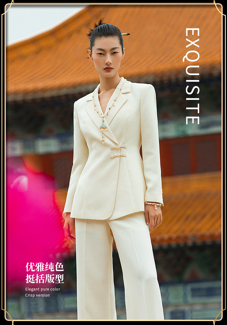 IWY/国风职业时尚西装套装修身复古盘扣中式优雅纯色女213223C1+P2