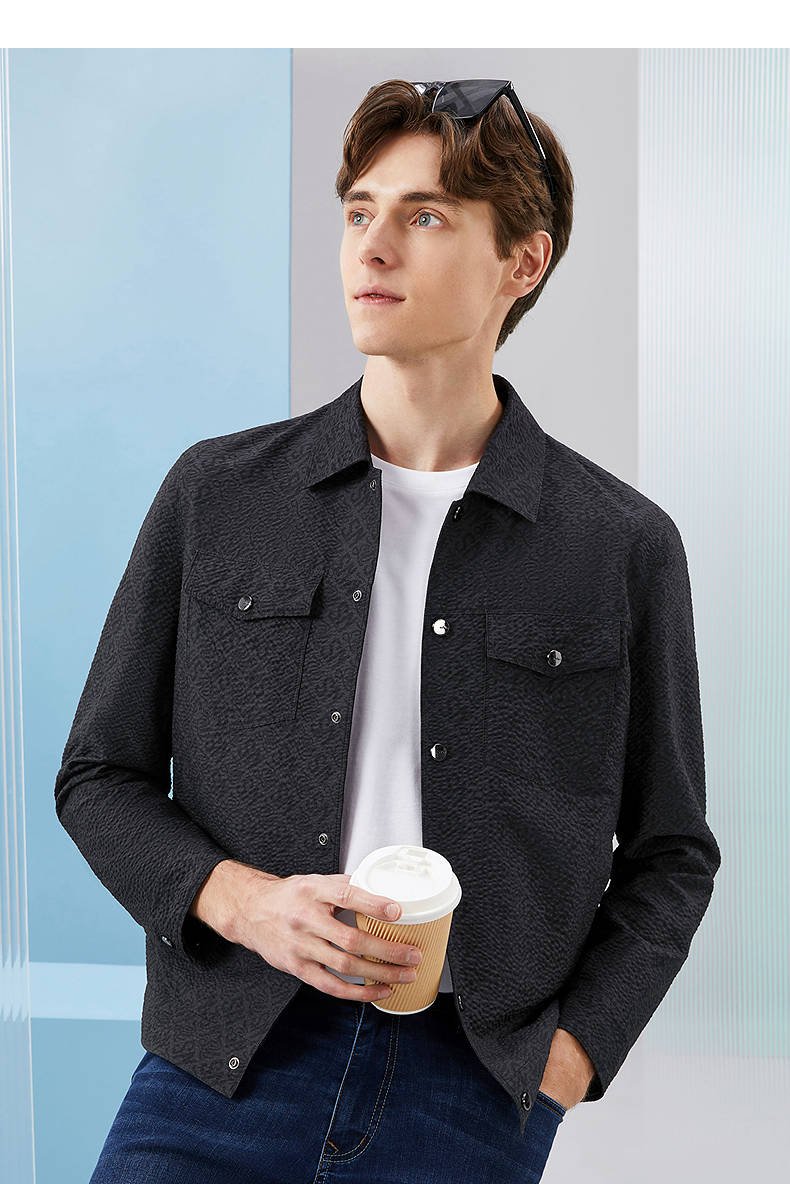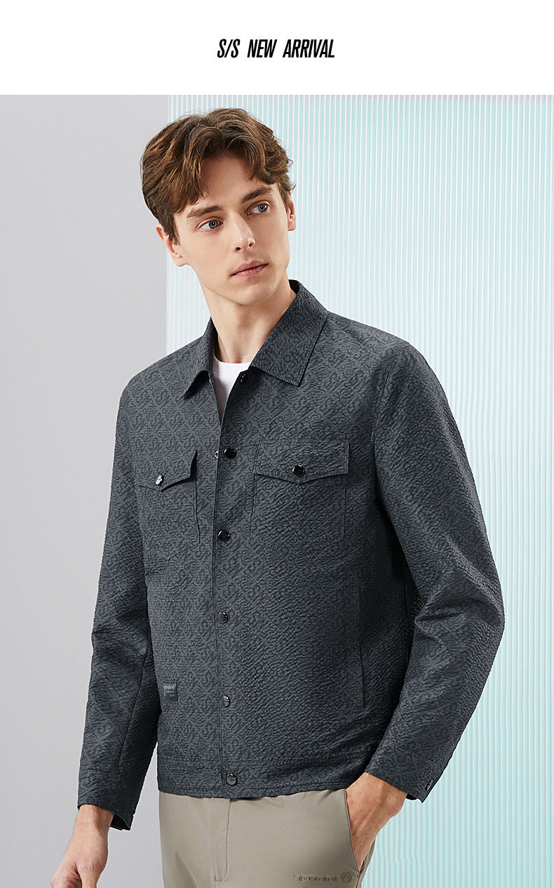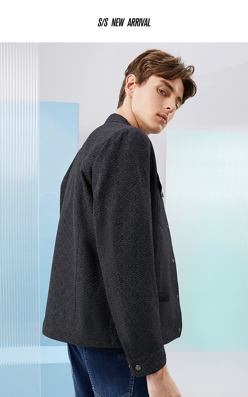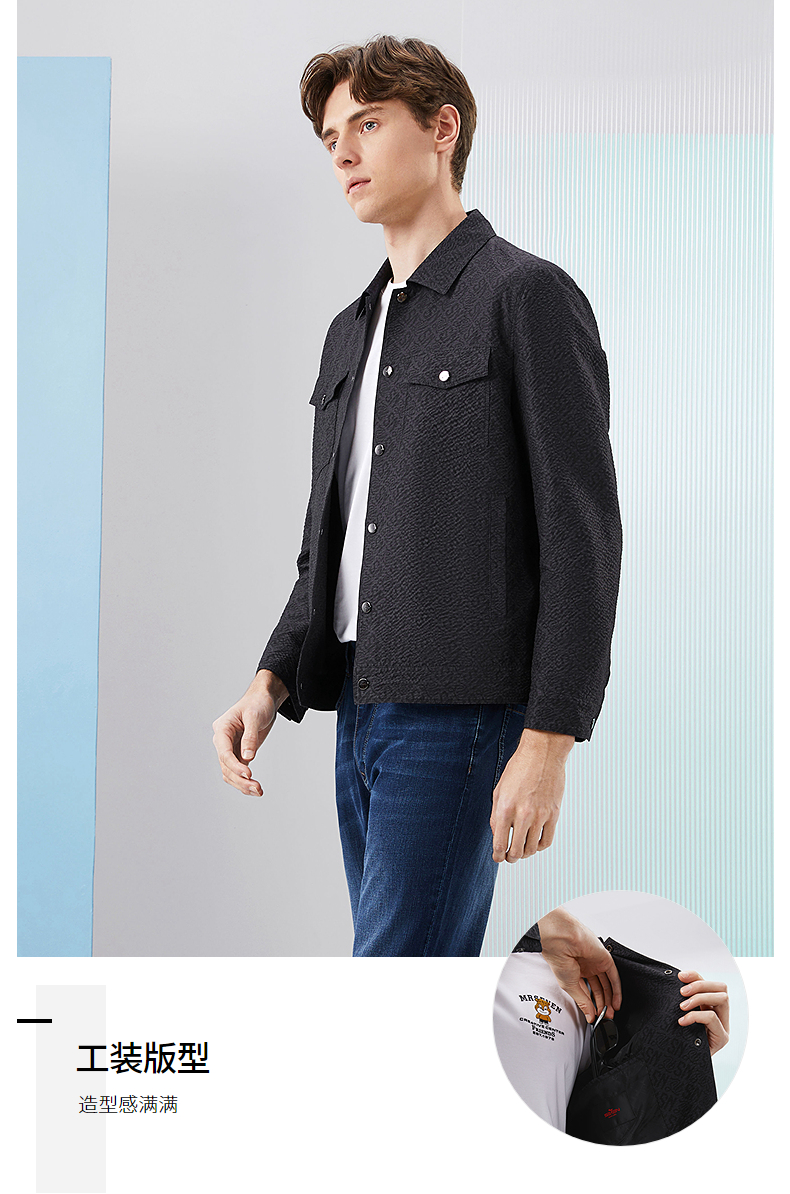 柒牌男装翻领夹克男2024春季薄款时尚潮流工装风仿麻印花休闲外套 126K70170