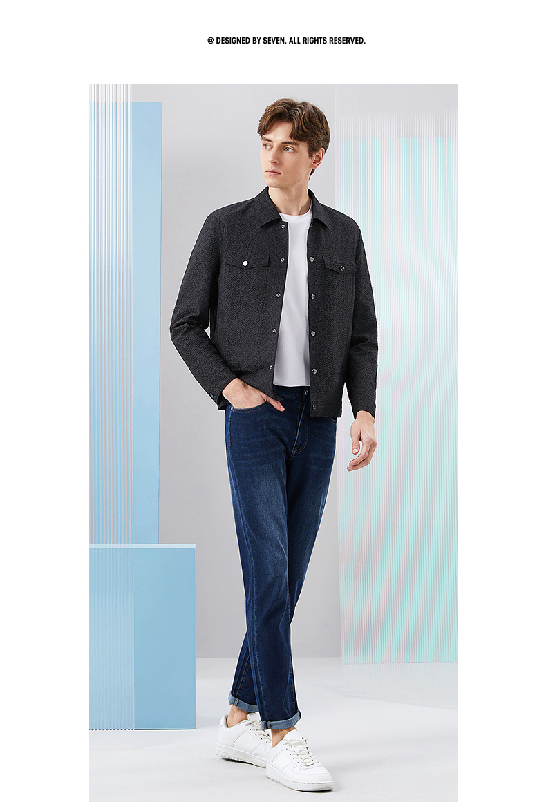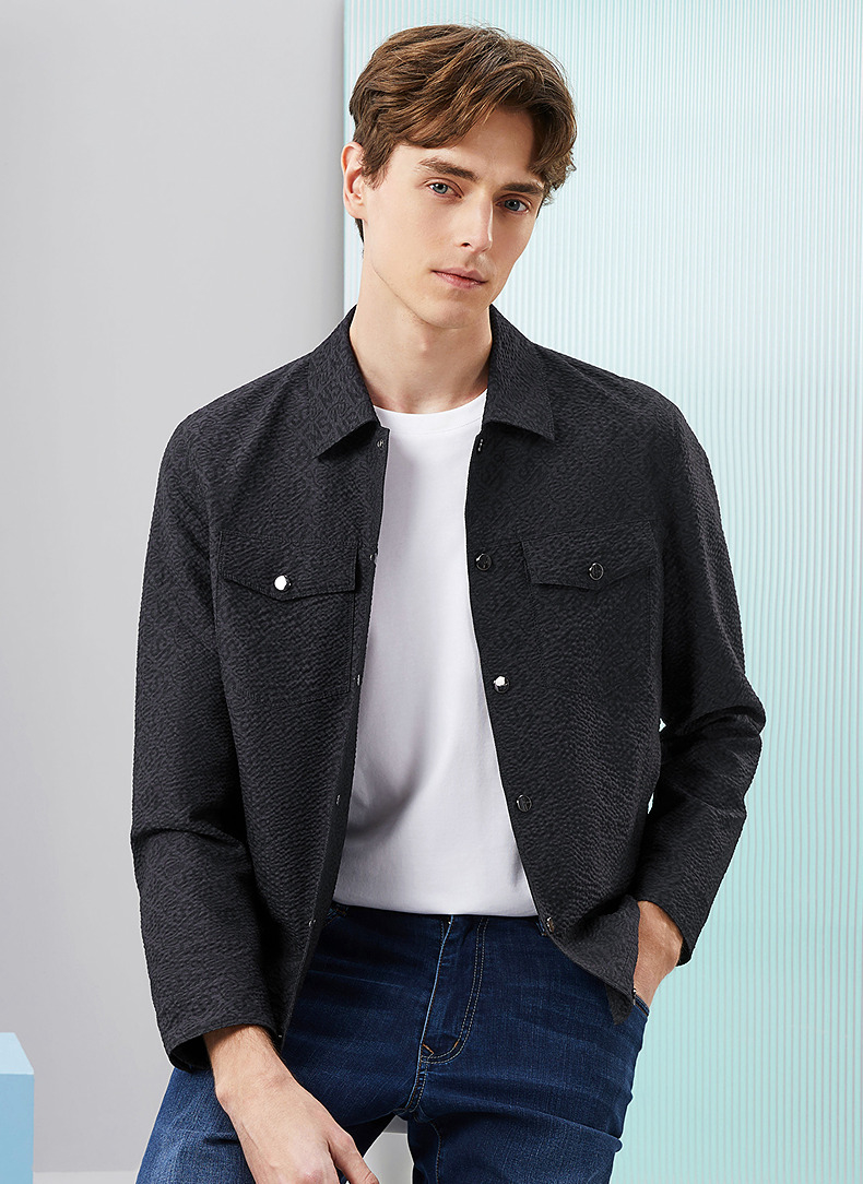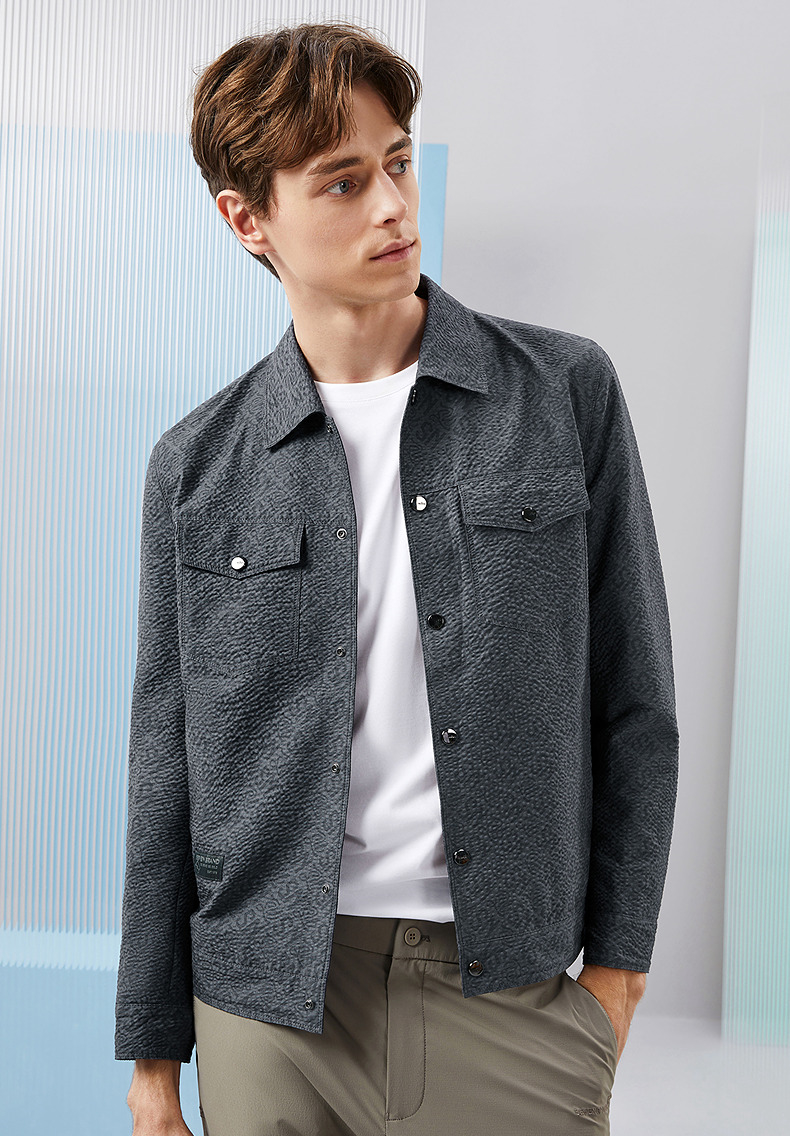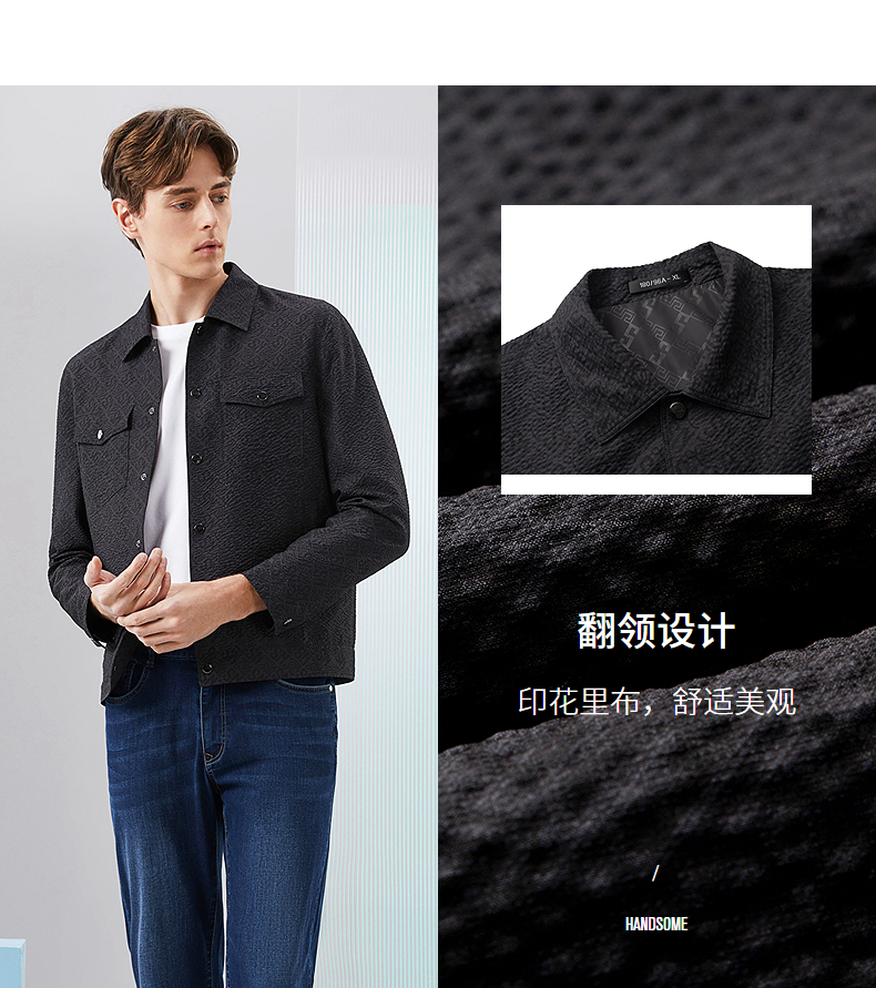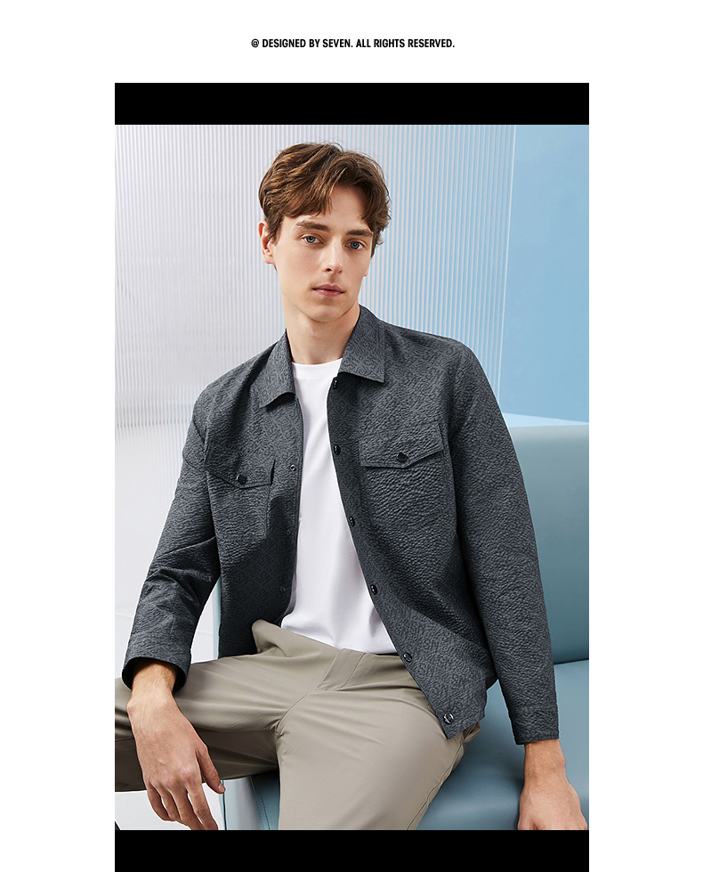 柒牌男装翻领夹克男2024春季薄款时尚潮流工装风仿麻印花休闲外套 126K70170