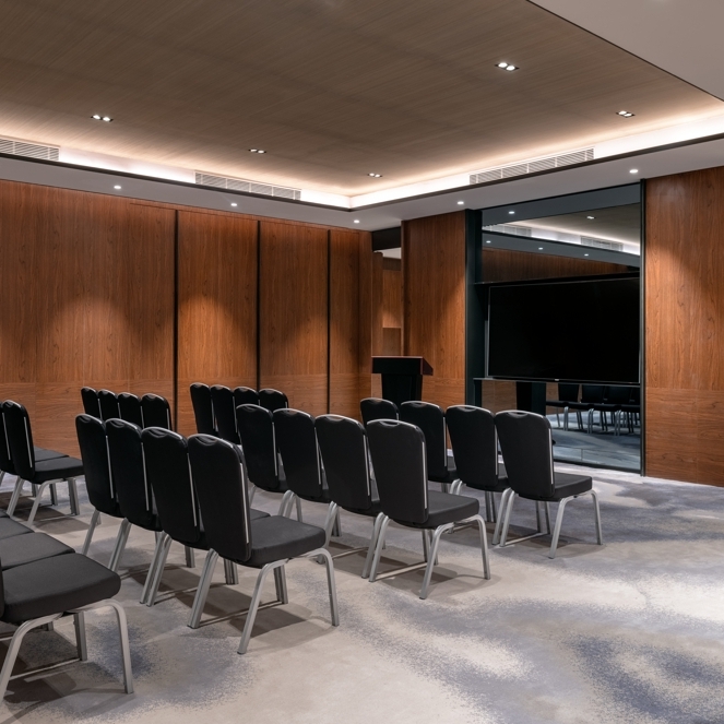 10个面积不等的多功能 厅和会议室。所有空间均配备先进的会议设施,并提供 300个地下停车位,可满足不同规模的会议和宴会的筹办需求。