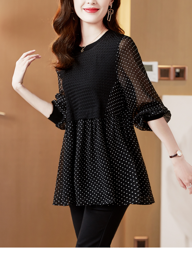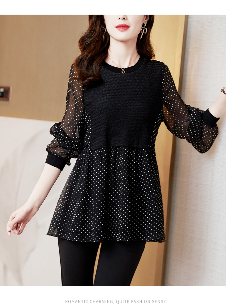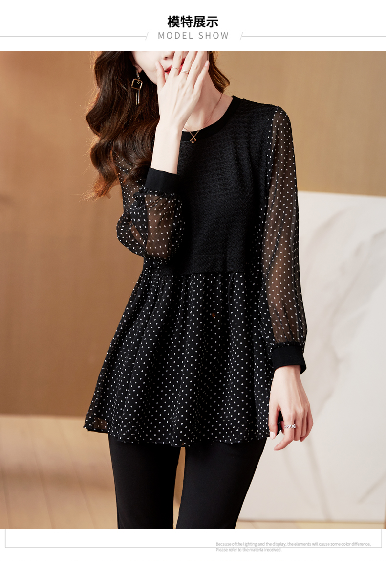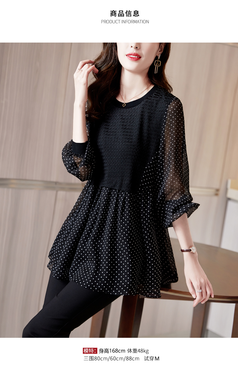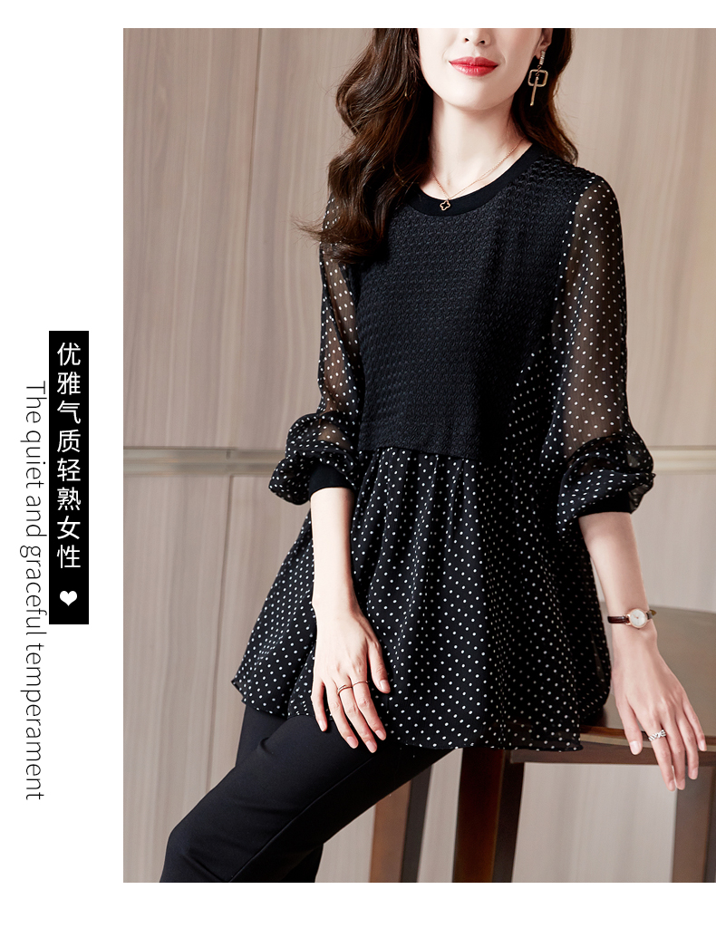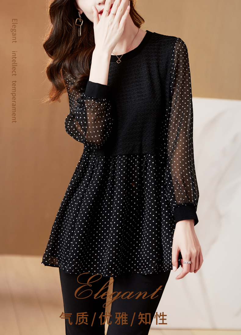黑色波点雪纺上衣女小衫新款洋气显瘦大码气质打底衫 YYM8026