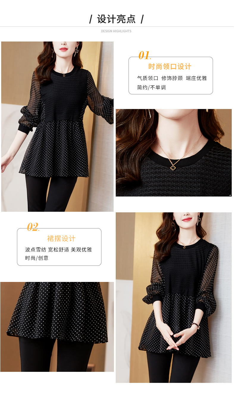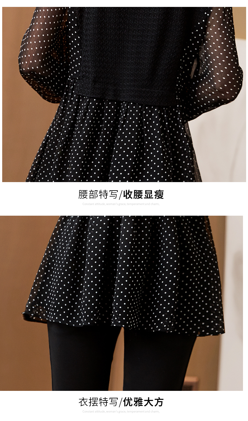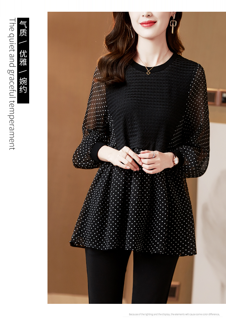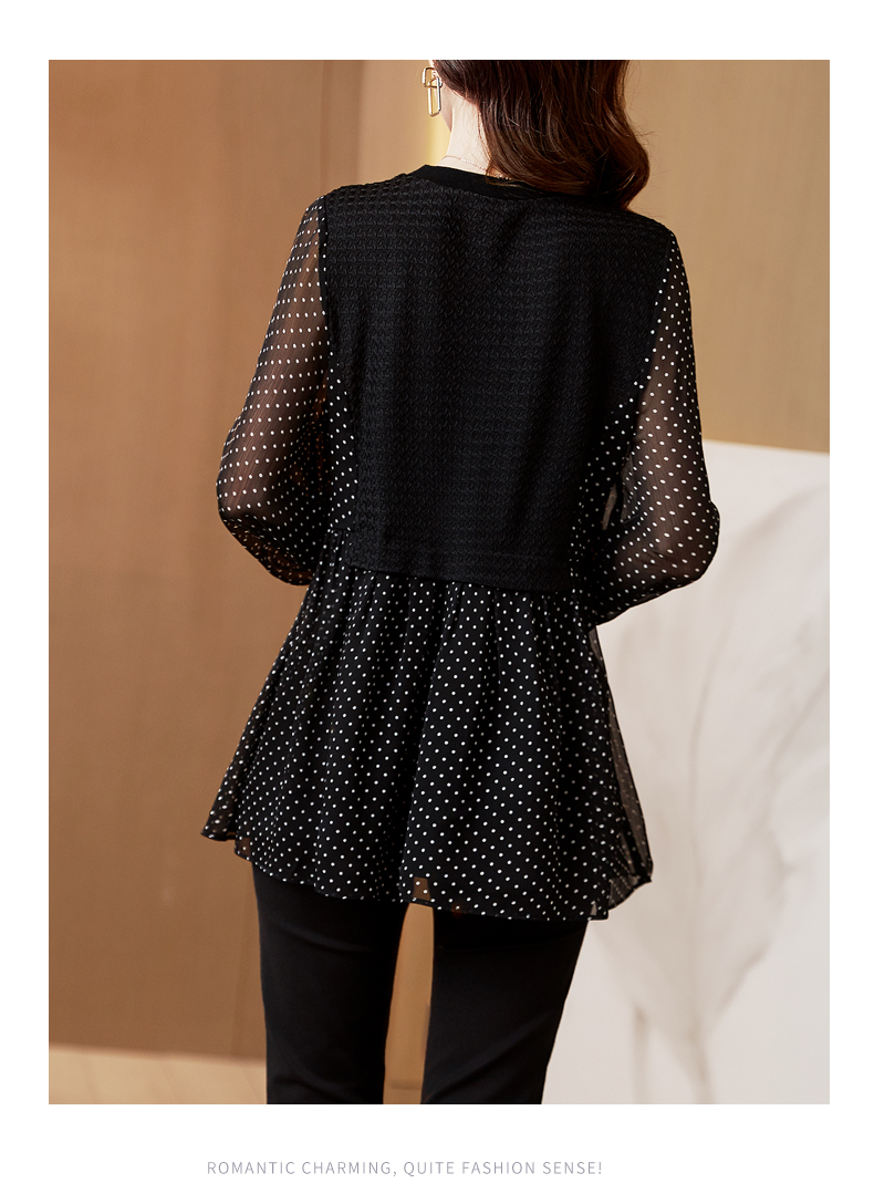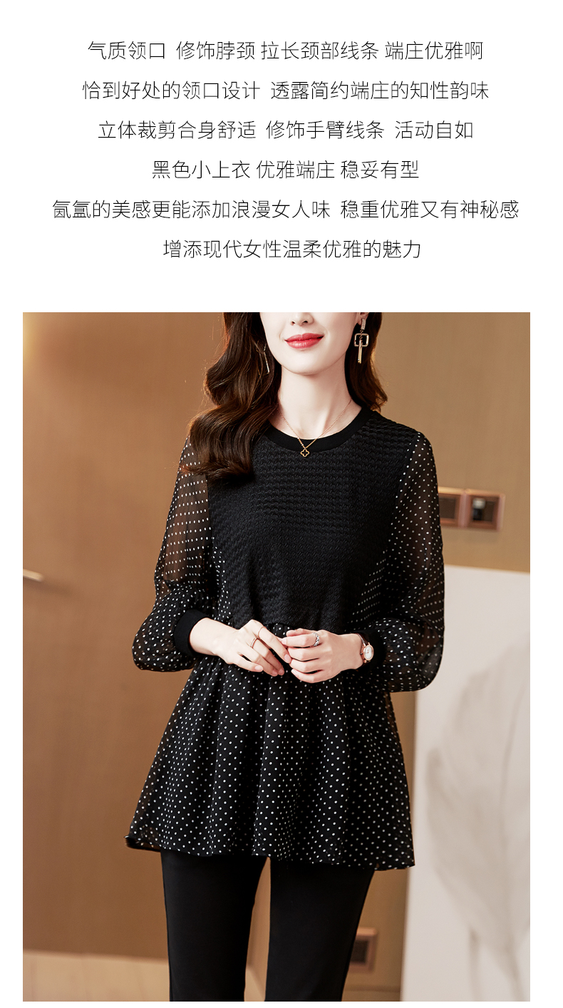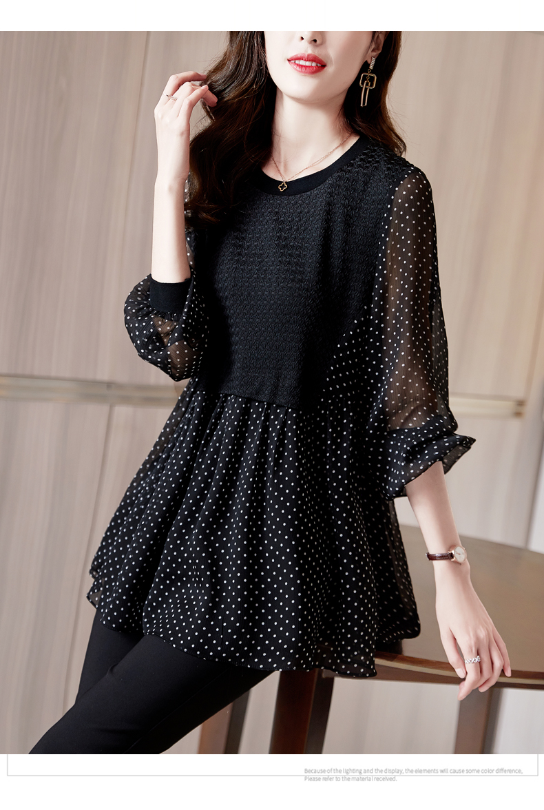 黑色波点雪纺上衣女小衫新款洋气显瘦大码气质打底衫 YYM8026
