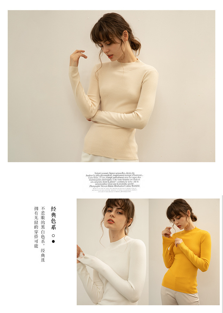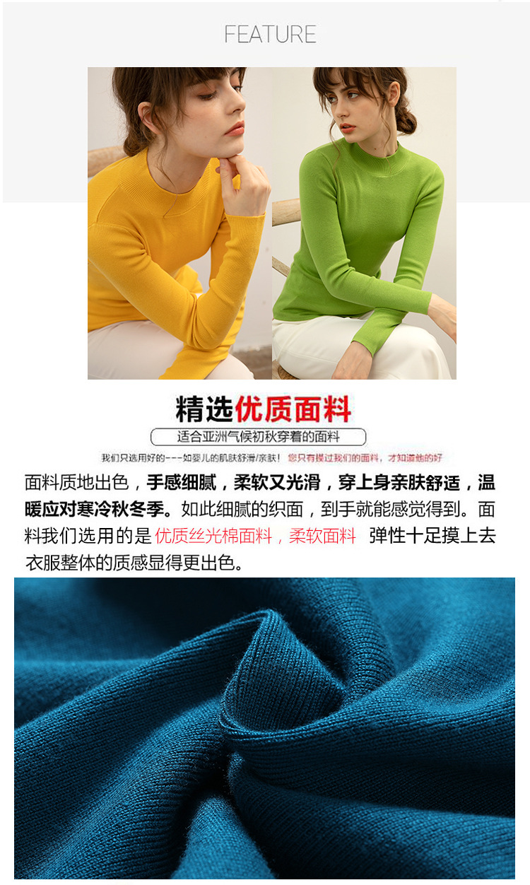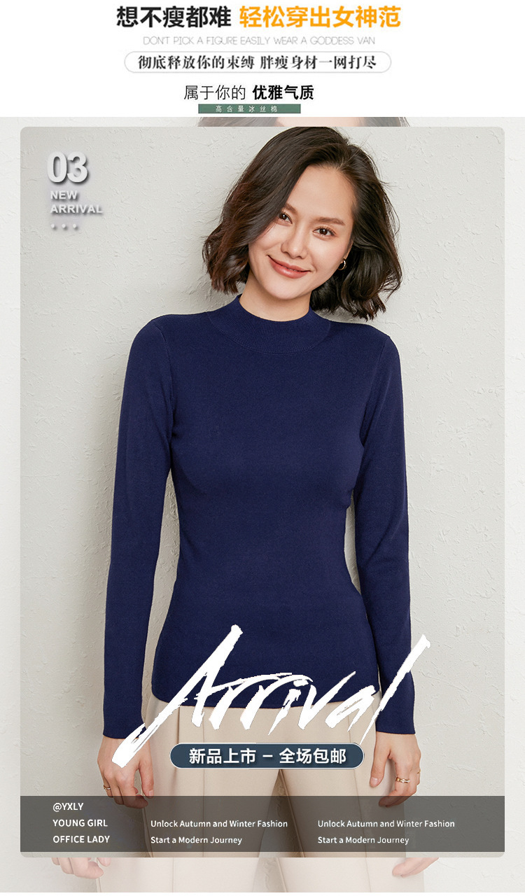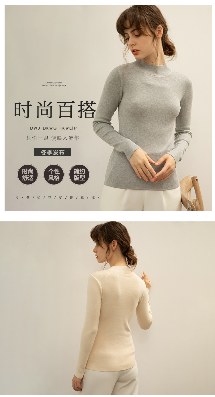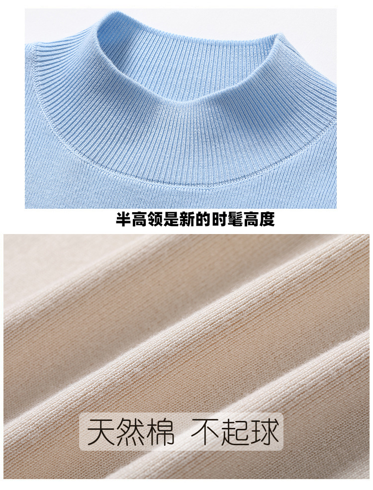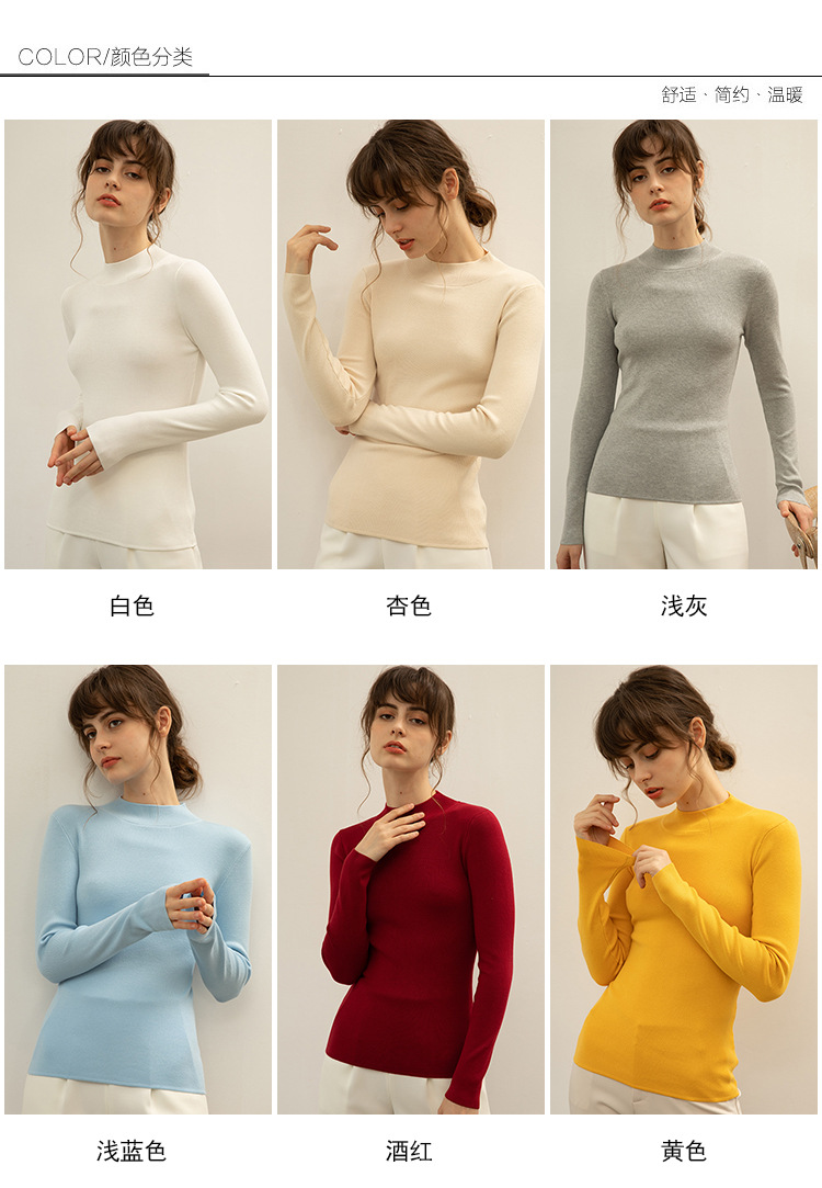 【全棉线洋气毛衣】秋冬款 半高领紧身针织衫 修身丝光棉长袖打底