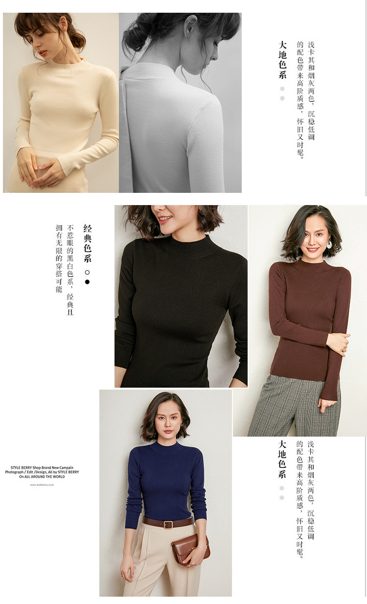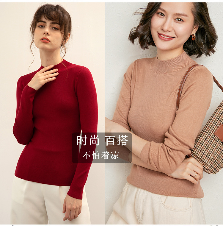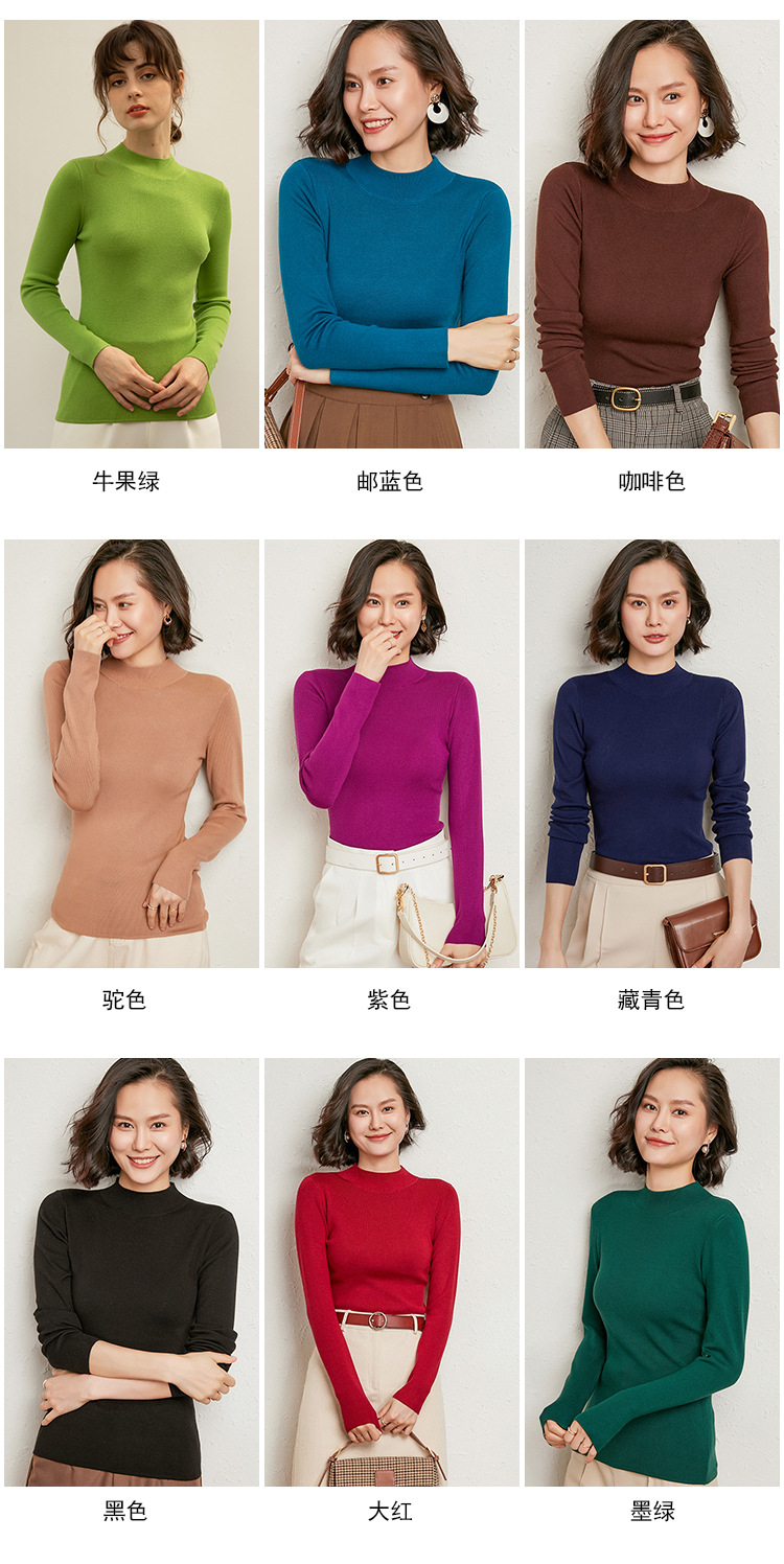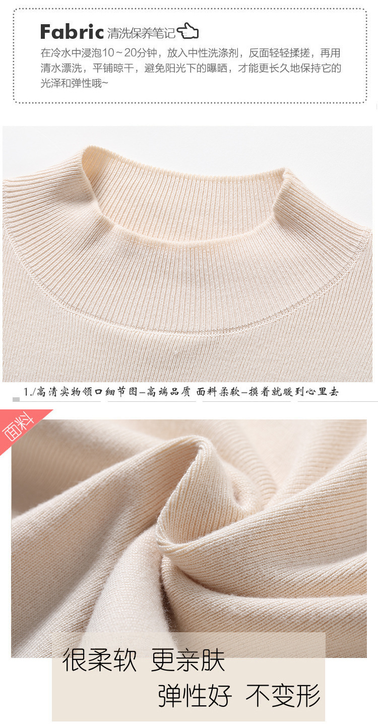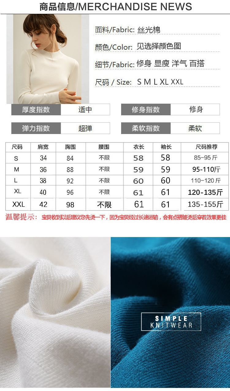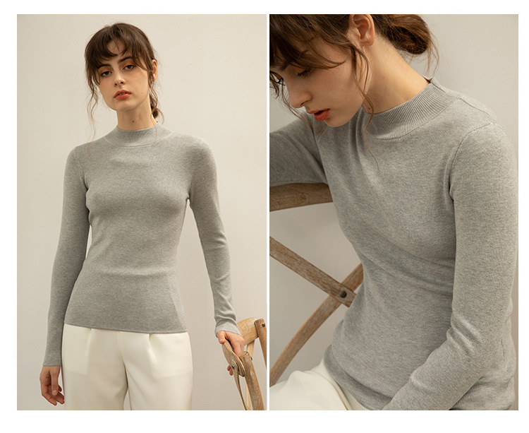【全棉线洋气毛衣】秋冬款 半高领紧身针织衫 修身丝光棉长袖打底