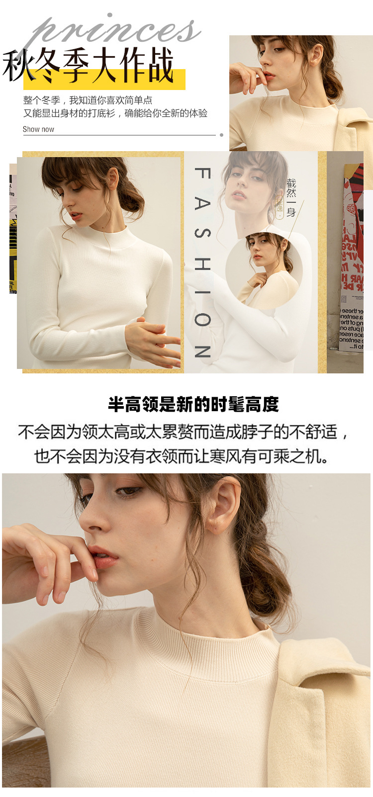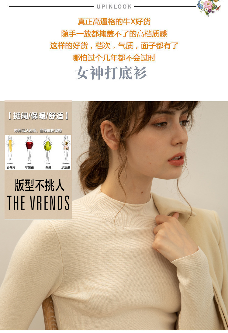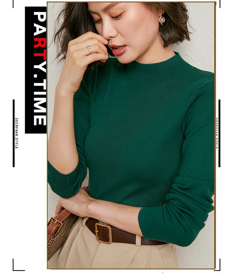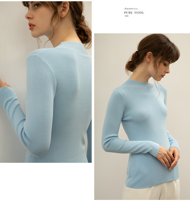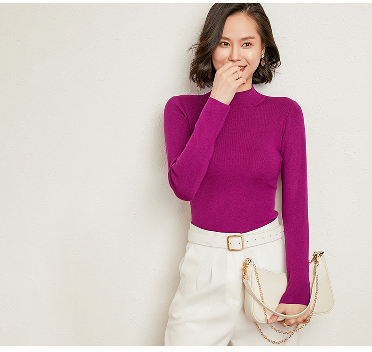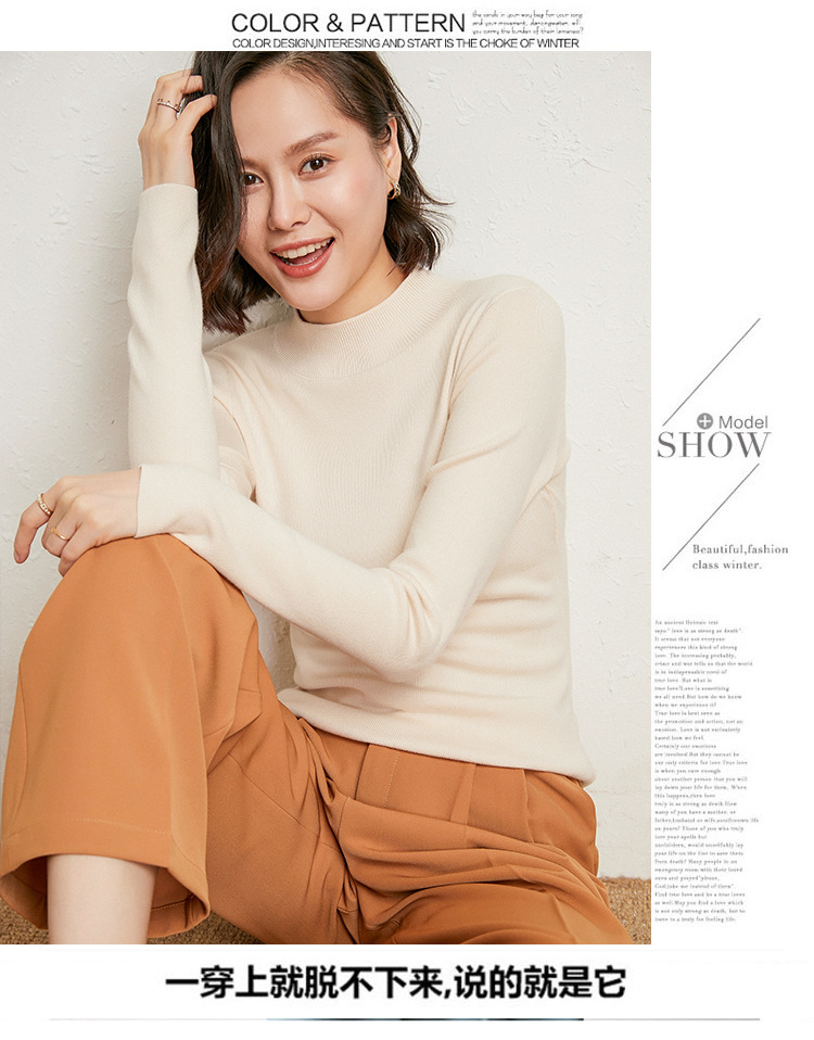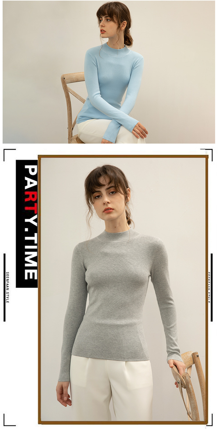 【全棉线洋气毛衣】秋冬款 半高领紧身针织衫 修身丝光棉长袖打底