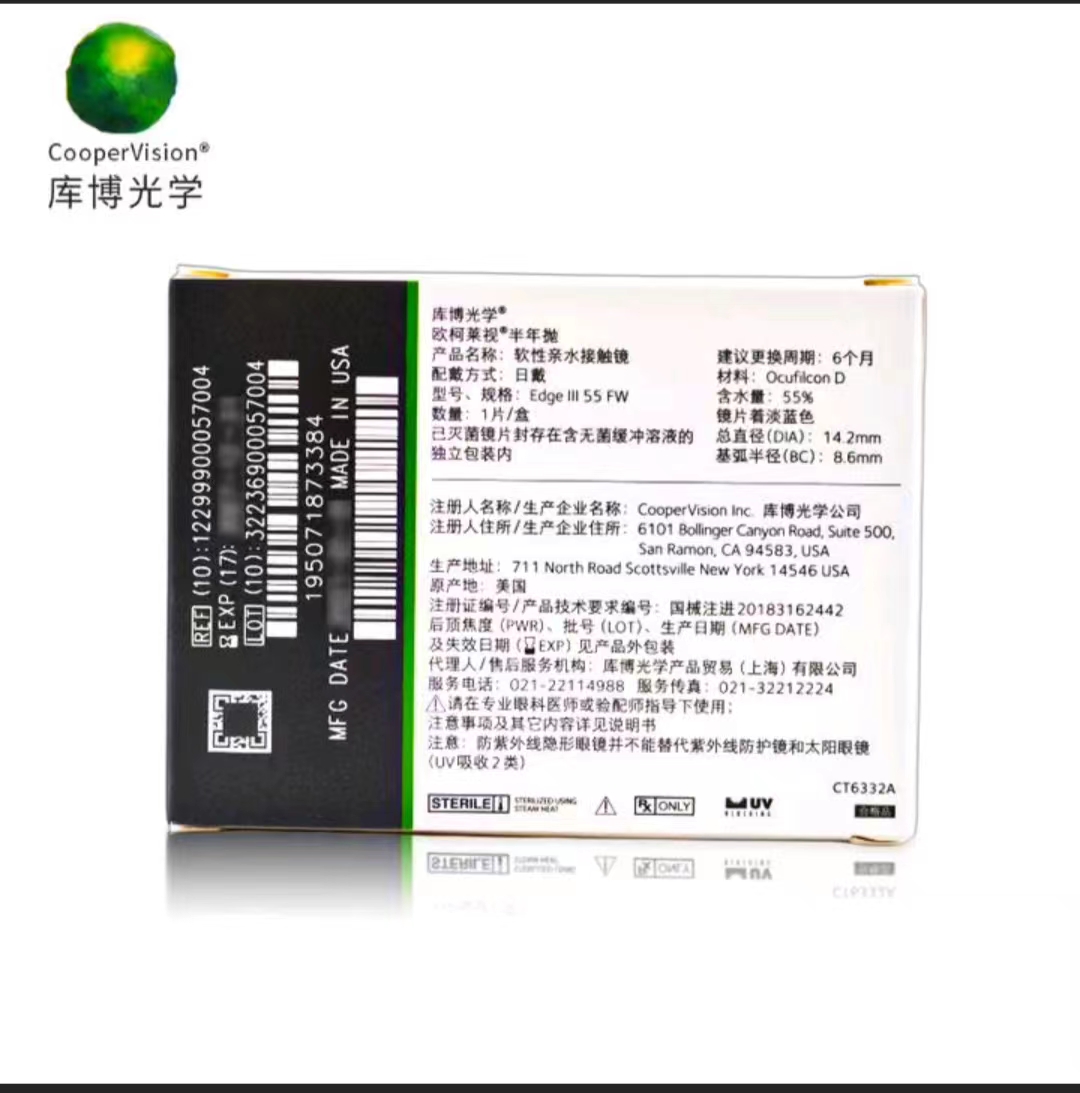 库博光学欧柯莱视半年抛透明片一片装