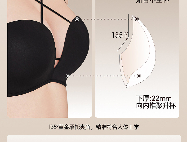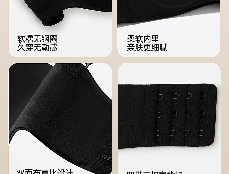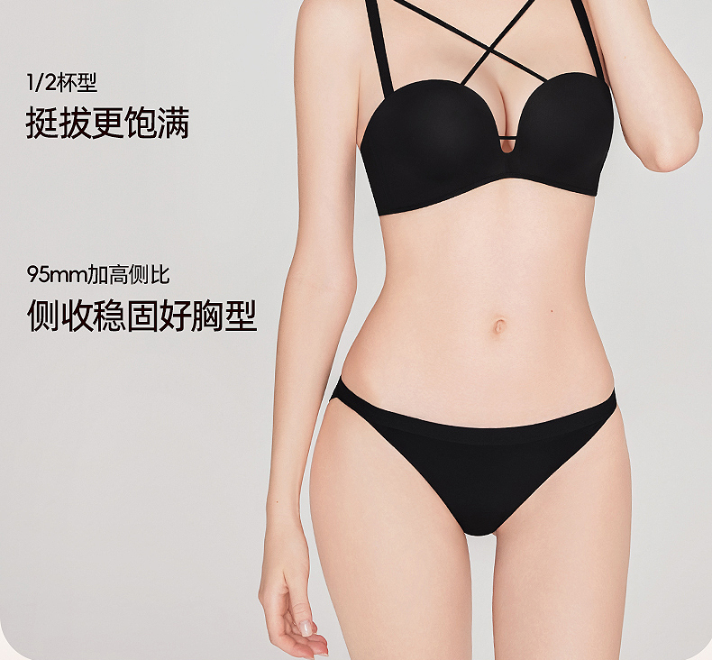 好奇蜜斯无痕内衣女小胸聚拢显大文胸罩套装夏无钢圈防下垂性感黑 温特