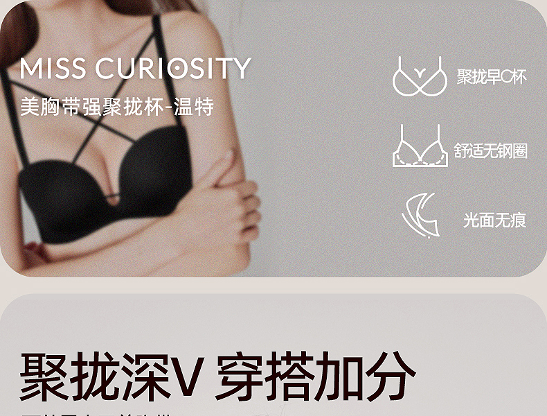 好奇蜜斯鱼骨胸衣大胸显小胸内衣女文胸罩套装纯欲26春夏薄可外穿-阿加莎