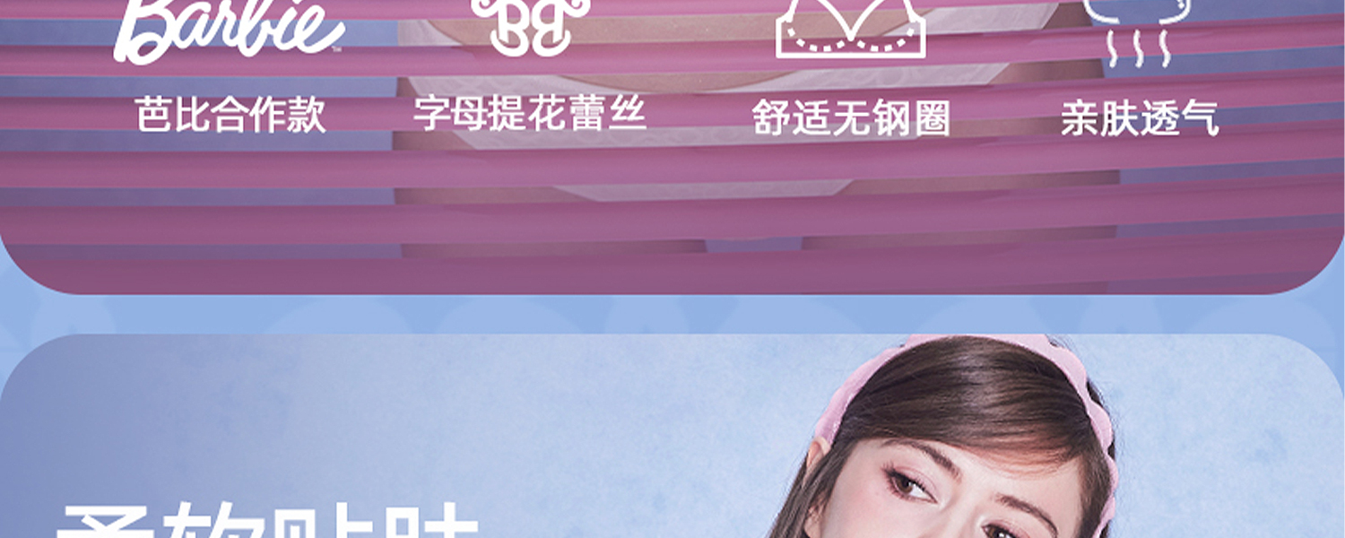 好奇蜜斯芭比联名无痕内衣女小胸无钢圈薄背心式文胸罩套装蕾丝白 泰莎