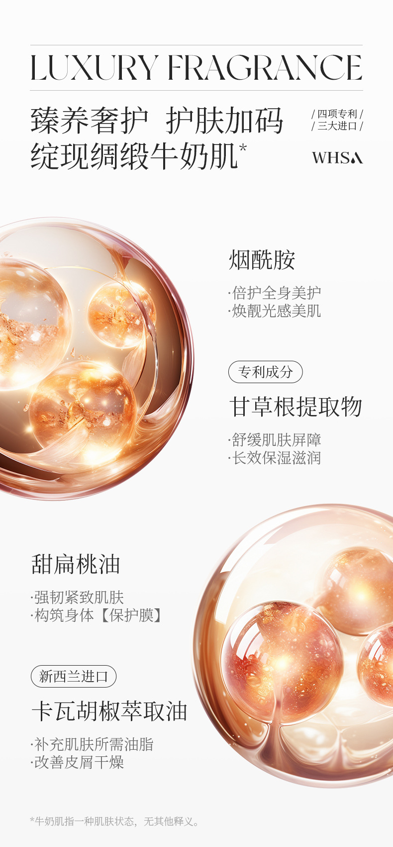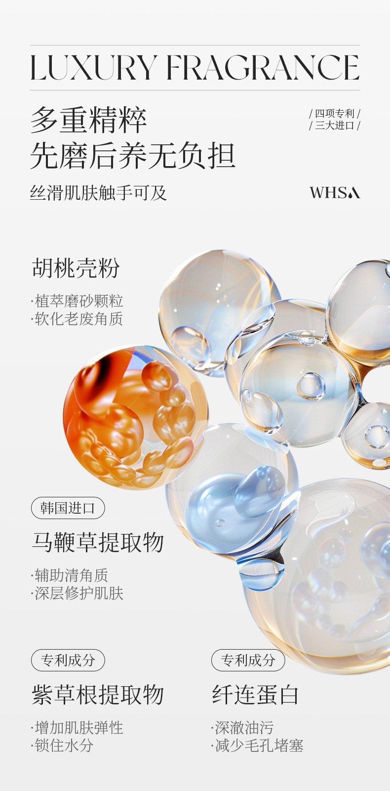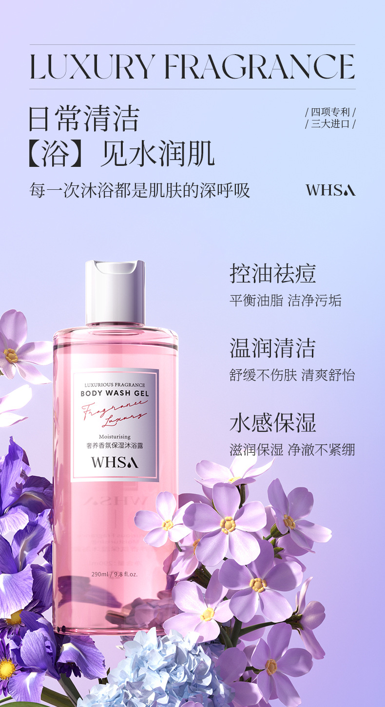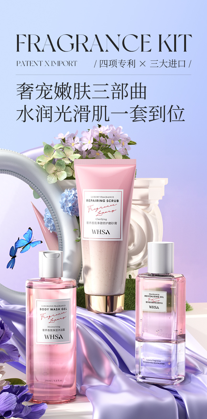 【柔润放松!滑亮美背】Whsa奢享香氛身体套盒 洗澡用沐浴露磨砂膏身体去角质家庭套装。xb