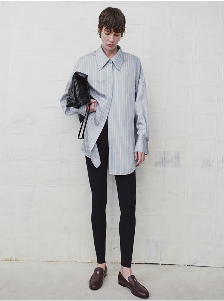 HIDEMI本期必入拉链褶皱廓形衬衫 黑色/白色