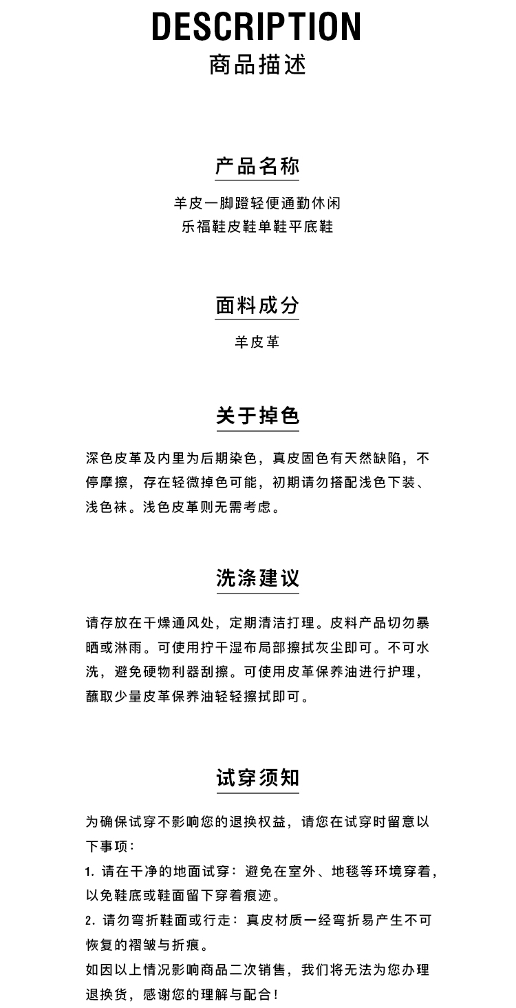 HIDEMI 羊皮一脚蹬轻便通勤休闲乐福鞋皮鞋单鞋平底鞋