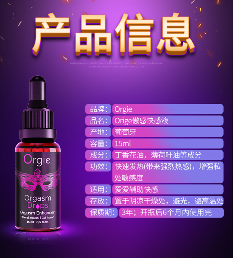 Orgie女性高潮液15ml人体润滑液油剂私处成人房事用品增强欲望免洗可舔