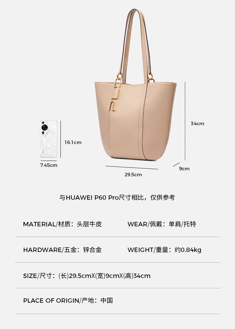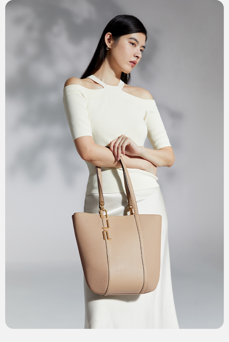 保兰德PLD东方雅奢新款荔枝纹宠爱单肩托特包头层牛皮通勤必备女包
