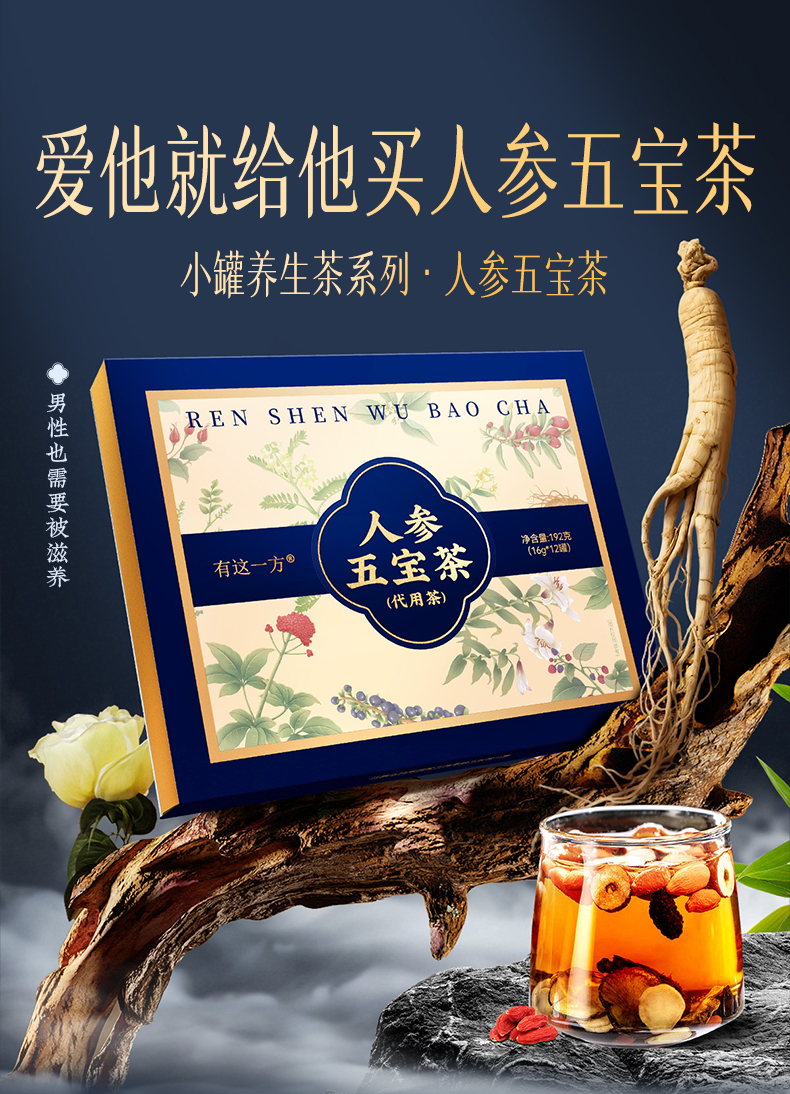 【官方正品】云南白药有这一方人参五宝茶养生茶充氮小罐装人参黄精玛咖桑椹枸杞滋补男士