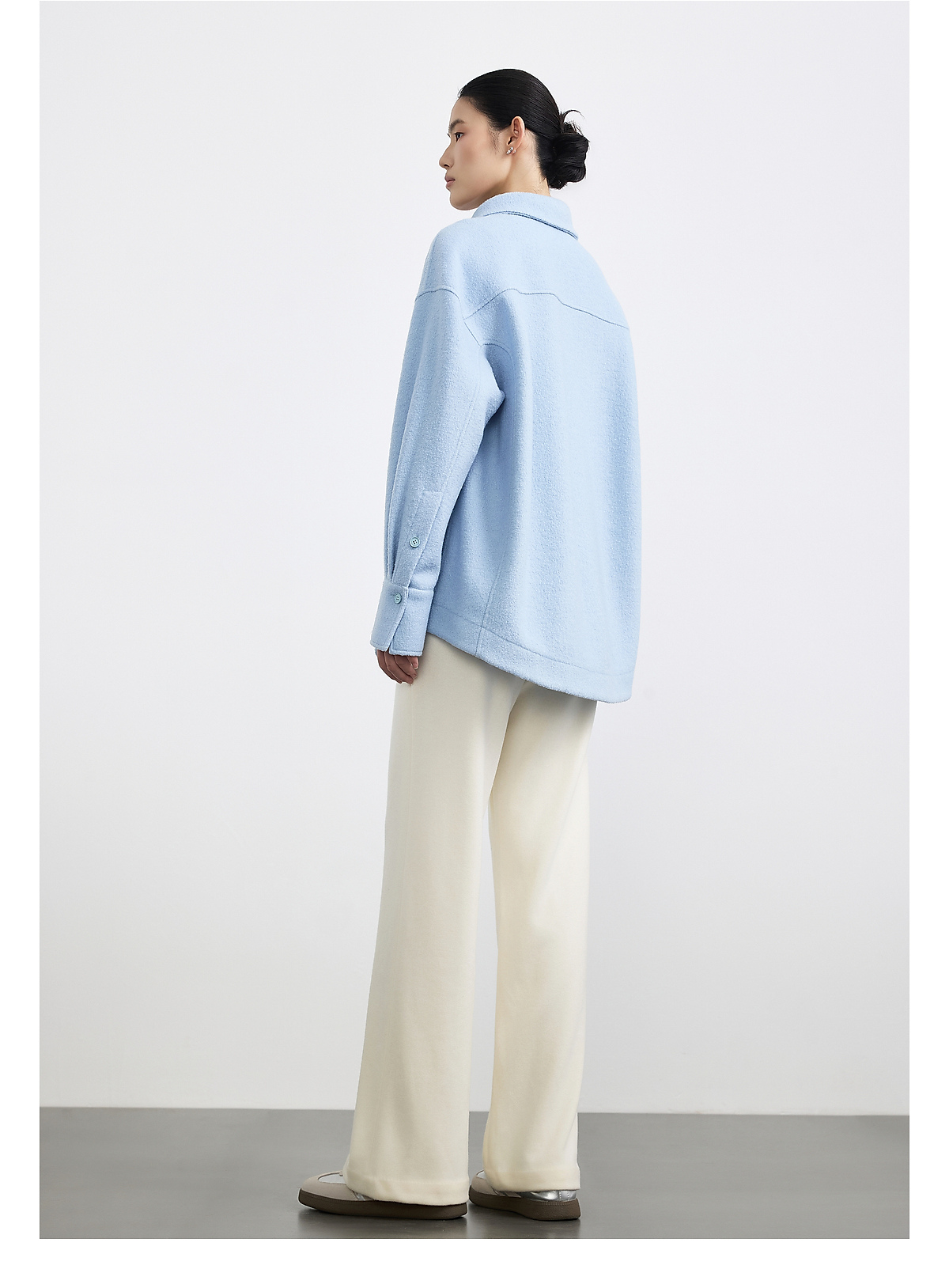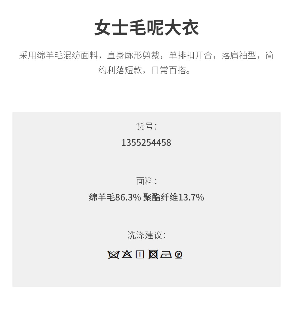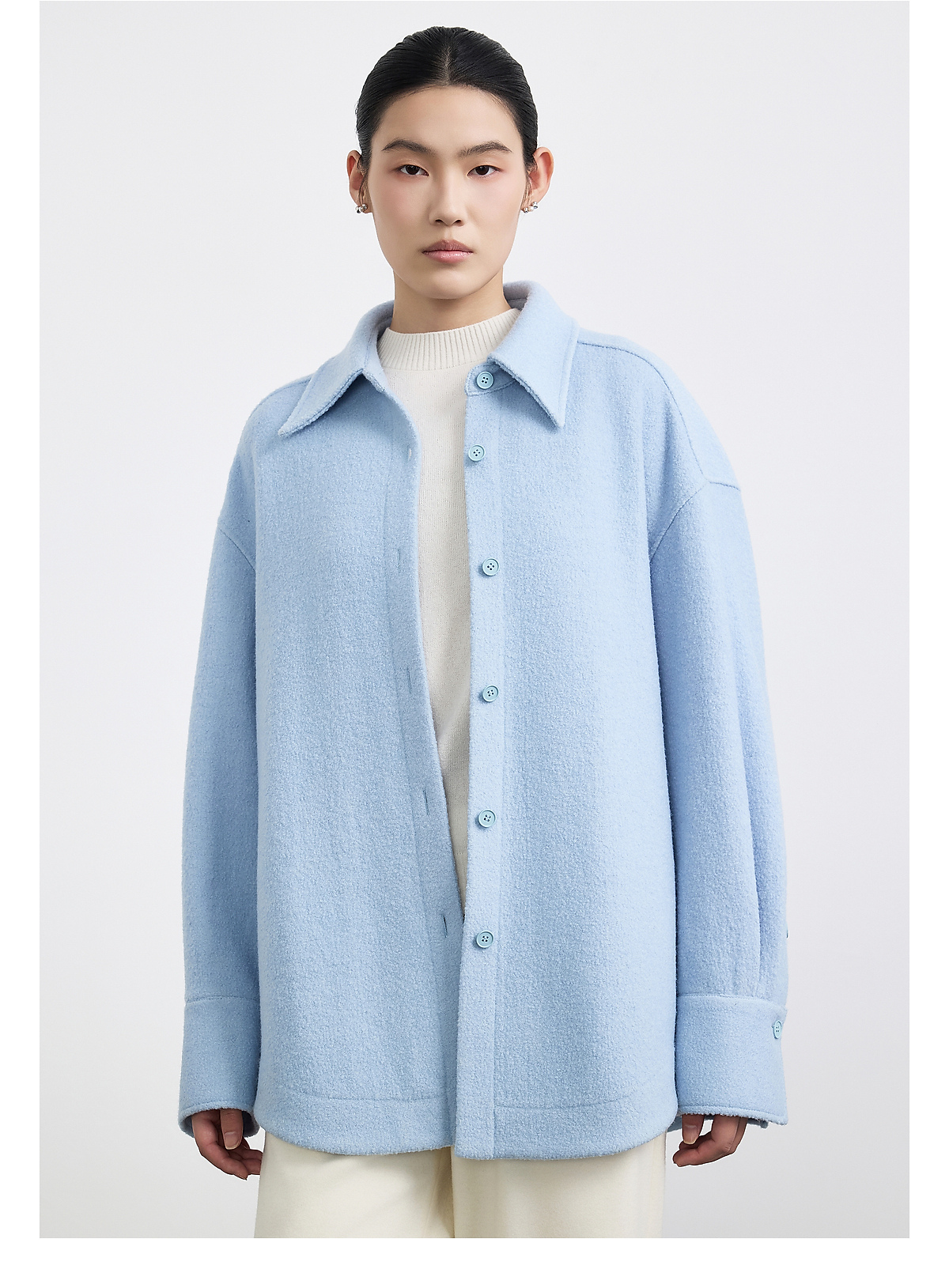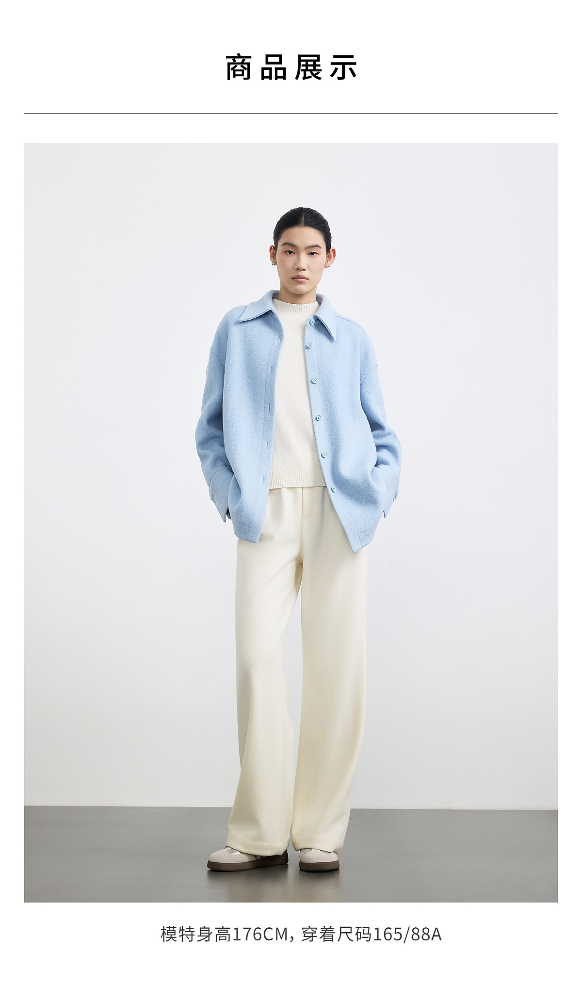商场同款PURE TOUCH女装25秋冬新款短毛呢外套宽松落肩翻领短大衣