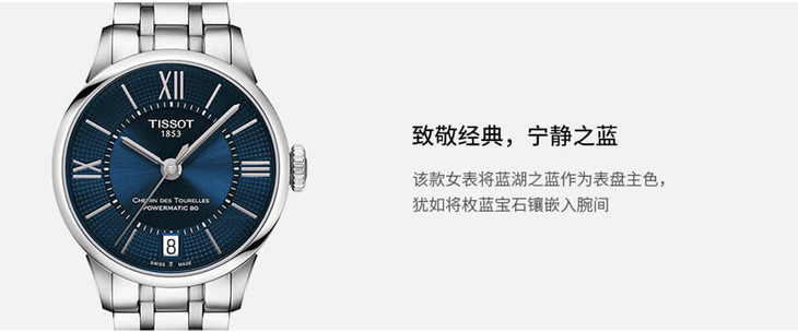 镜面 材质 | 蓝宝石水晶玻璃 | 表盘 | 精钢表壳 蓝色表盘 大三针 日期显示 罗马数字与条字刻度时标 透底 |
