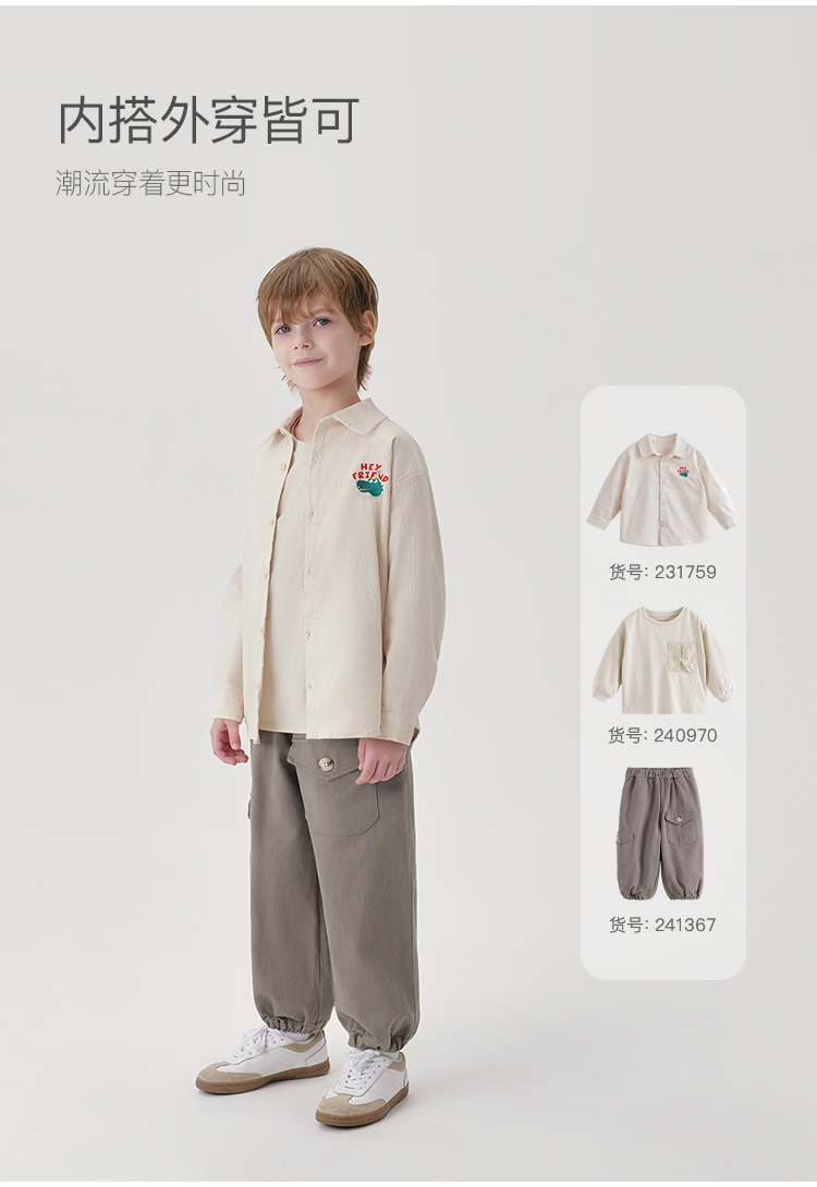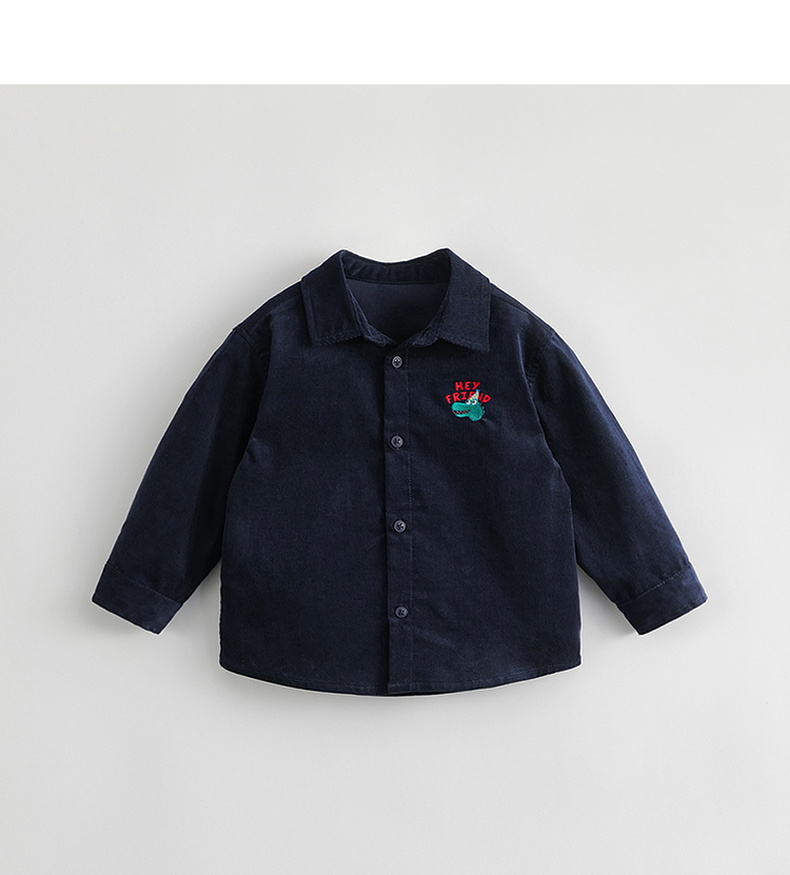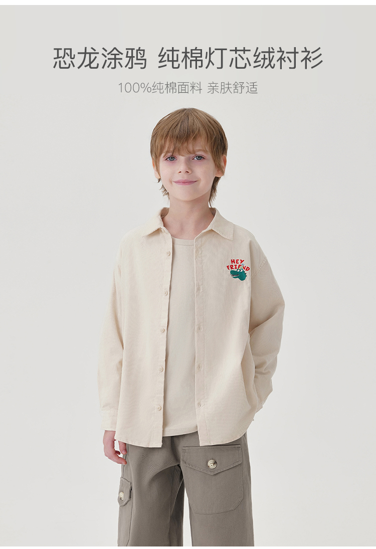 马克珍妮宝宝秋装新款男童恐龙涂鸦全棉灯芯绒衬衫儿童衬衣231759