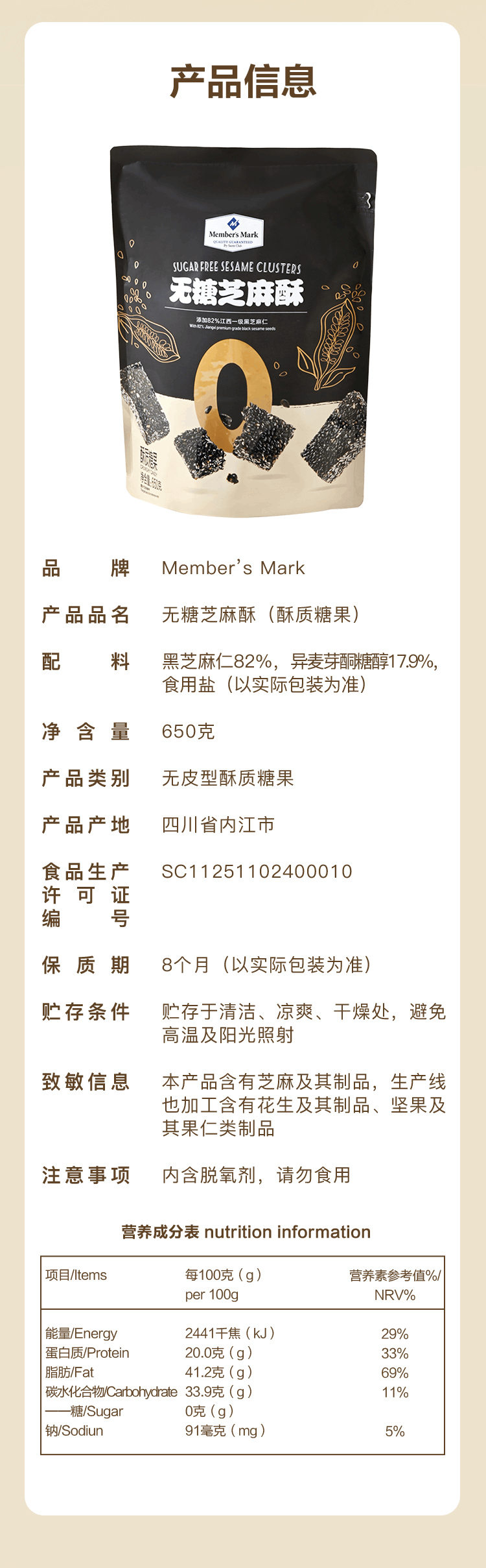 【山姆限定】无糖芝麻酥 约10g/小袋装