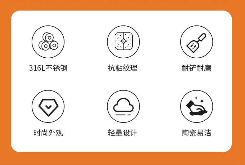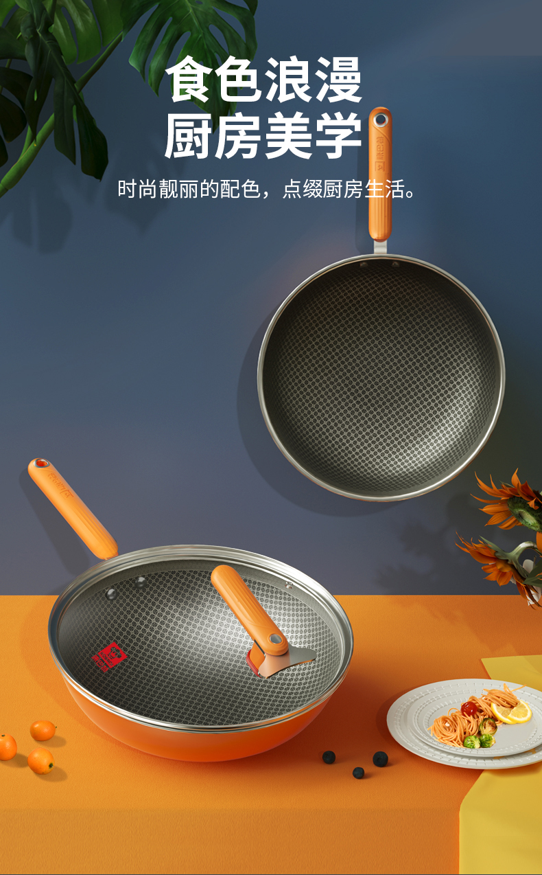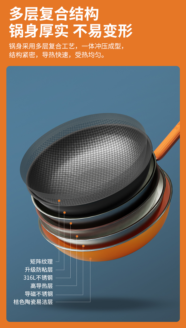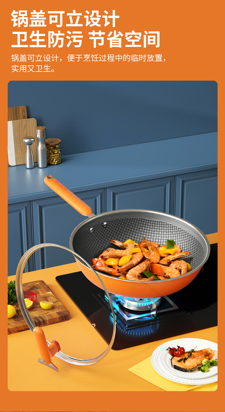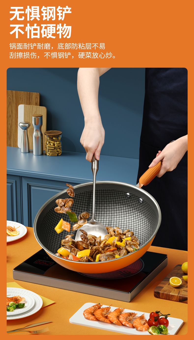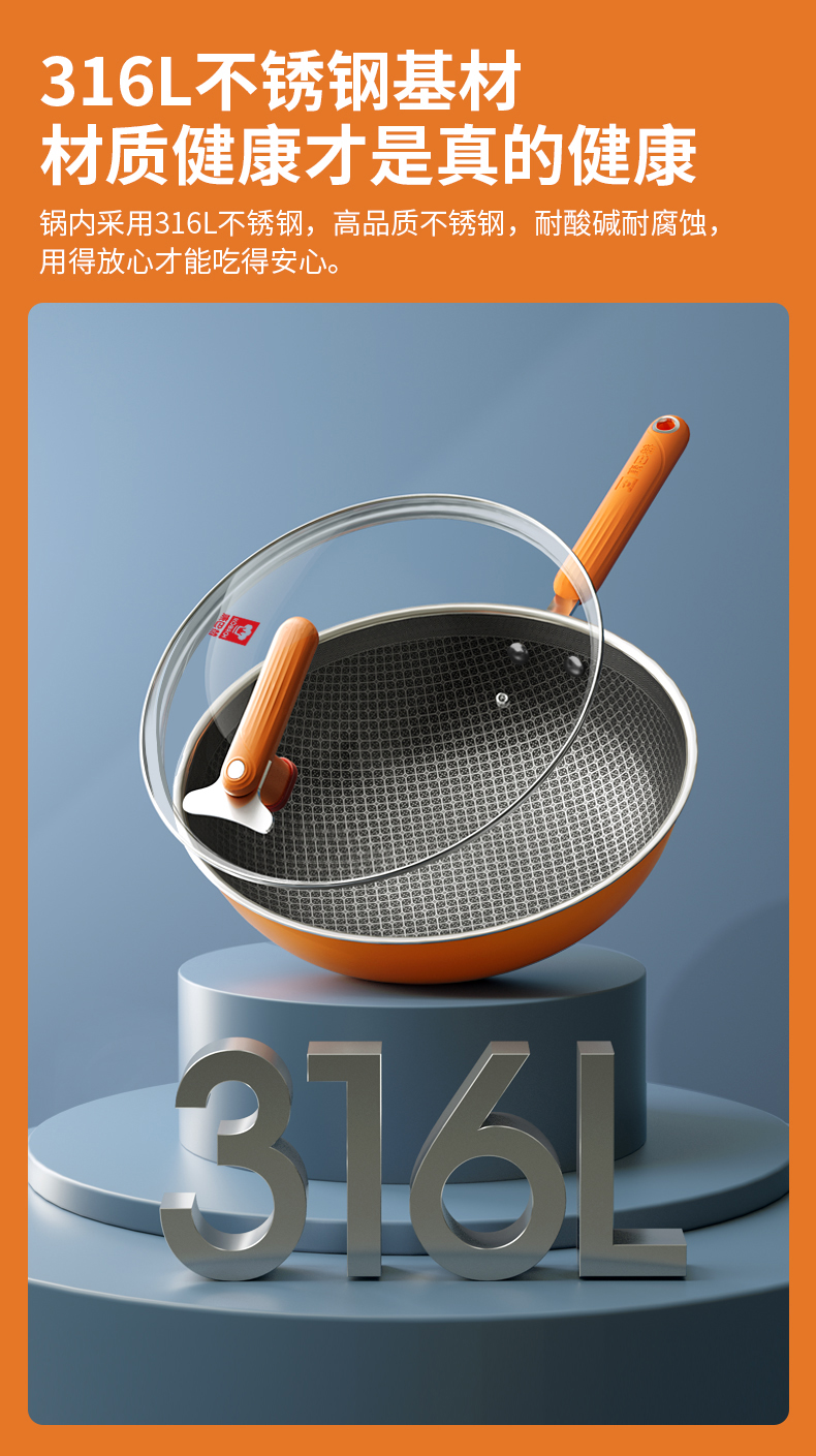 康巴赫大桔蜂窝炒锅不粘锅316L不锈钢32cm