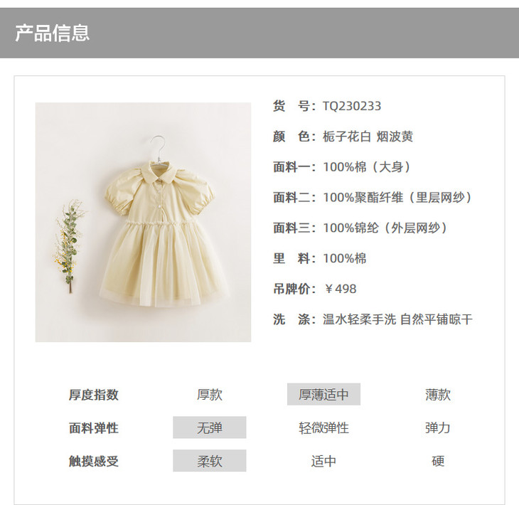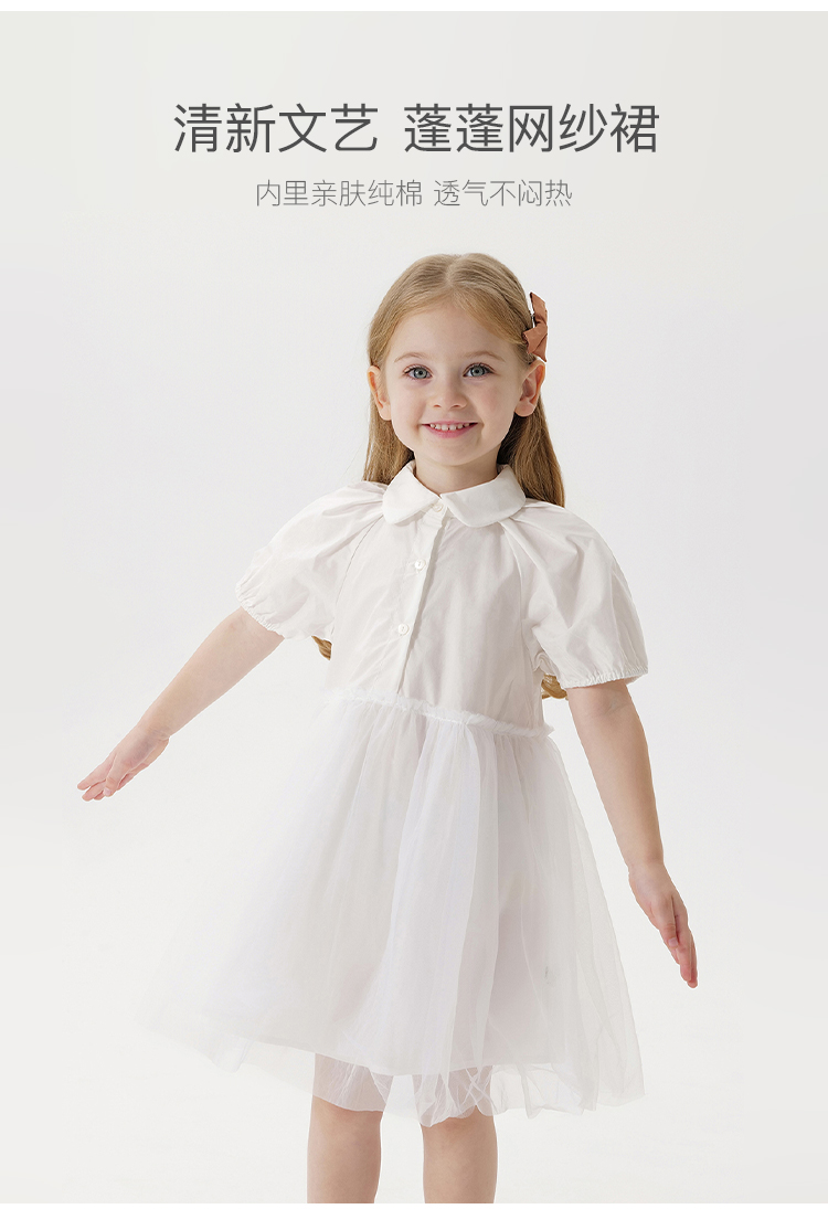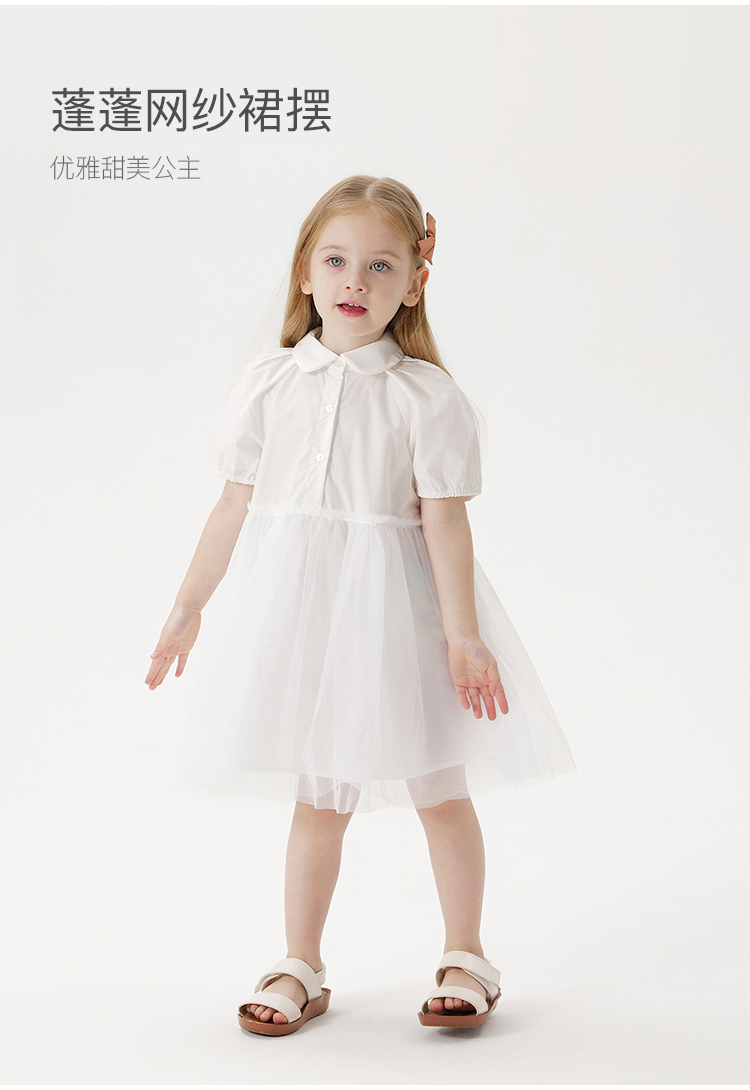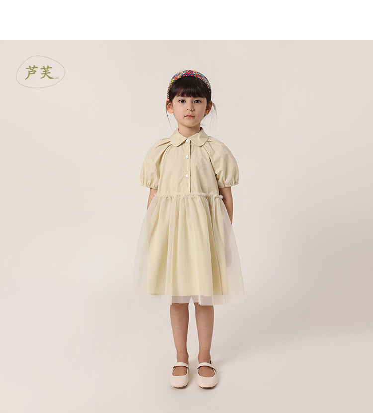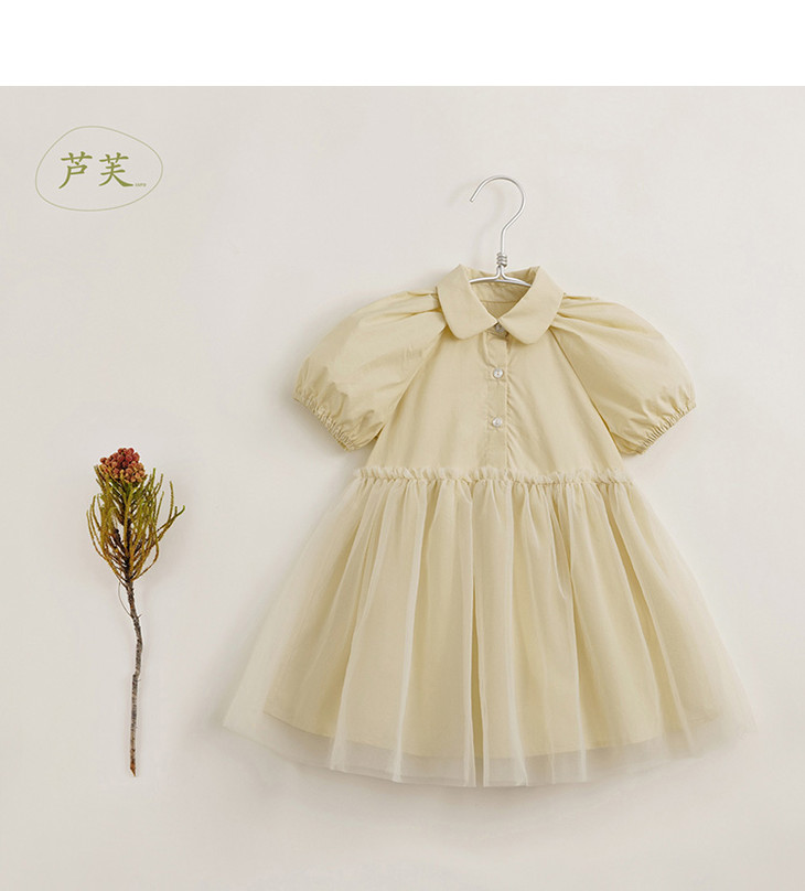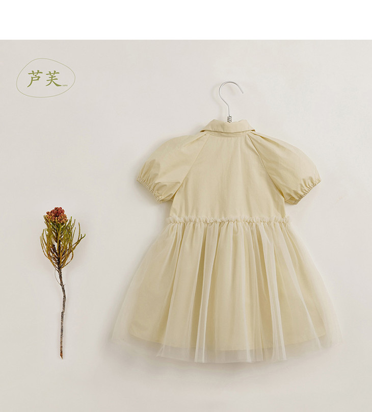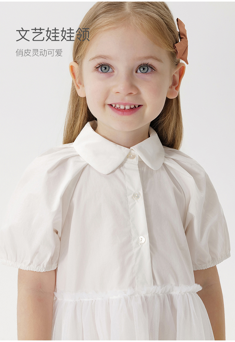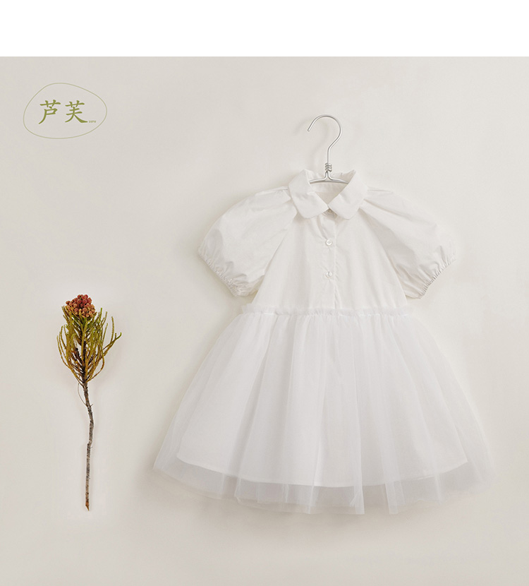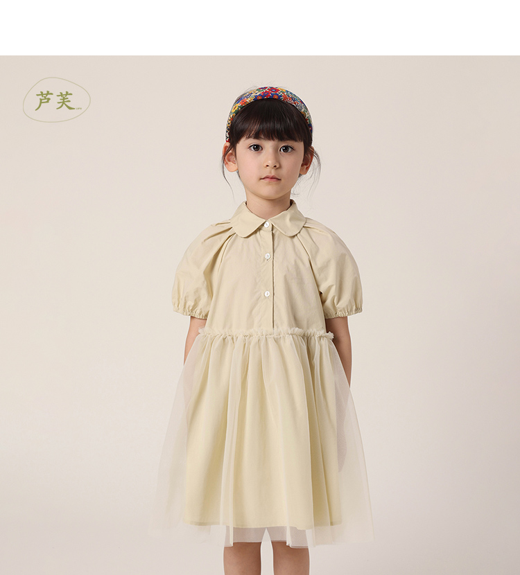 【马克珍妮 芦芙】夏装新款 女童泡泡袖网纱拼接连衣裙230233