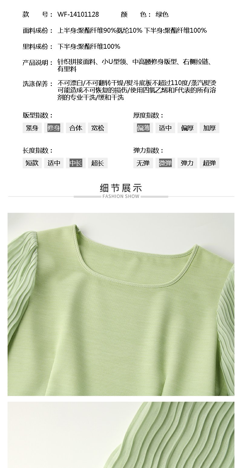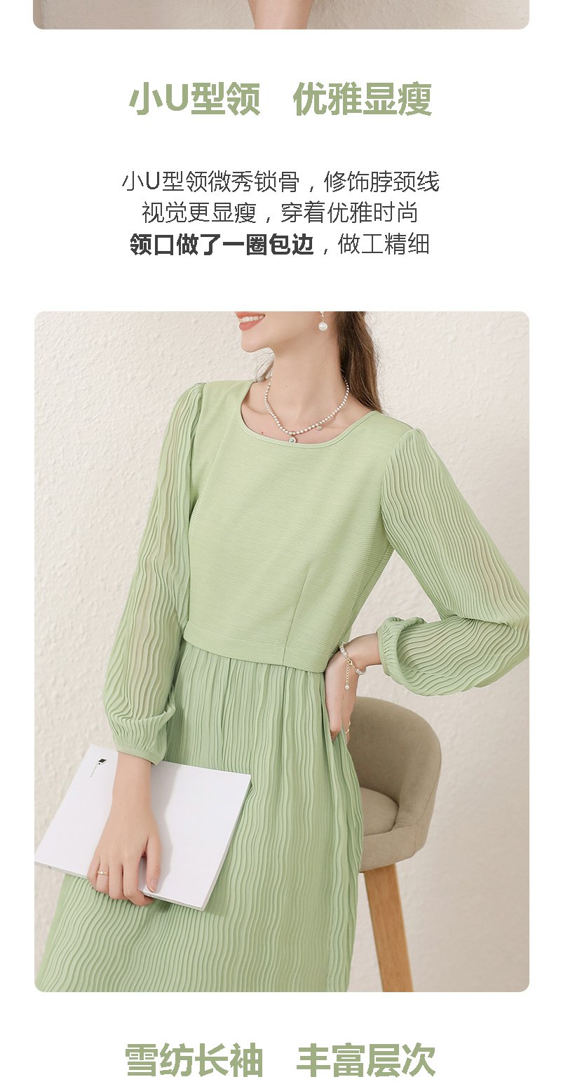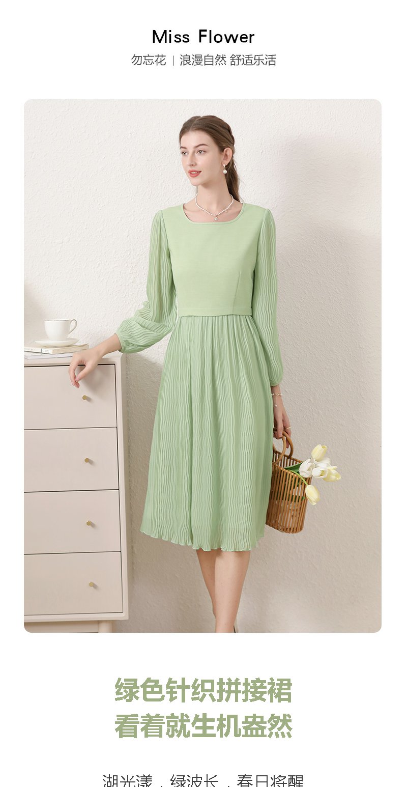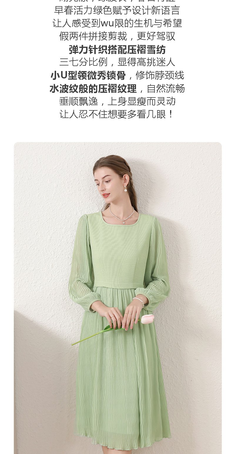 绿色法式针织拼接连衣裙春季新款假两件内搭打底裙子
