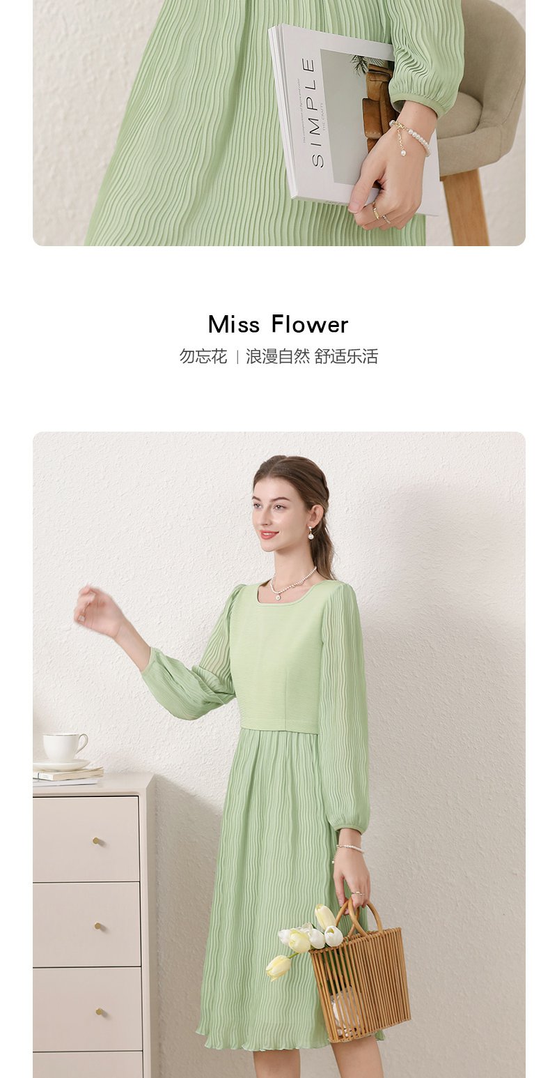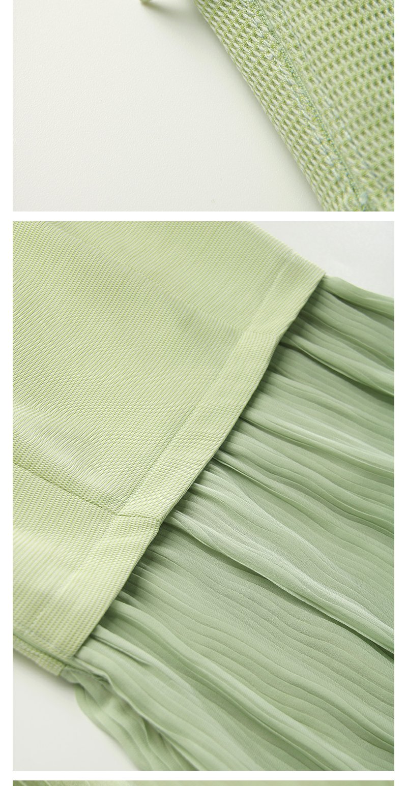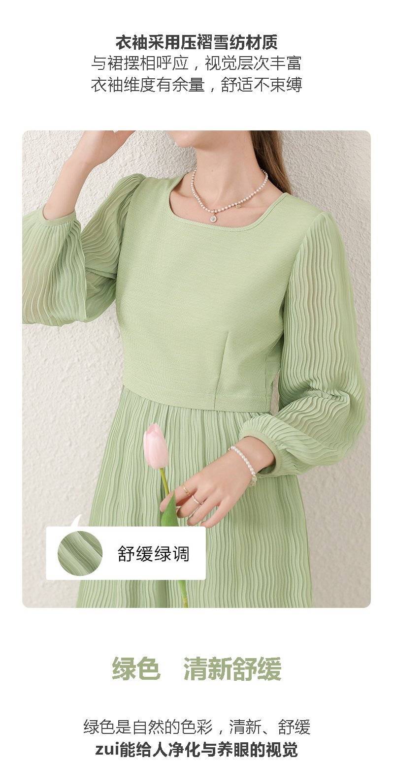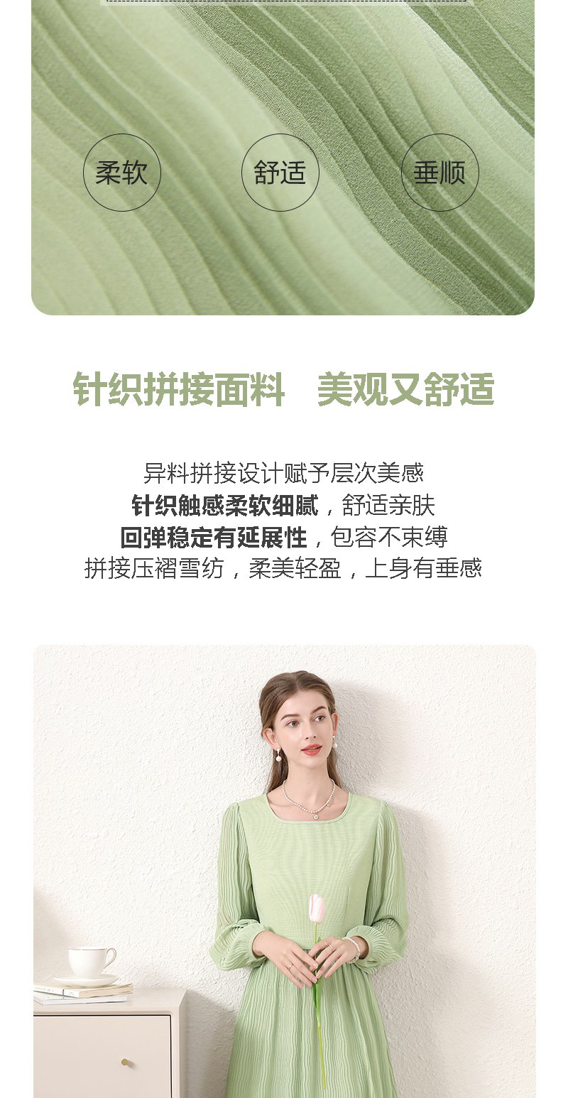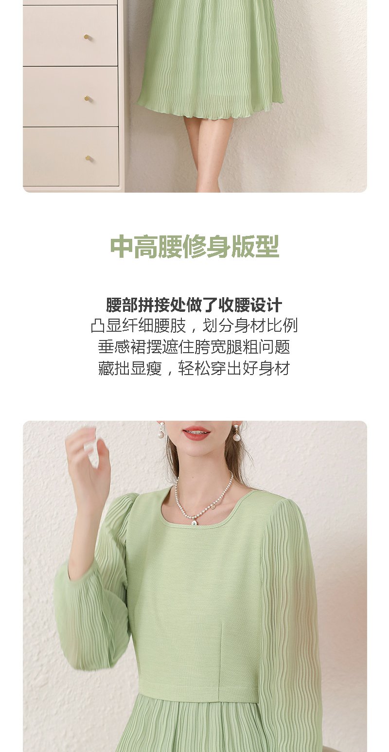 绿色法式针织拼接连衣裙春季新款假两件内搭打底裙子