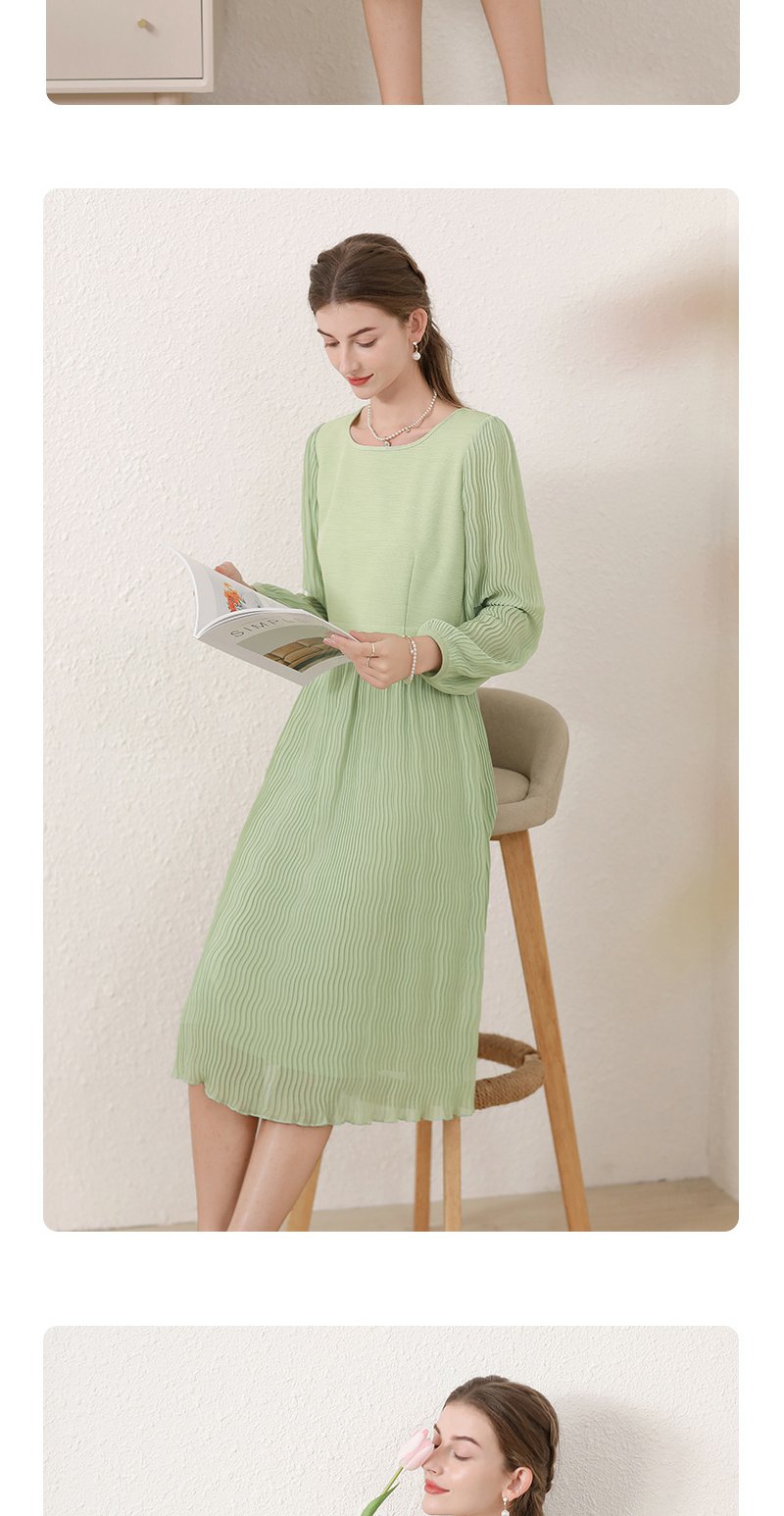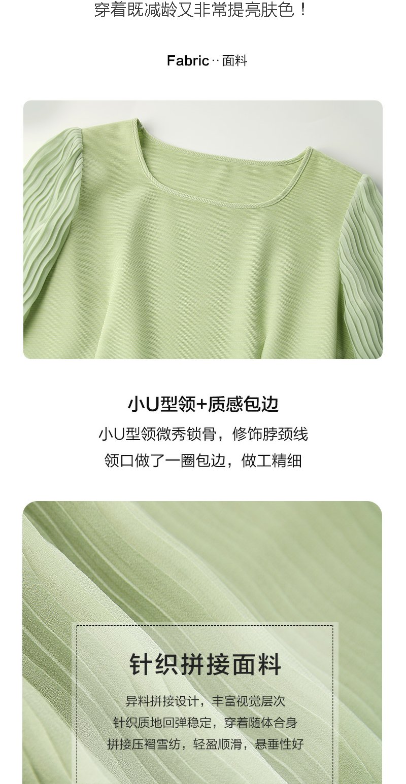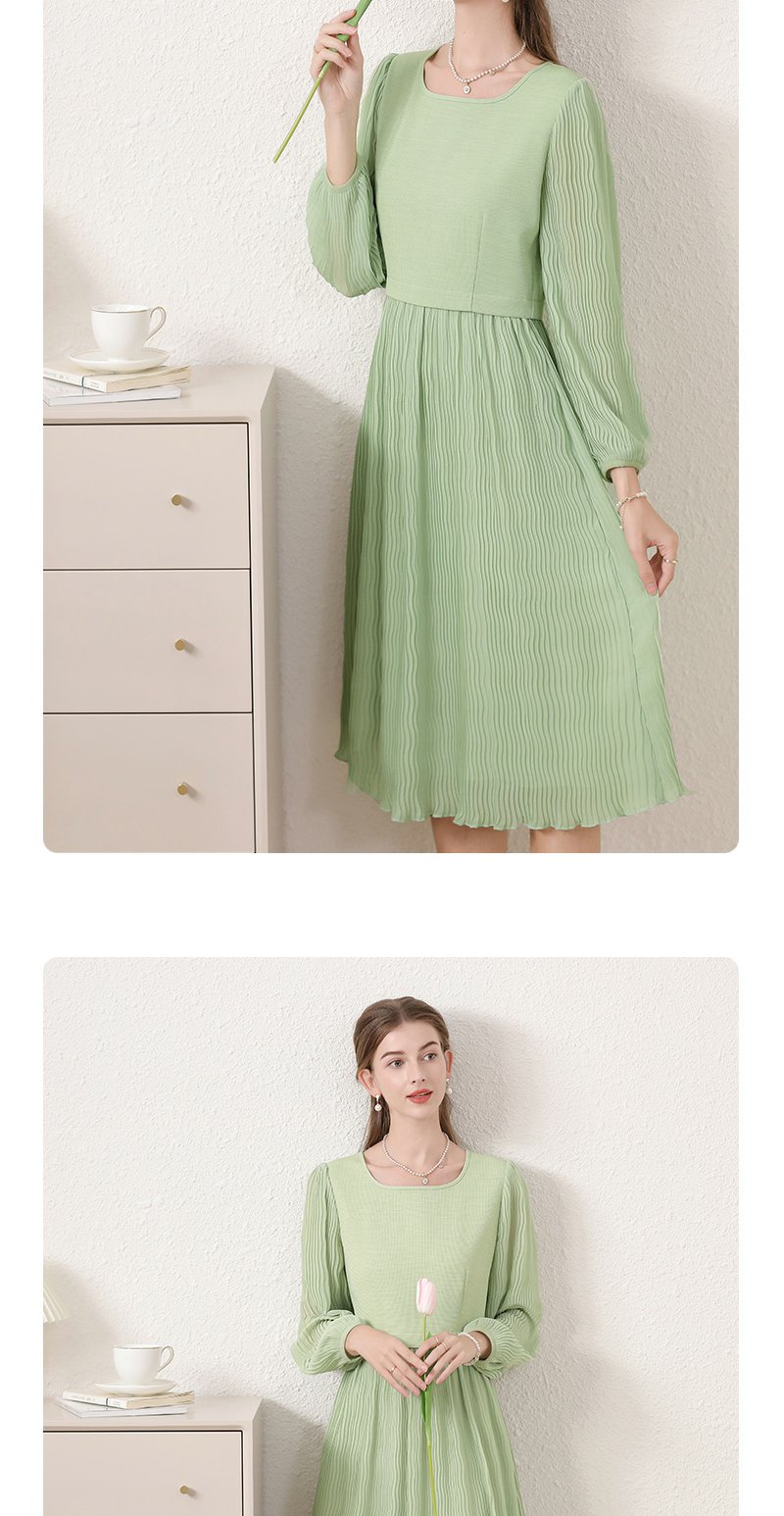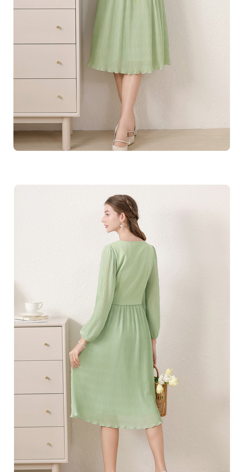 绿色法式针织拼接连衣裙春季新款假两件内搭打底裙子