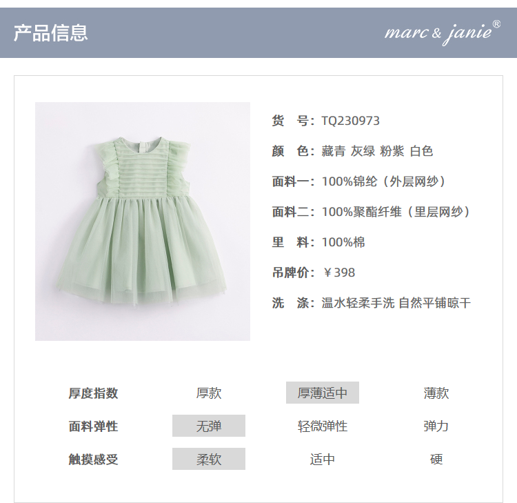 马克珍妮新款夏装 女童收腰网纱蓬蓬连衣裙230973