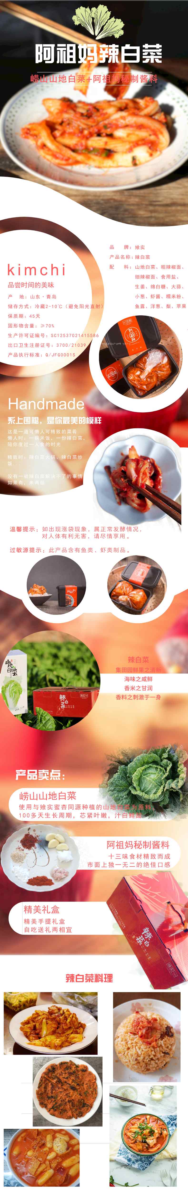 【产品配料】山地白菜、粗辣椒面、细辣椒面、食用盐、生姜、绵白糖、大蒜、小葱、虾酱、糯米粉、鱼露、洋葱、梨、苹果