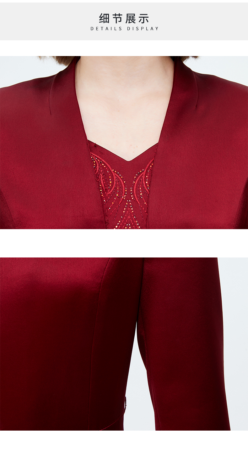 成熟、稳重、高贵典雅、大方得体 融合东方文化的含蓄和法国的浪漫 将创意的艺术性与消费需求相结合 为自信女性塑造高品质场合服装