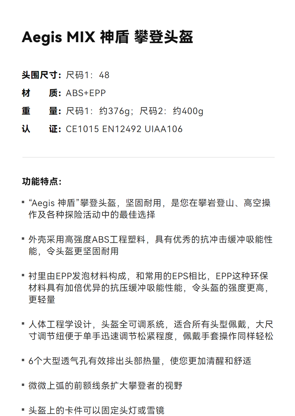 KAILAS凯乐石 户外运动 Aegis MIX 神盾 攀登头盔 EK100B【Z】