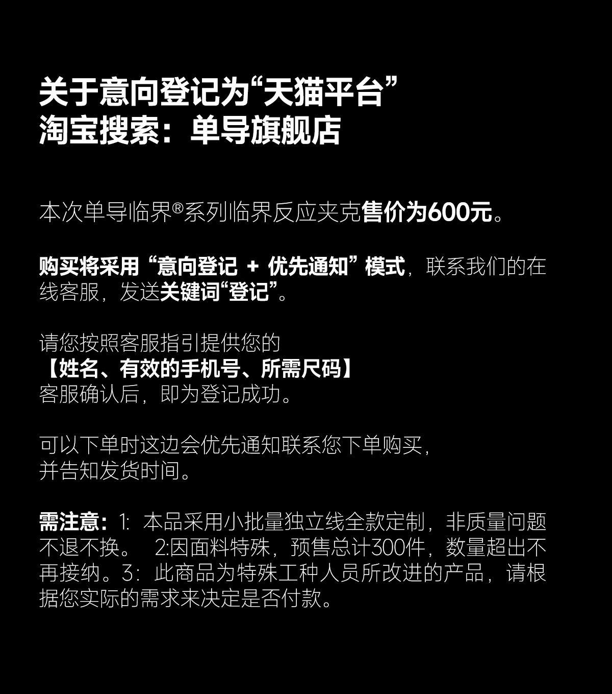 单导临界系列临界反应夹克独立线全款预售制非质量问题不退不换详情咨询客服