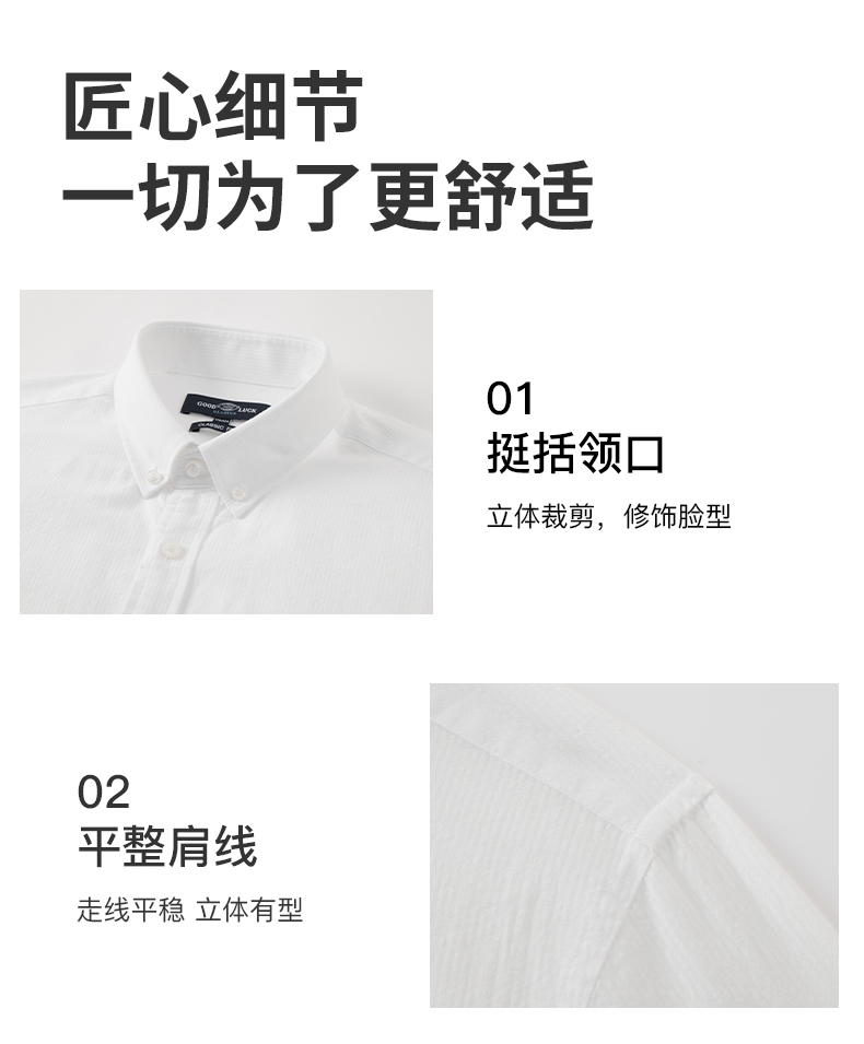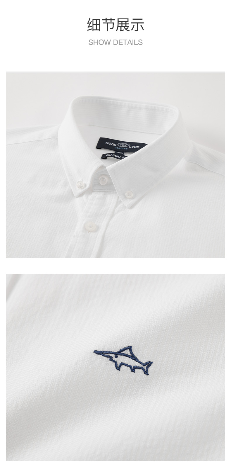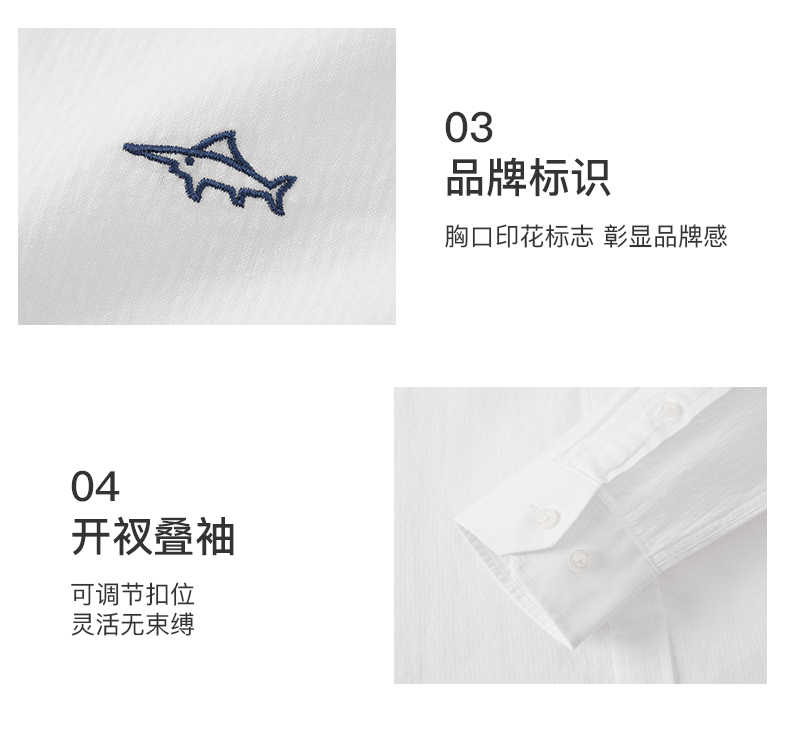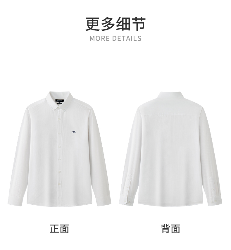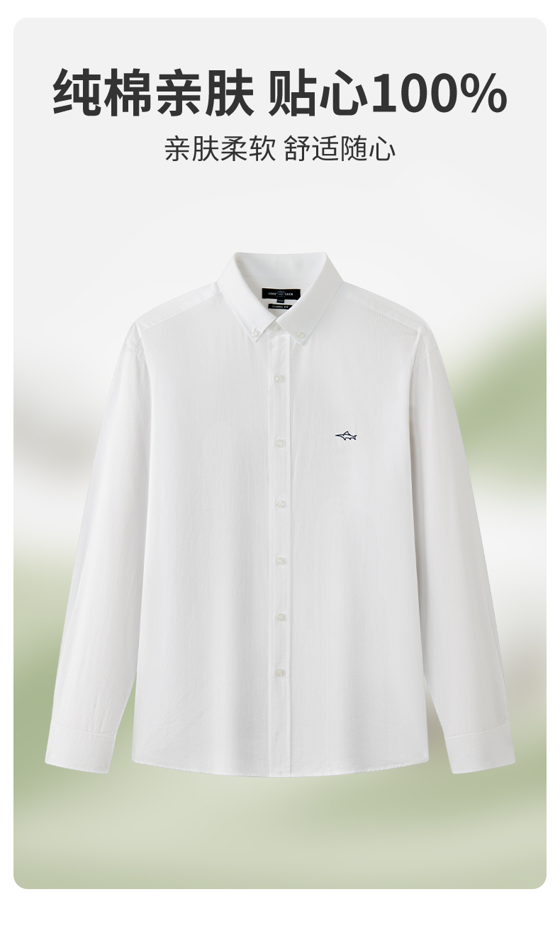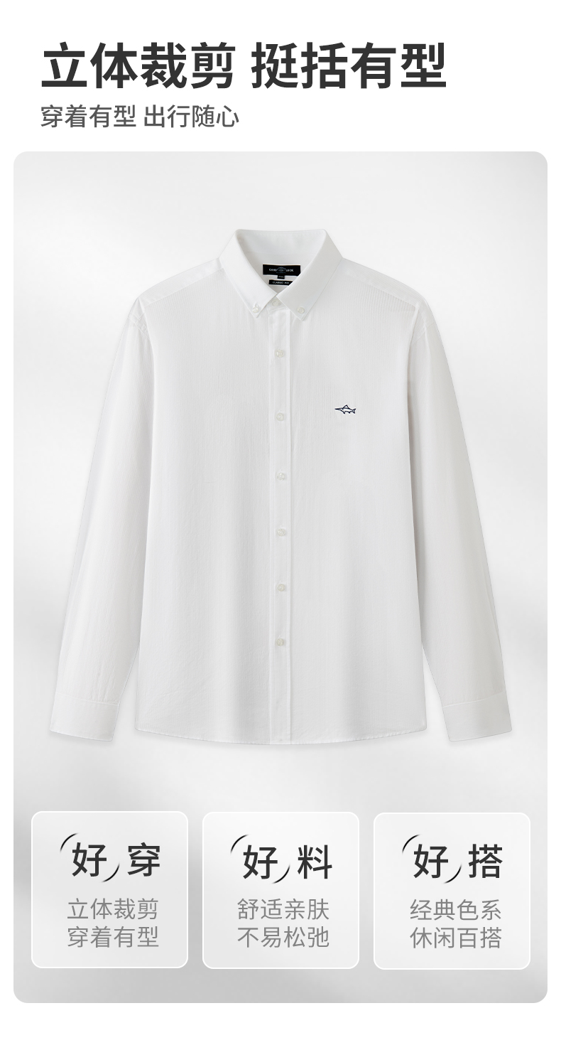 【纯棉】德鲨男装白色长袖衬衫2026春季新款休闲上衣服男商务衬衣