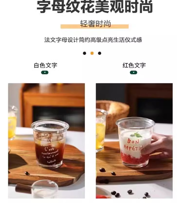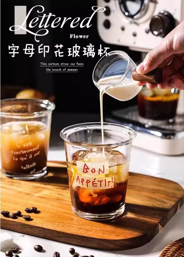 玻璃咖啡杯 冰美式杯子家用水杯高颜值英文字母拿铁牛奶杯饮料酒杯3.198