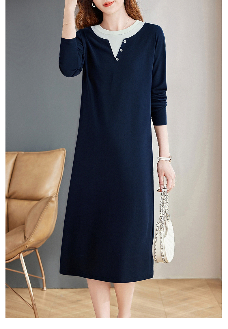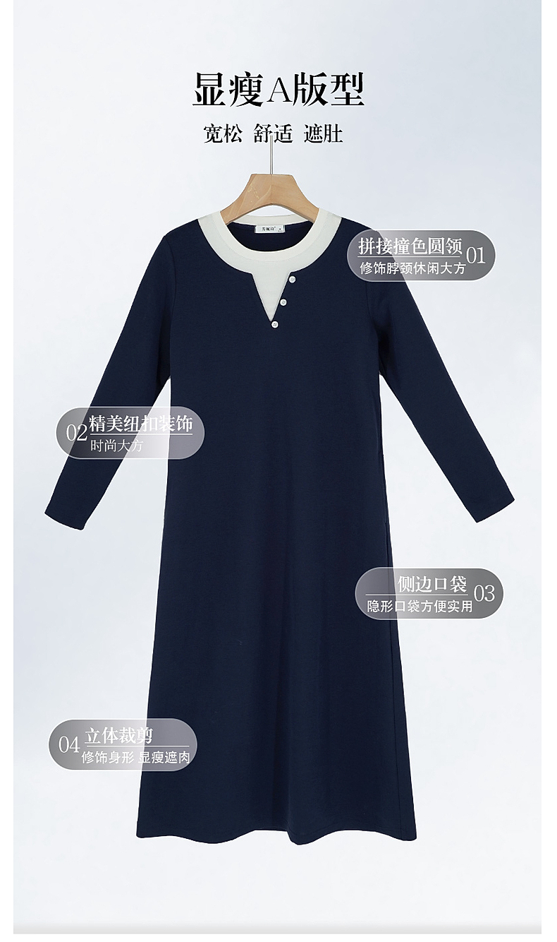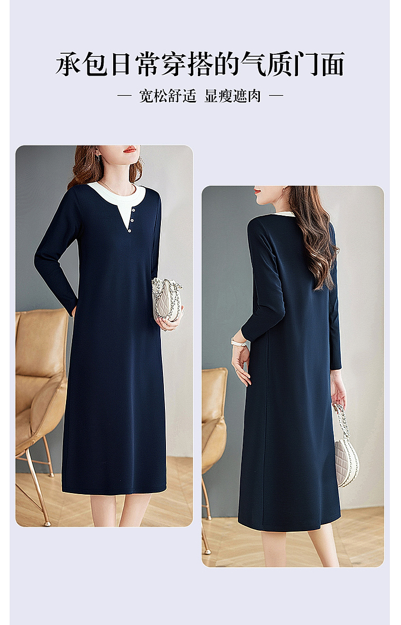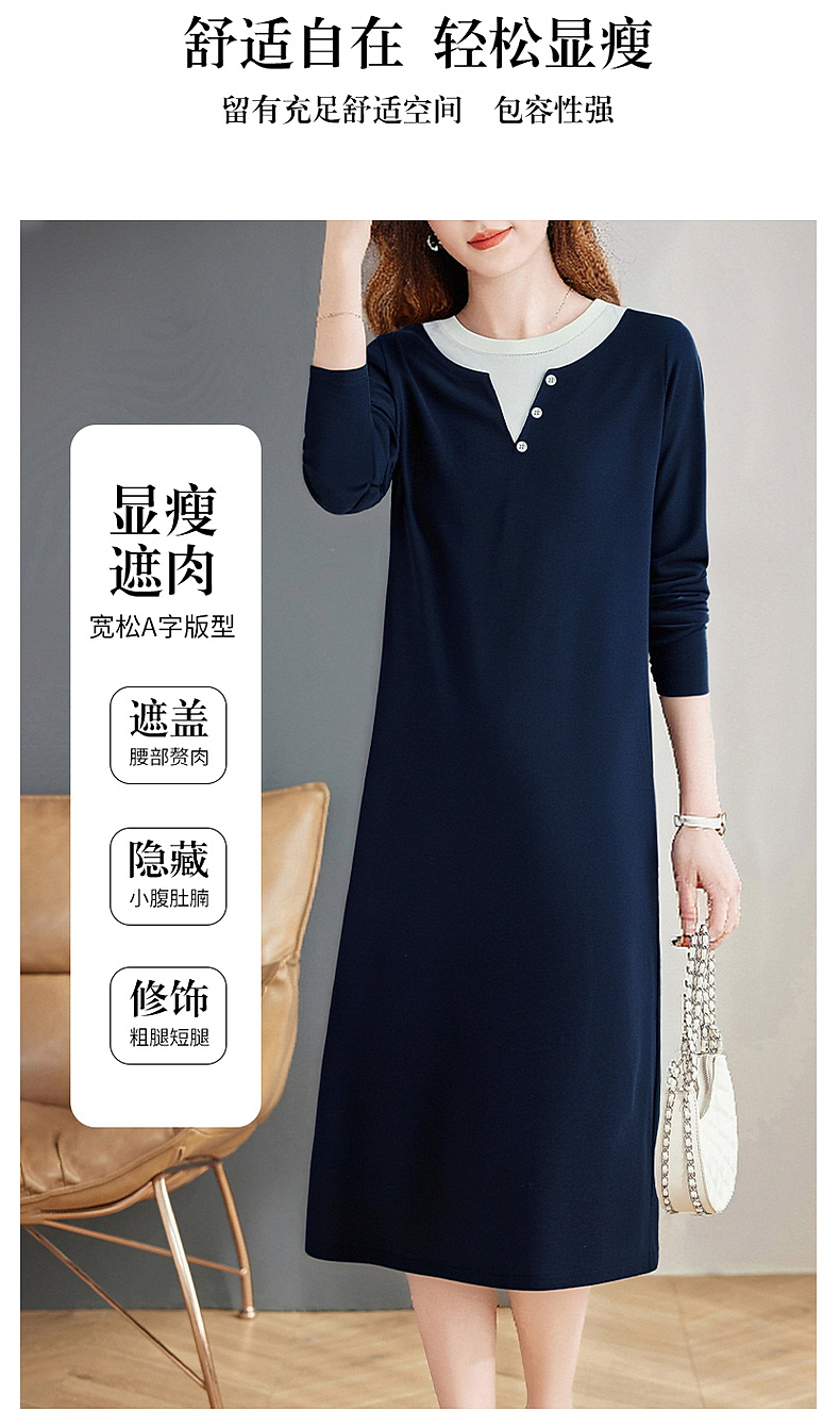 大码品牌女装长袖高端连衣裙女春秋季新款宽松高级感直筒T恤裙子