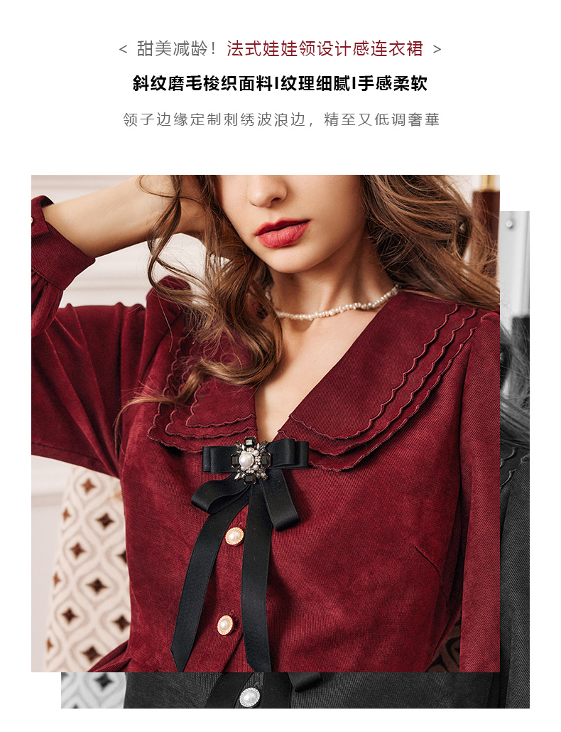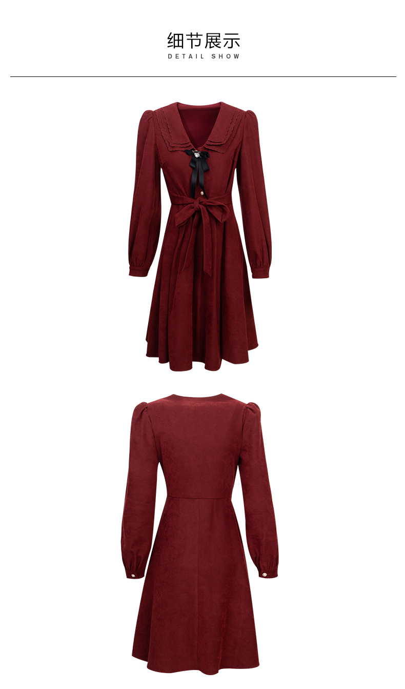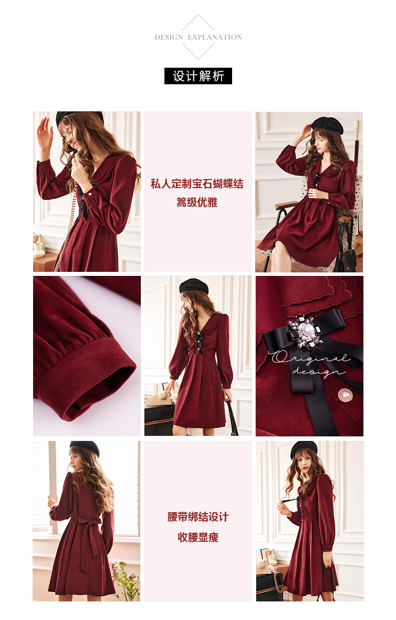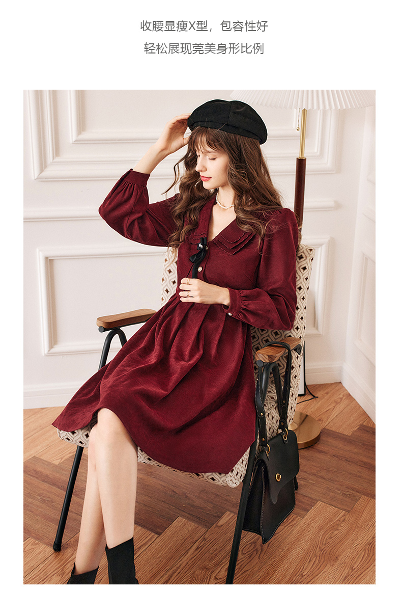 OLrain法式红色连衣裙女早秋2022新款气质显瘦甜美娃娃领设计感裙