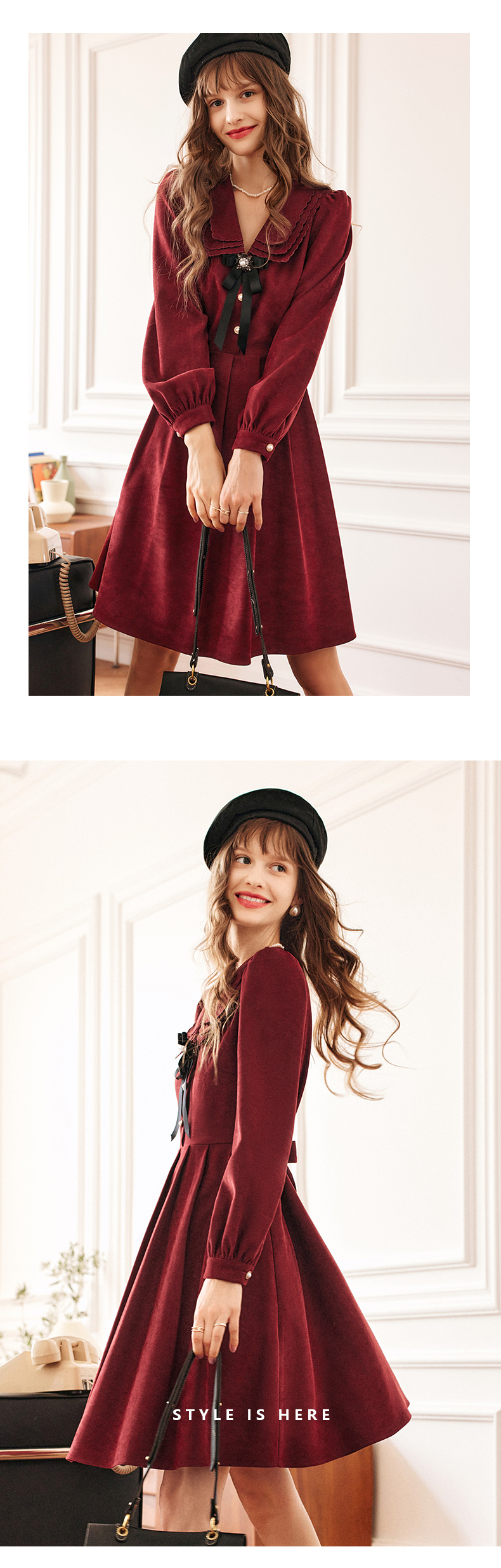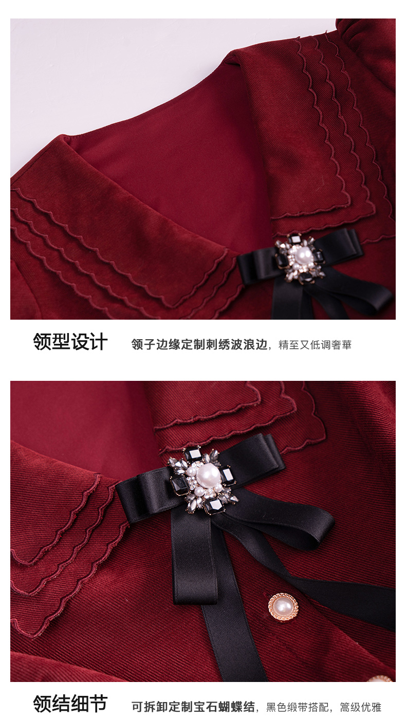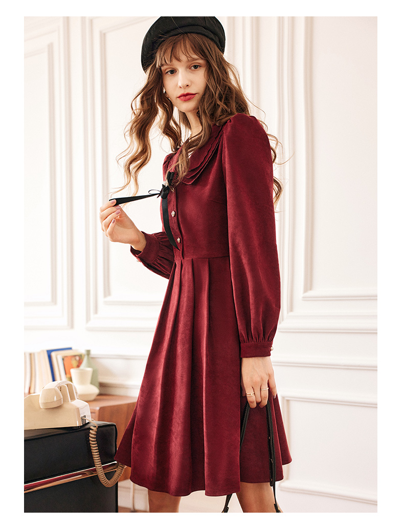 OLrain法式红色连衣裙女早秋2022新款气质显瘦甜美娃娃领设计感裙