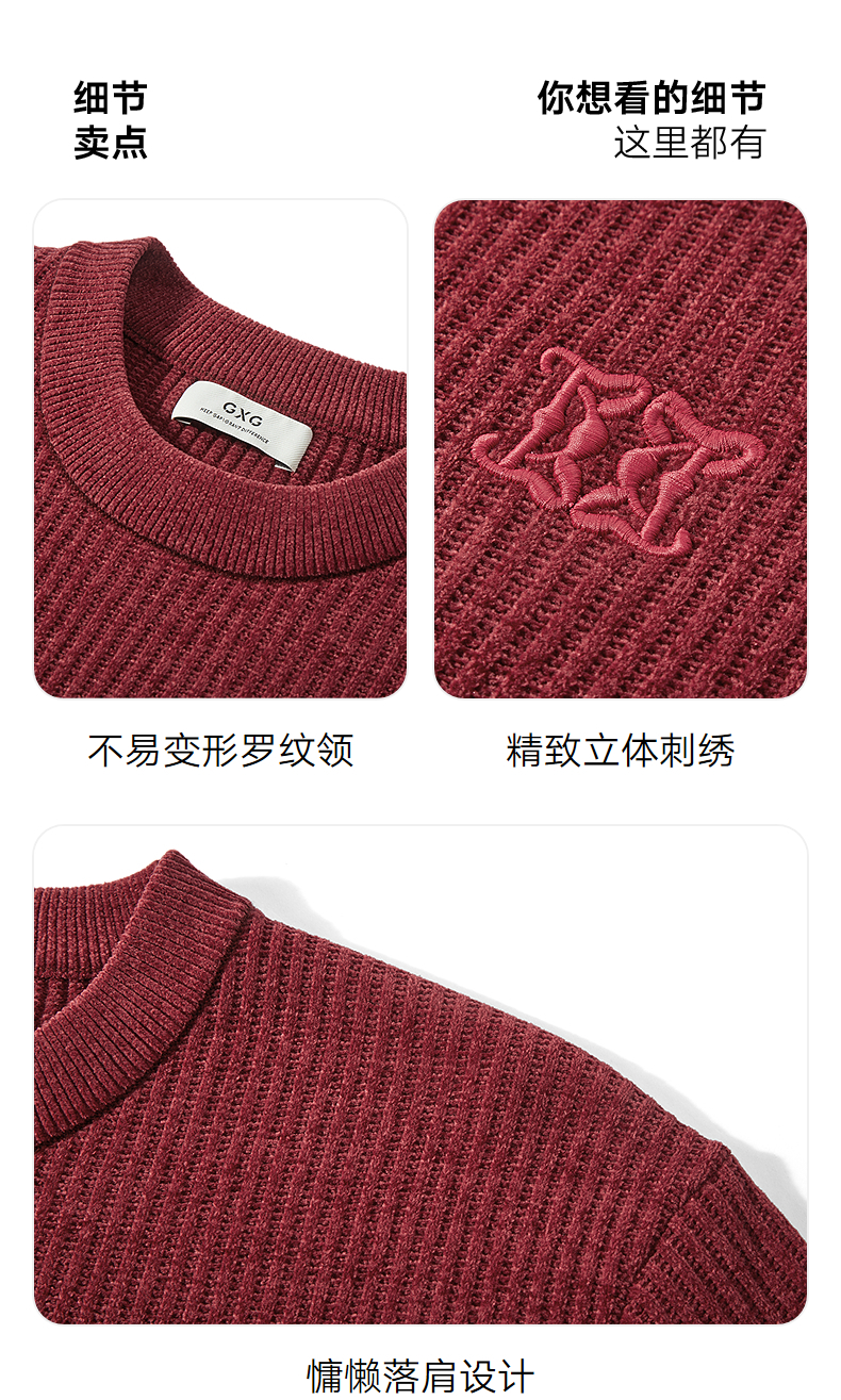 GXG男装 雪尼尔新年毛衣小标设计针织衫简约毛衫 2025年冬季热卖